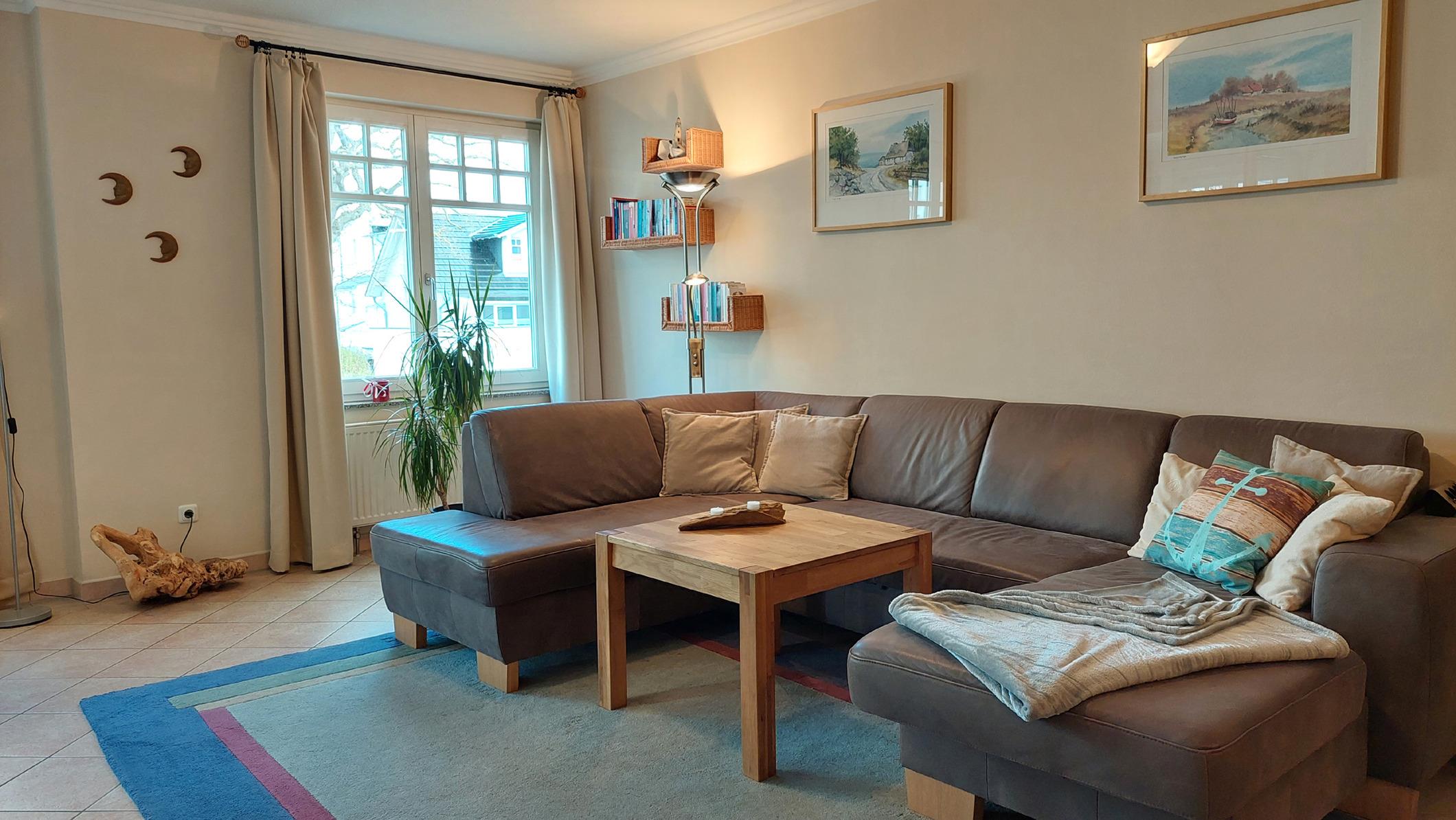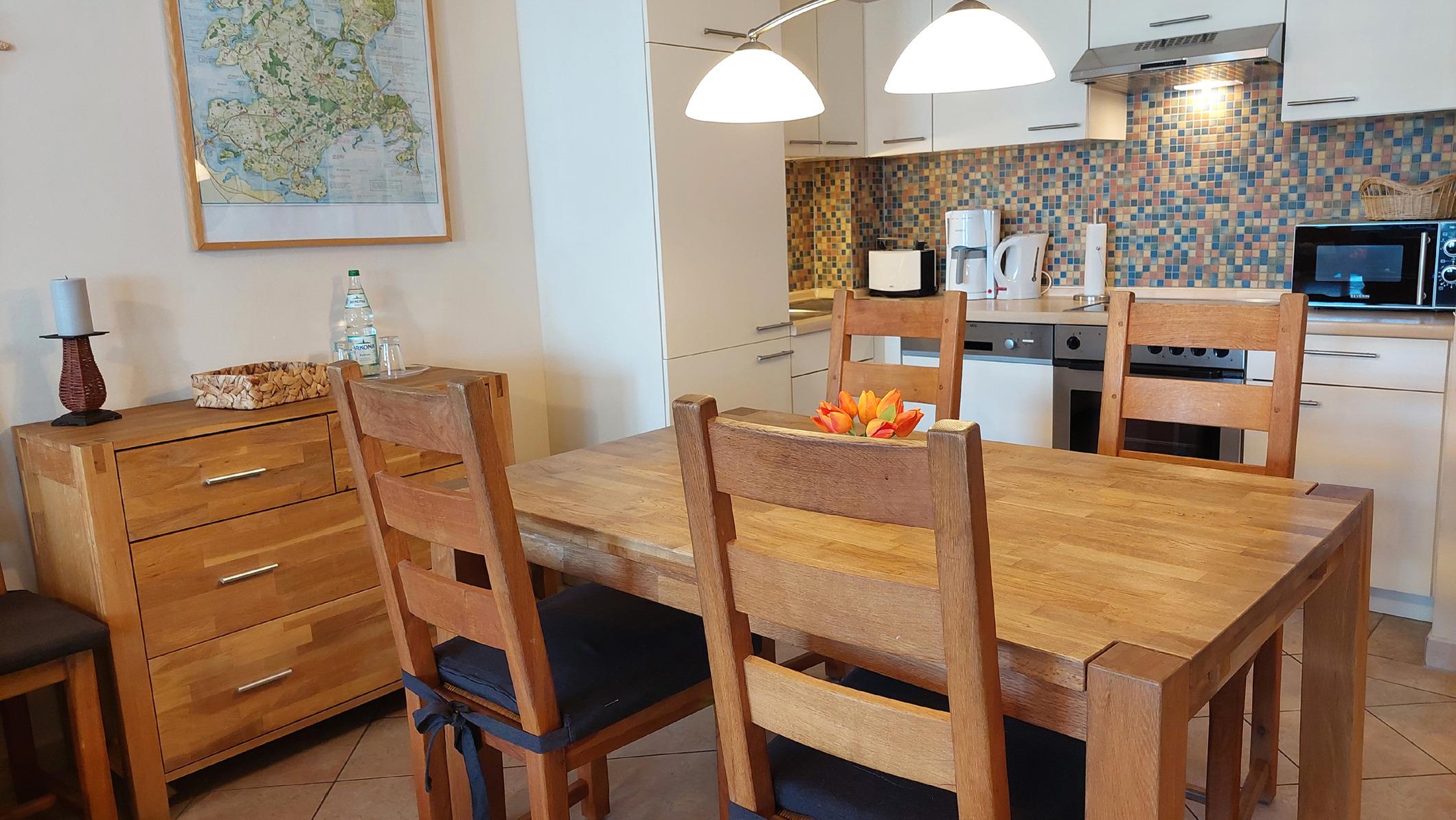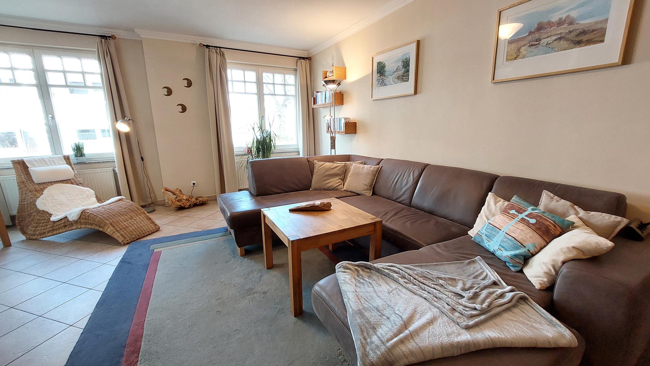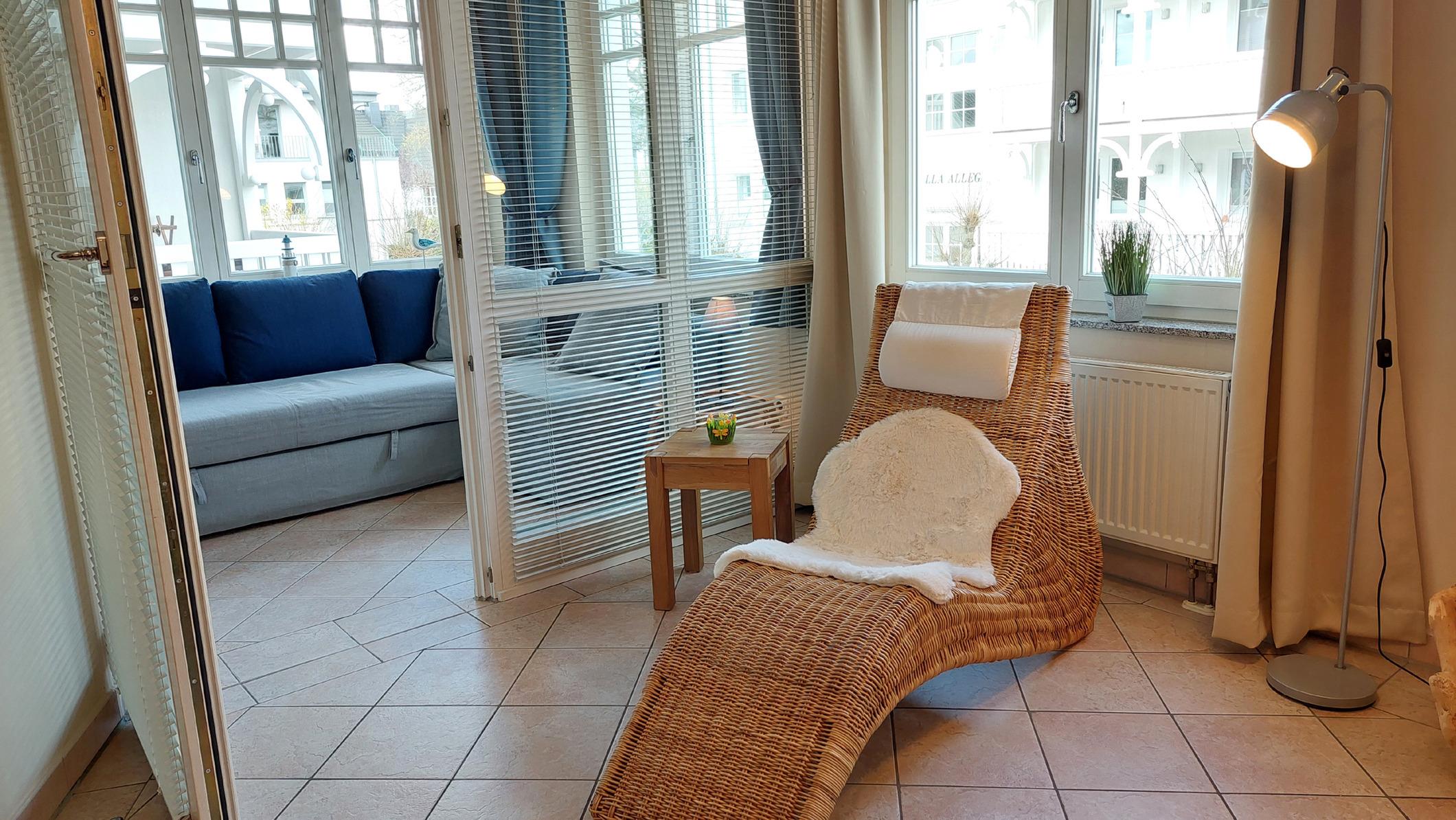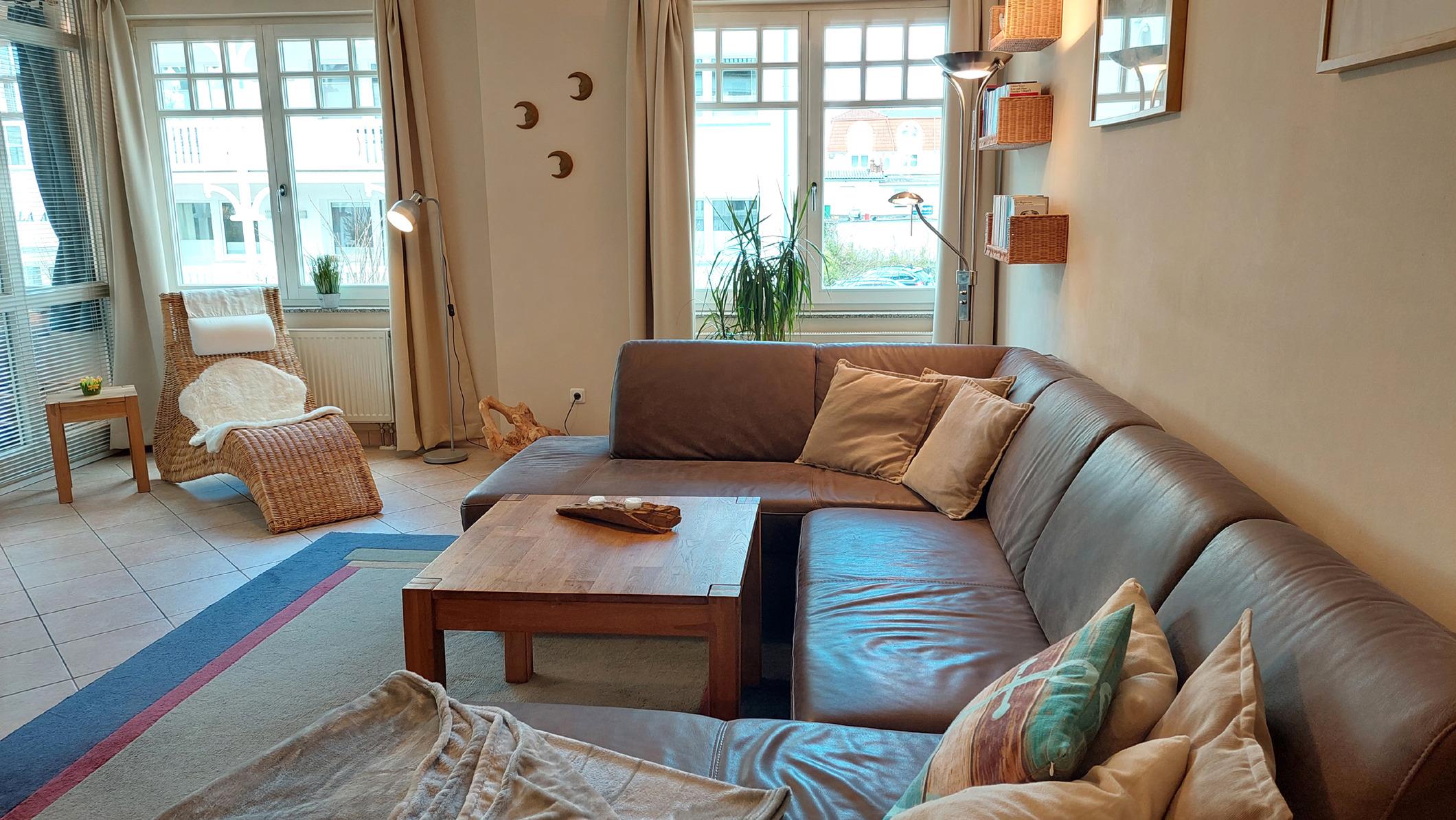 Ihre gemütlich eingerichtete Ferienwohnung 21RB1 befindet sich im 1. Obergeschoss. Die 2-Raum Wohnung mit Wintergarten hat eine Größe von ca. 54 qm und ist mit bis zu 6 Personen belegbar. Neben dem Wohnraum mit integrierter Küche gibt es einen Schlafraum, ein Badezimmer mit Waschtisch, großer Dusche und WC sowie einen Wintergarten. Im Wohnbereich können auf dem Schlafsofa 2 Personen schlafen, im Wintergarten auf dem zweiten Schlafsofa ebenfalls 2 Personen. Sie finden im Wohnraum einen Sitz- und Essplatz, ein Fernsehgerät und eine Stereoanlage. Die Küche mit Geschirrspülmaschine, Backofen, Herd, Kühlschrank, Mikrowelle und diversen Kleingeräten komplettiert die Ausstattung. Eine wohnungseigene Waschmaschine (im Waschraum) steht gebührenfrei zu Ihrer Verfügung. Fahrräder können im Kellerbereich abgestellt werden. Ein Garagenstellplatz ( Duplexparker - 1.50 m hoch ) gehört zur Wohnung. Alle unsere Gäste haben einen kostenfreien W-Lan Zugang in dieser Wohnung.