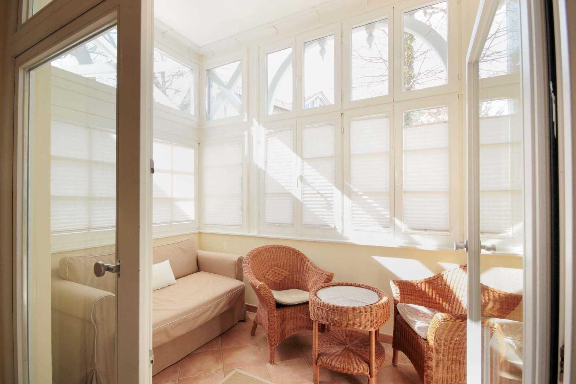 Ihre gemütlich eingerichtete Nichtraucher-Ferienwohnung 3RB1 befindet sich im Erdgeschoss. Die 2-Raumwohnung mit Wintergarten hat eine Größe von ca. 60 qm und ist mit bis zu 4 Personen belegbar. Das Appartement ist aufgeteilt in einen schönen Wohnraum mit Loggia, integrierte Küche mit Essplatz, ein Schlafzimmer mit Doppelbett und Kleiderschrank, einen extra Wintergarten und ein Badezimmer mit Waschtisch, Dusche, fest installiertem Fön und WC. Im separaten Wintergarten (vom Schlafzimmer begehbar) finden Sie ein weiteres Sofa zum Verweilen. Im Wohnzimmer befindet sich ein Schlafsofa sowie ein Full HD - TV und Radio. Die helle Loggia ist mit gemütlichen Korbstühlen ausgestattet und lädt zum Verweilen ein. Die Küche ist mit Backofen, Cerankochfeld, Kühlschrank, Mikrowelle und diversen Kleingeräten komplett ausgestattet. Für den erholsamen Schlaf dienen zwei zusätzliche Keilkissen im Schlafzimmer.