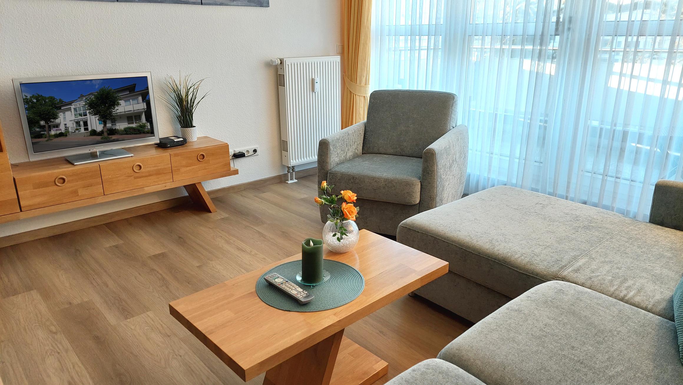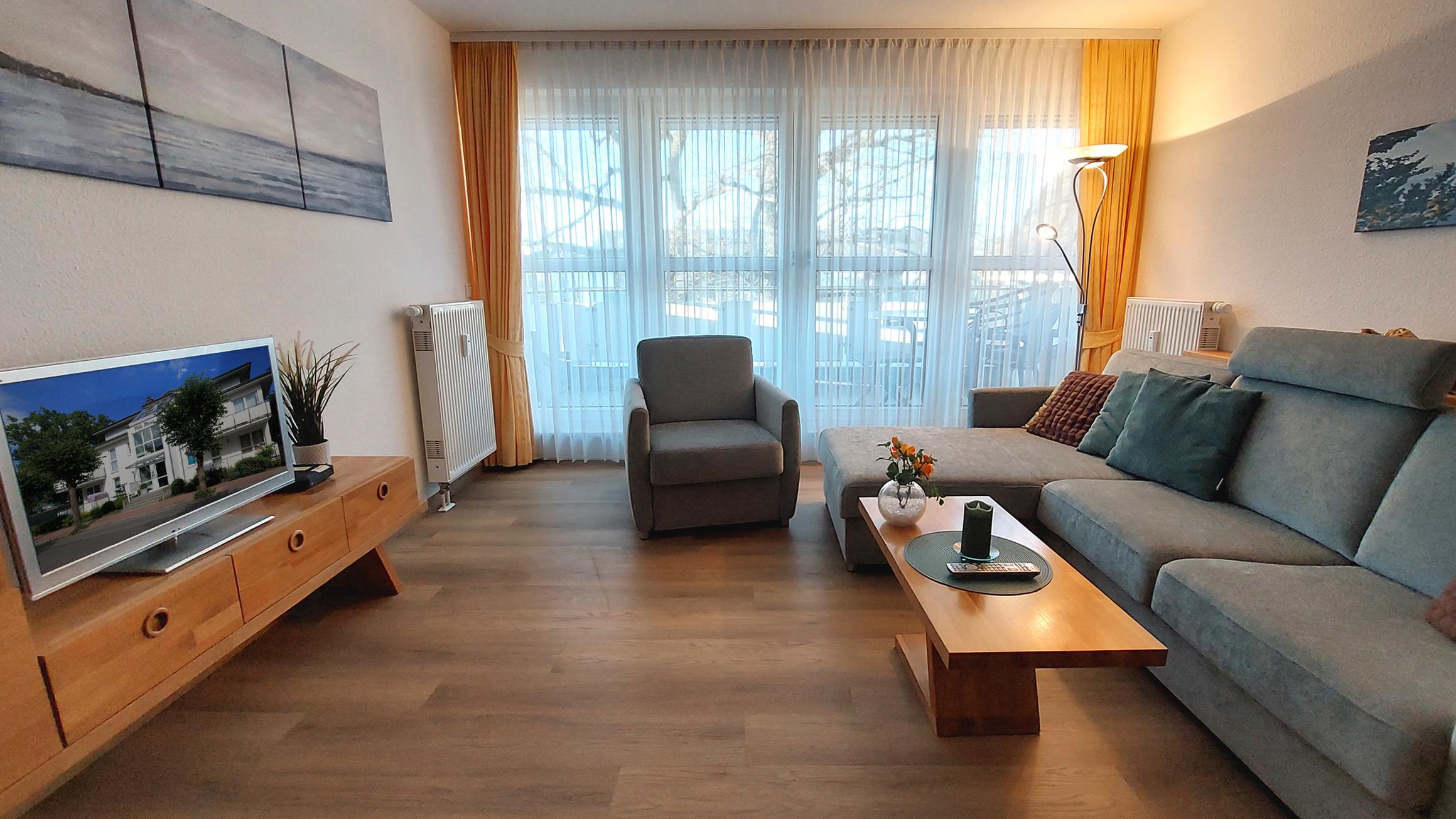 Highlight ist der möblierte Balkon Richtung Nord-Westen, von dem Sie sogar einen seitlichen Blick auf die Ostsee erhaschen können.