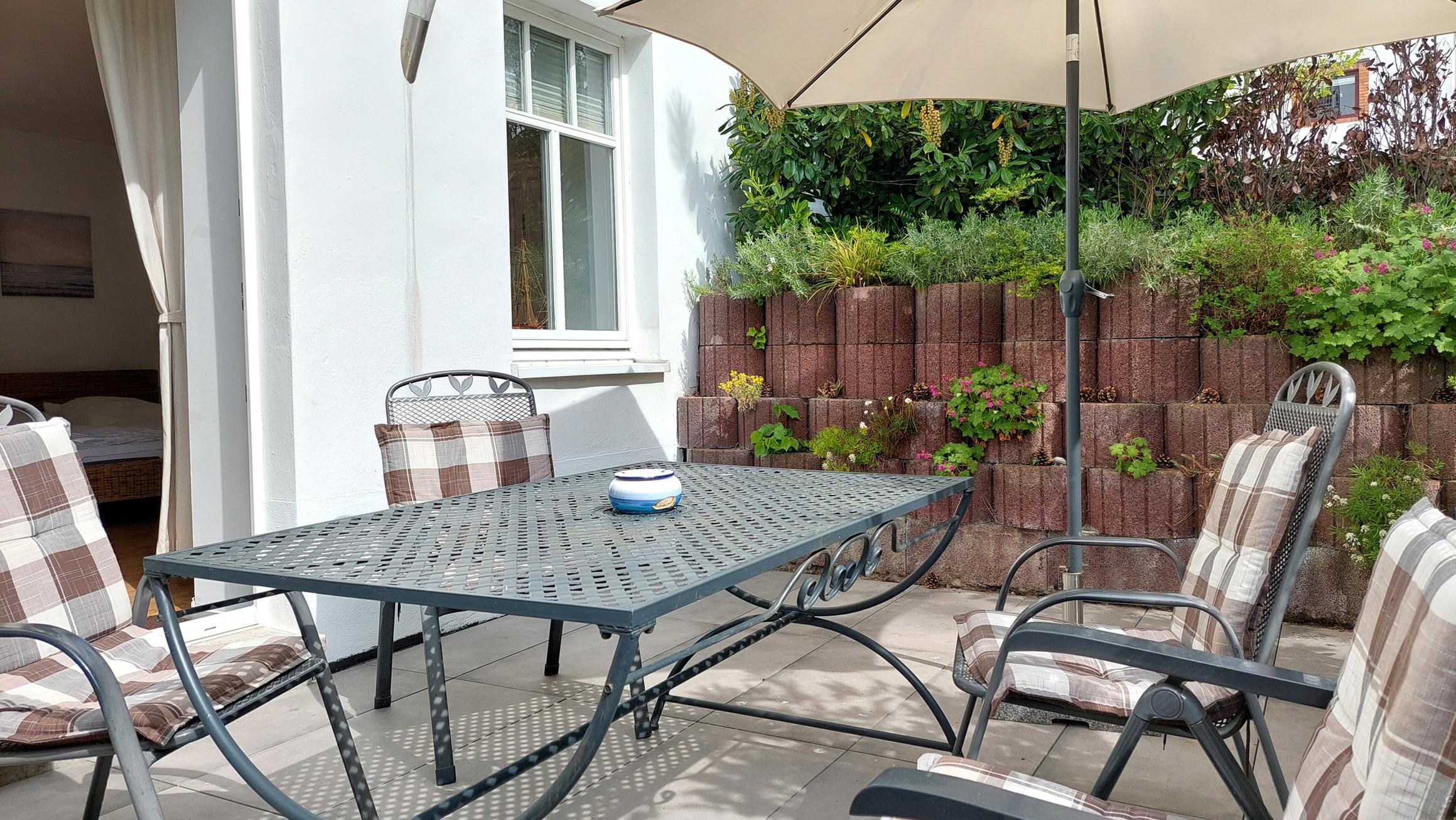 Das Apartment, mit wunderschöner Sonnenterrasse, ist hofseitig sehr ruhig und ebenerdig gelegen. Auf den insgesamt 64 m² finden bis zu 4 Personen bequem Platz. Durch einen separaten Eingang haben Sie einen Haus-im-Haus-Effekt und sind im Urlaub vollkommen ungestört. Die gesamte Wohnung ist zudem mit Fliesen- und Holzboden ausgestattet, weshalb sie allergikergeeignet ist.