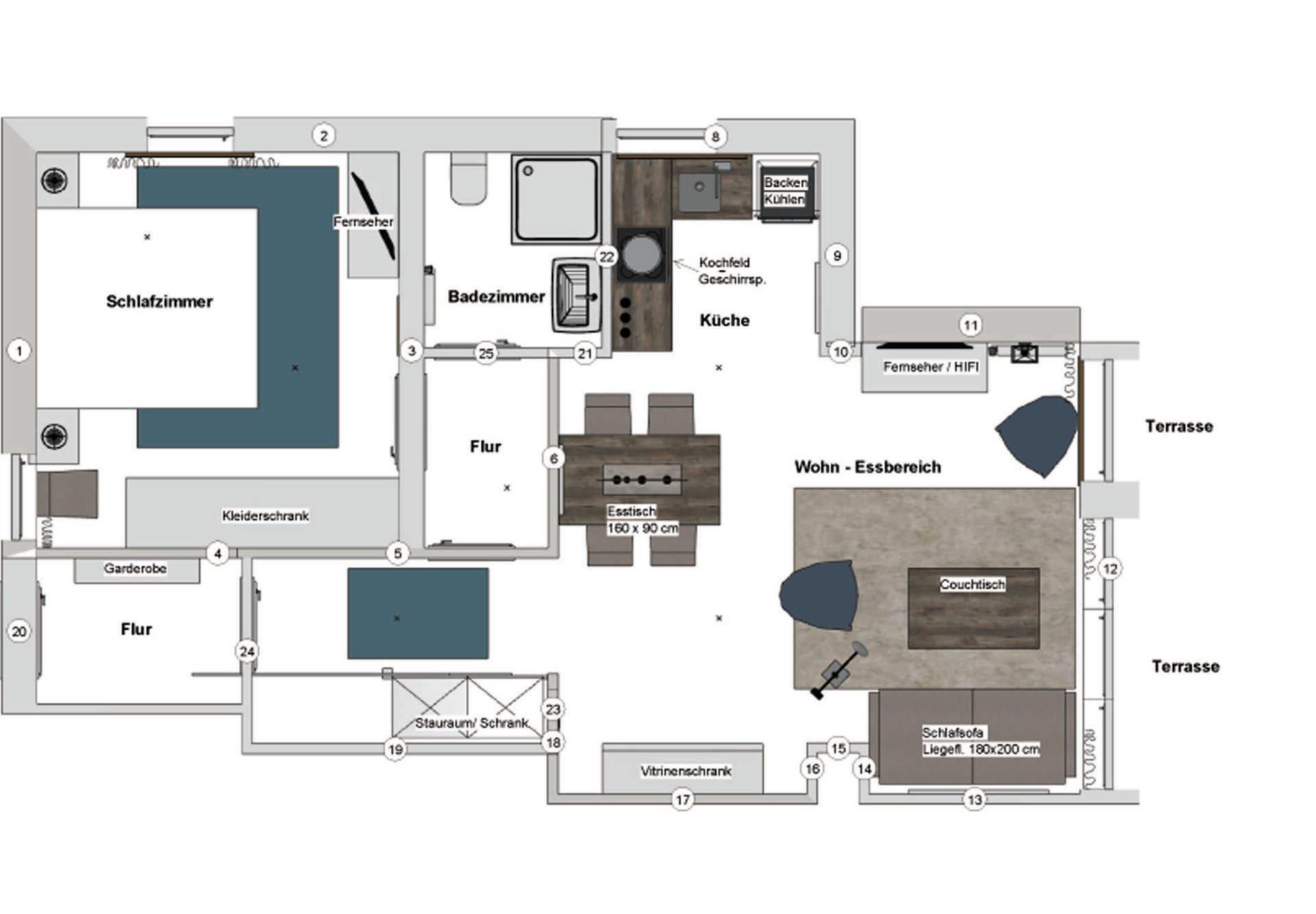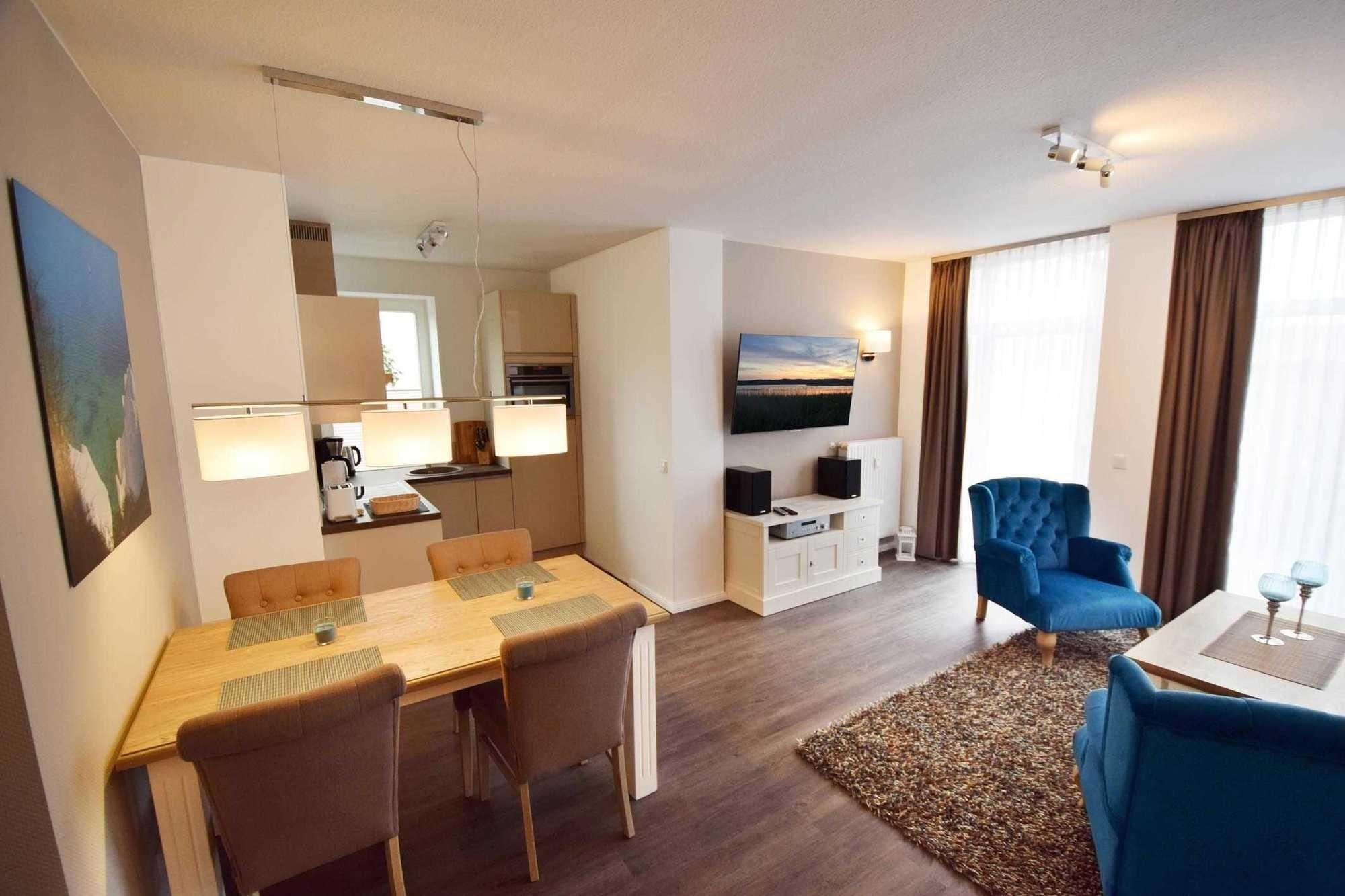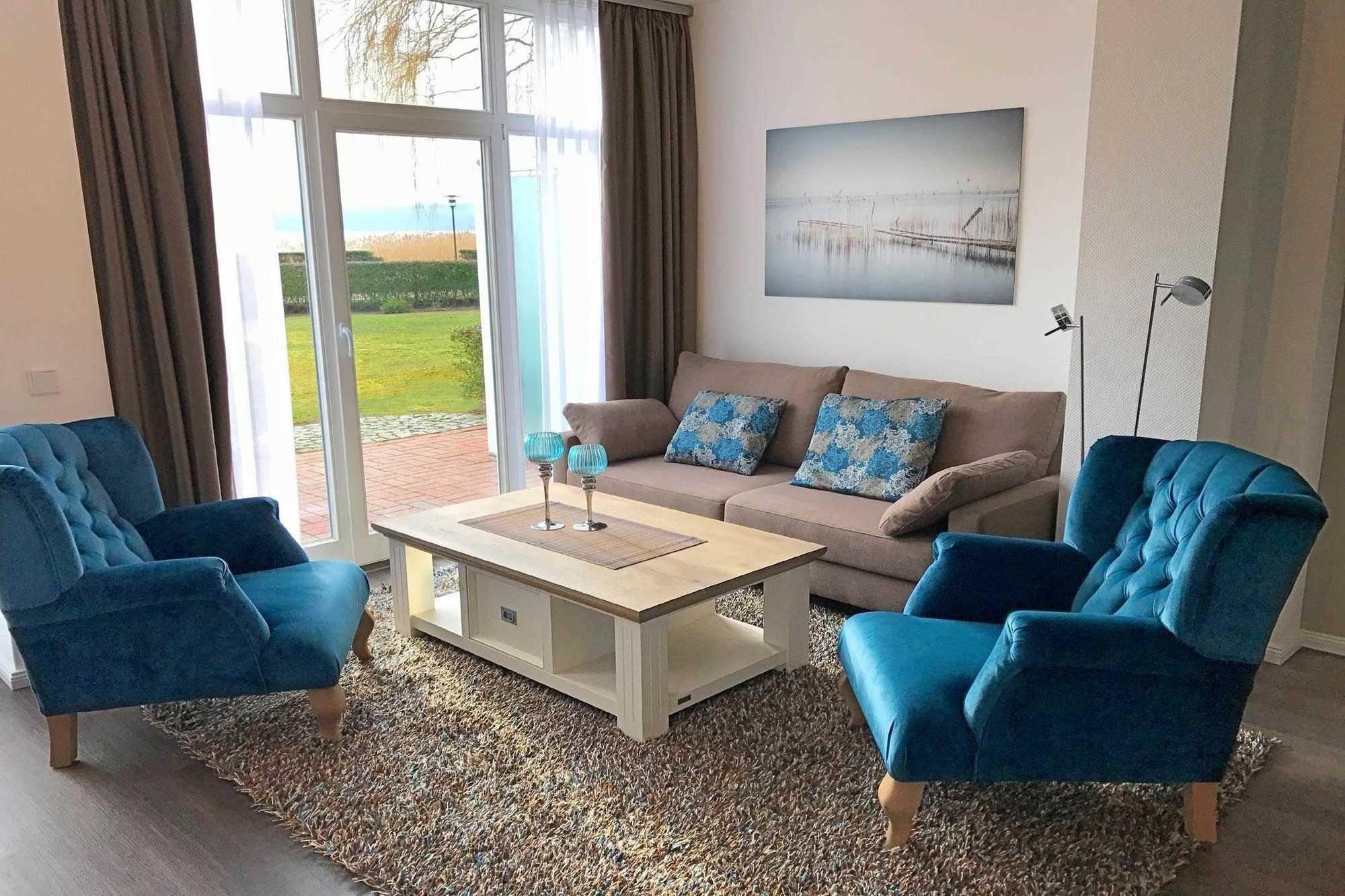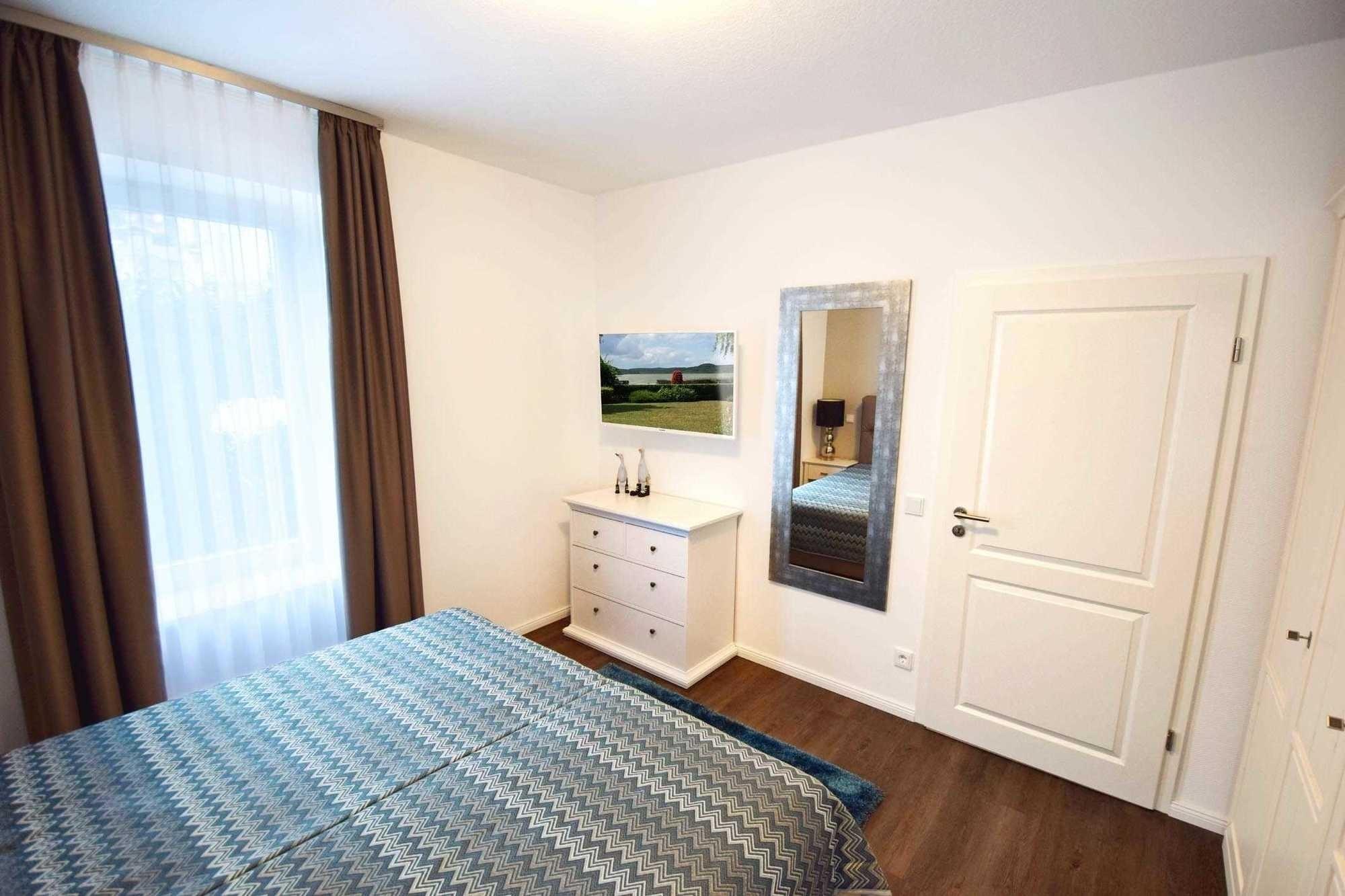 Ihre hochmoderne 2-Raum - Ferienwohnung 37RB1 (Nichtraucher) hat eine Größe von ca. 60 qm und ist für max. 4 Personen eingerichtet. Sie befindet sich im Erdgeschoss der Villa Seerosen. Die dazugehörige Südterrasse (mit großer Markise) mit einem wunderschönen Blick bis hin zum Schmachter See lädt zum Sonnenbaden und Verweilen ein. Die allergikerfreundliche Ferienwohnung im Vintage Design ist aufgeteilt in einen gemütlichen Wohnraum mit offener Küche, einem Schlafzimmer und ein Duschbad mit Waschtisch, WC und Kosmetikspiegel. Das Wohnzimmer ist mit dem gemütlichem Essplatz und einer Sitzgruppe, die auch eine Schlafgelegenheit für die 3. und 4. Person bietet, möbliert. Die technische Ausstattung beinhaltet einen Flachbildfernseher und eine Hifi-Musikanlage sowie einen kostenlosen WLAN-Zugang. Die Küche ist mit Kühl-/Gefrierkombination, Geschirrspüler, Backofen, Cerankochfeld, Kaffeemaschine, Mikrowelle, weiteren Elektrogeräten und diversen Küchenhelfern perfekt ausgestattet. Das Schlafzimmer verfügt über ein komfortables Boxspringbett, einen Flachbildfernseher und einen großzügigen Kleiderschrank, der Ihnen genügend Stauraum während Ihres Aufenthaltes bietet. Darüber hinaus verfügt die Wohnung über Verdunklungsplissees und Fliegengittern vor jeden Fenster.