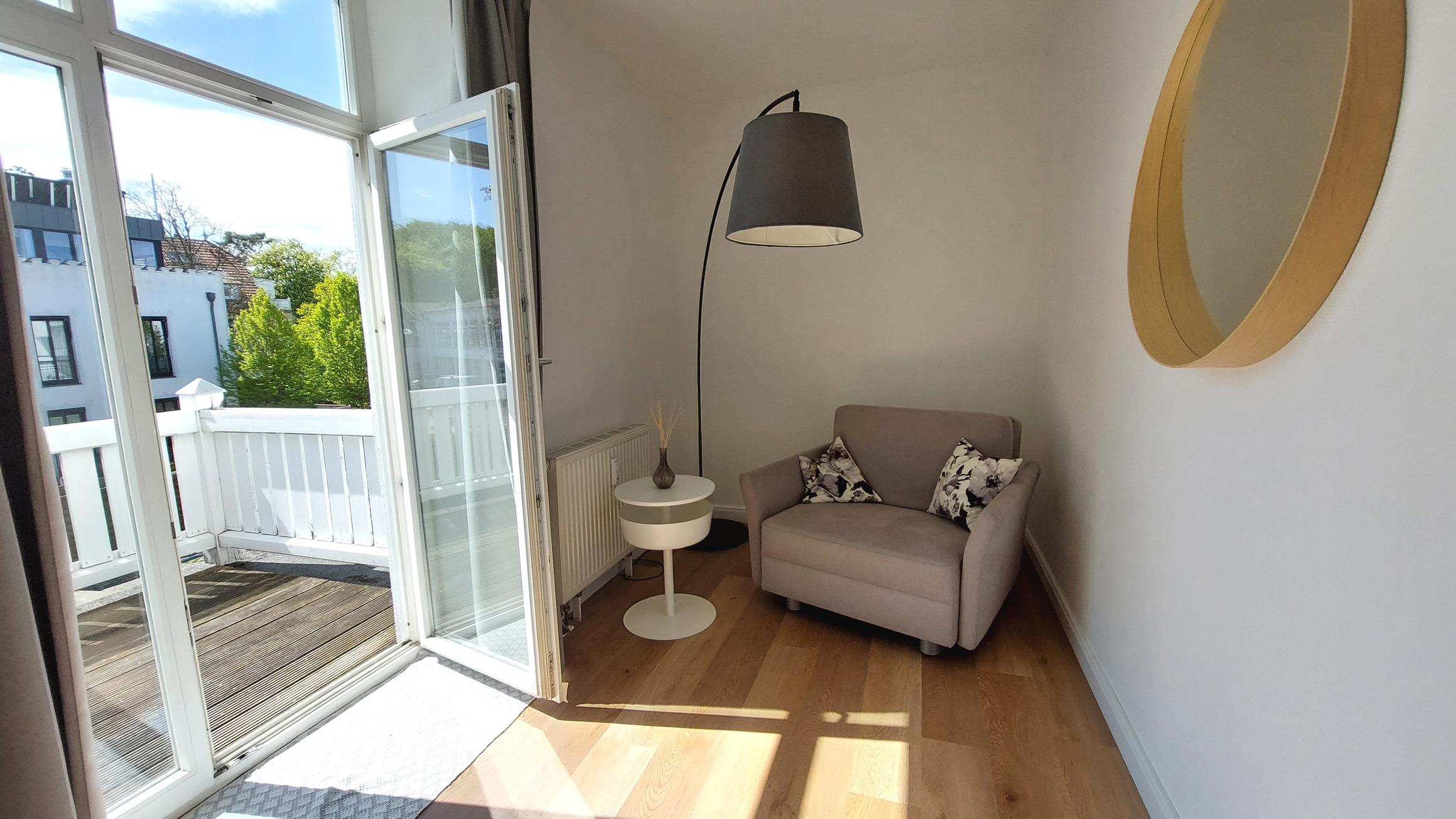 Die Wohnung ist mit einem Süd-Balkon ausgestattet, auf dem Sie die Sonne und die frische Seeluft genießen können.