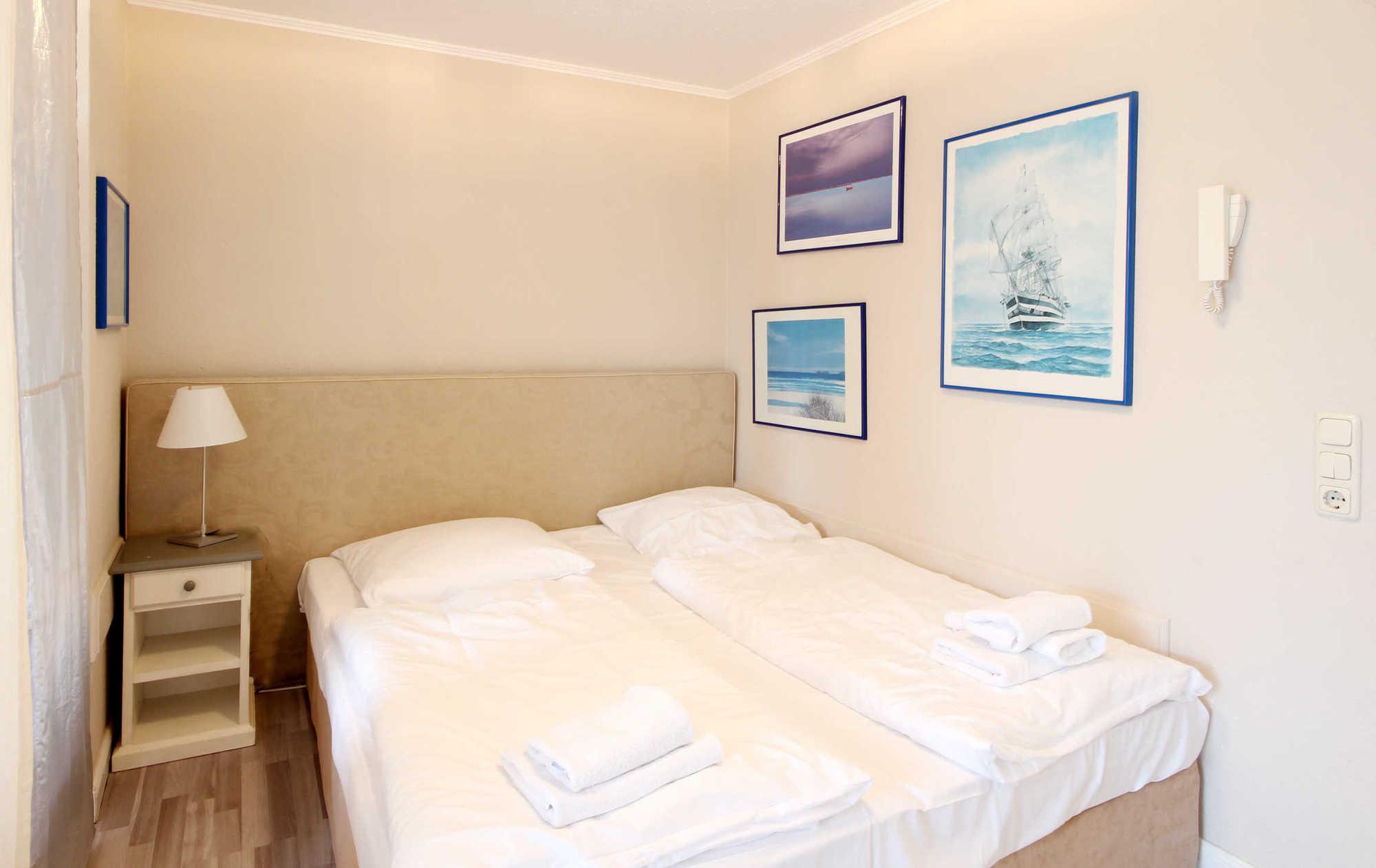 Die Meerblick-Wohnung teilt sich auf in einen Flur mit Garderobe und Wandspiegel, ein Wohn- und Schlafbereich, ein Tageslichtbad mit Waschtisch, Dusche und WC sowie eine Wohnküche. Die Küche ist mit Kühlschrank, Geschirrspüler, Mikrowelle, Cerankochfeld mit Dunstabzugshaube, diversen Kleingeräten, wie Kaffeemaschine und Wasserkocher sowie diversen anderen Küchenhelfern komplett ausgestattet. Zur technischen Ausstattung gehört natürlich unter anderem ein Flachbildfernseher, ein kostenfreier Internetzugang sowie eine Musikanlage mit CD-Player. Im Wohnbereich finden Sie eine gemütliche Sitzecke sowie einen separaten Essplatz. Der Schlafbereich verfügt über einen Kleiderschrank sowie ein Doppelbett und kann durch die vorhandenen Schiebevorhänge optisch vom Wohnbereich getrennt werden. Rundum eine erstklassig eingerichtete Wohnung zum Abschalten vom Alltag und Genießen des Urlaubes. Ein wohnungseigener PKW – Stellplatz steht kostenfrei für Sie am Haus zur Verfügung. Haustiere sind in dieser Wohnung nicht erlaubt.