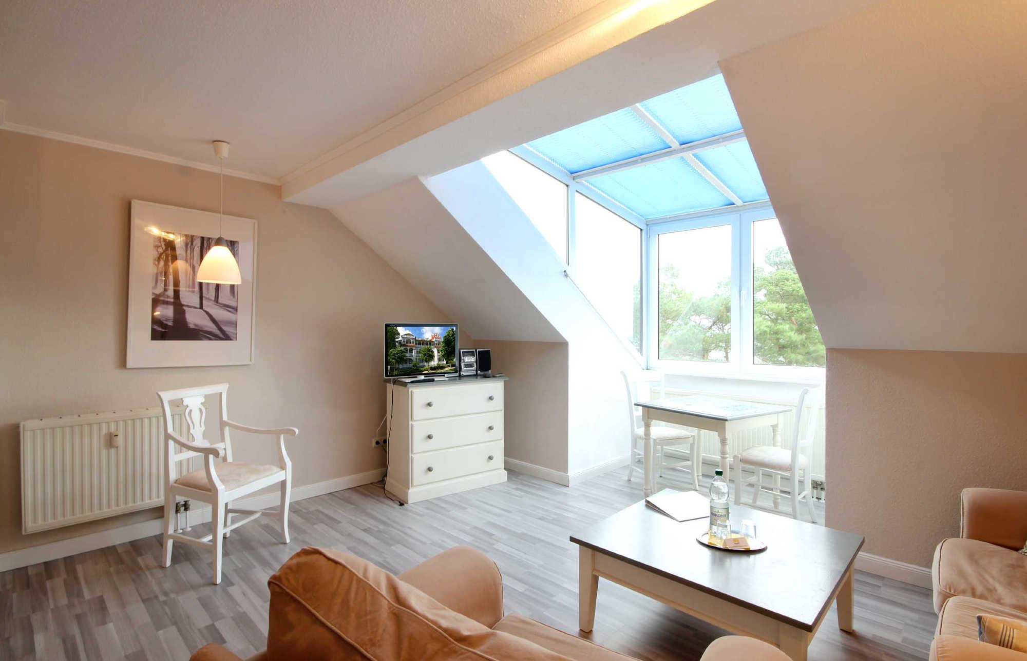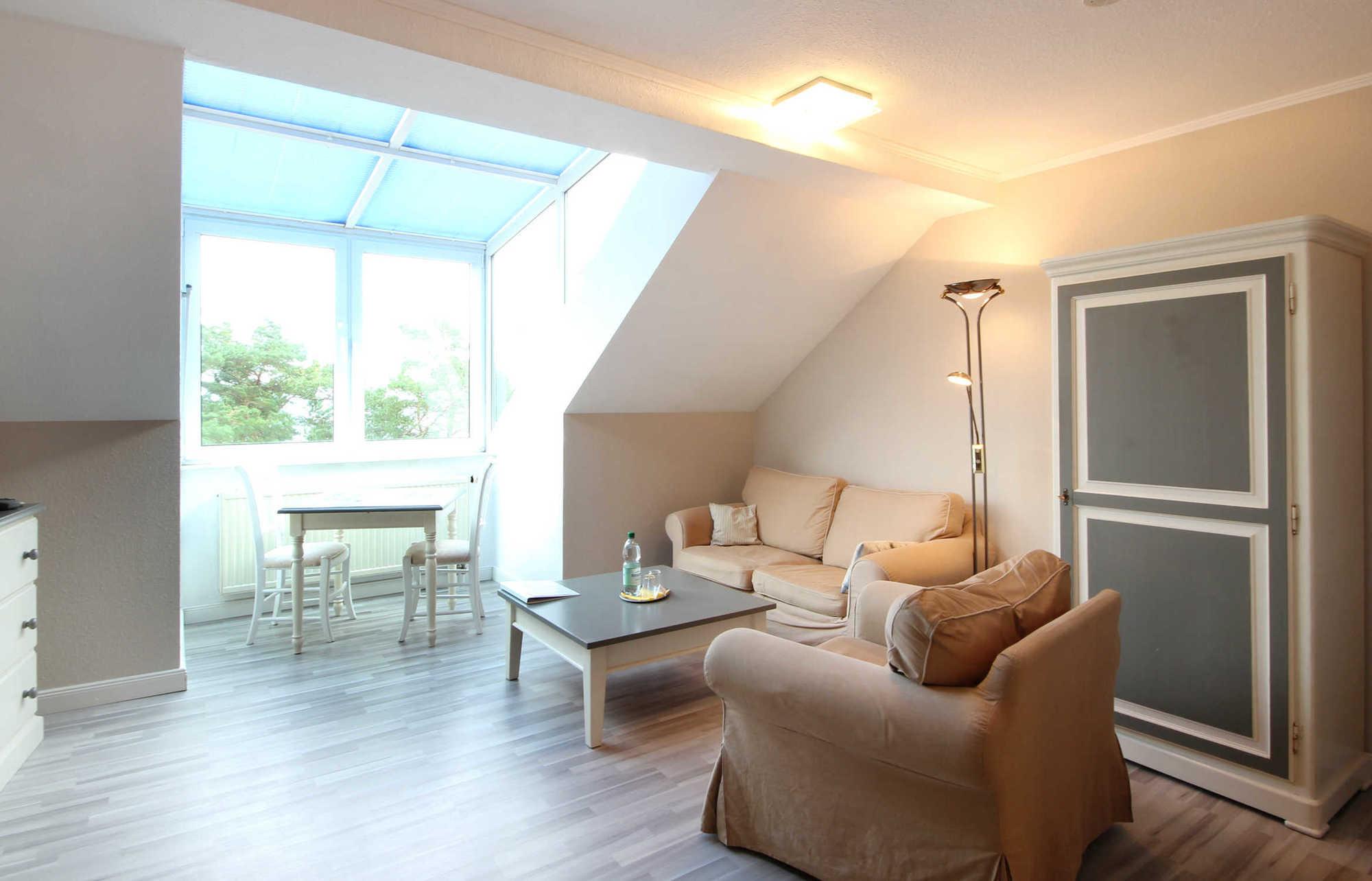 Ihre freundlich und modern eingerichtete Nichtraucher - Ferienwohnung 31RB14 befindet sich im Dachgeschoss des Hauses Strandidyll mit direktem Meerblick. Die schöne 1 - Raumwohnung hat eine Größe von ca. 38 qm und ist ideal für 2 Personen.