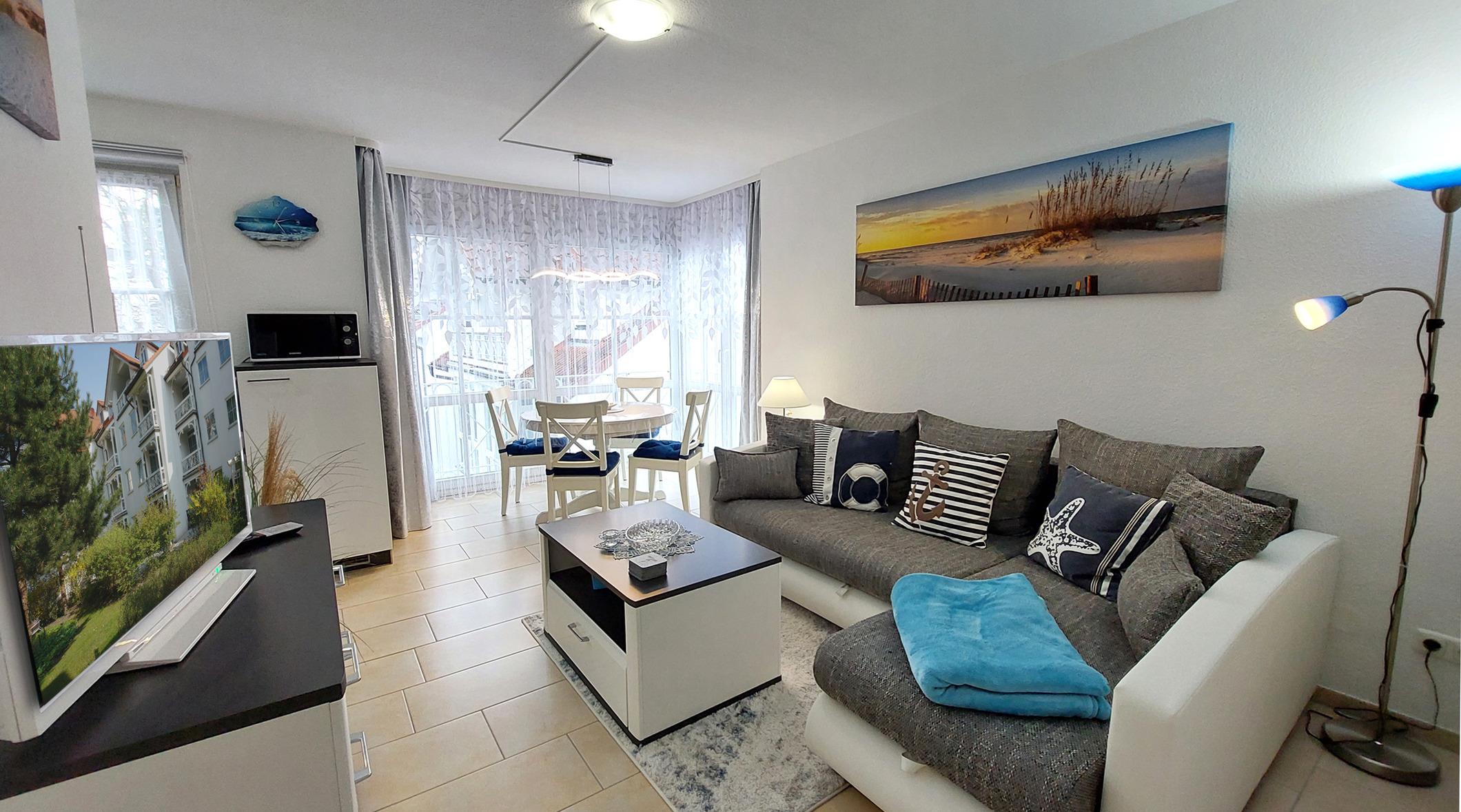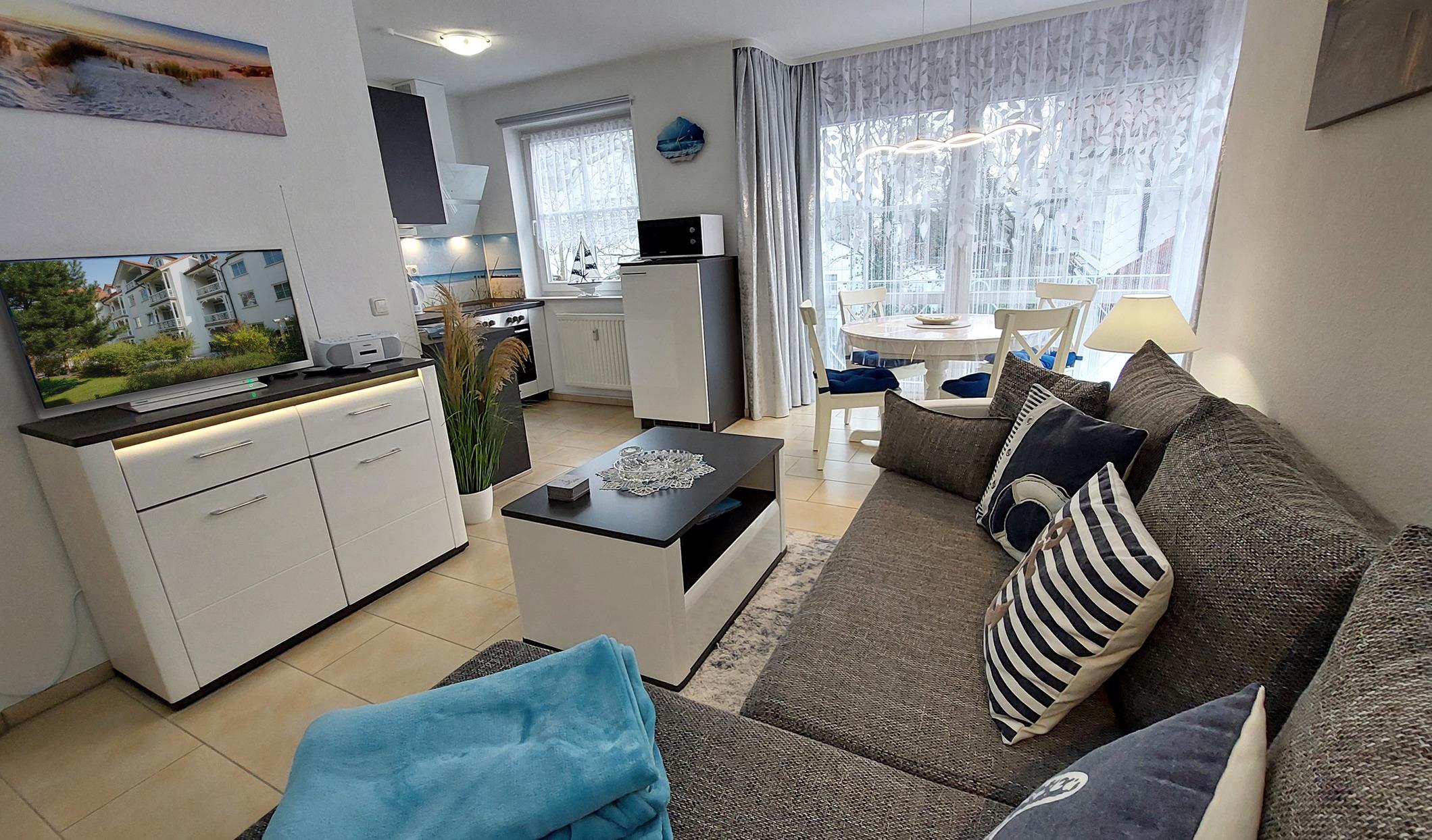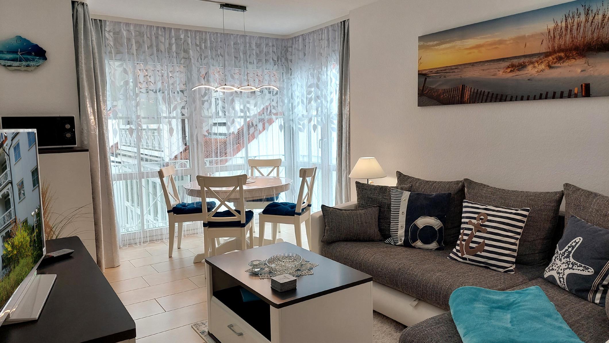 Mit der 90842 Ostseetraum erwartete Sie eine kleine, maritime 3-Raumwohnung im Zentrum von Binz. Sie hat eine Größe von ca. 52 qm und ist für bis zu 4 Erwachsenen (+ 1 Kind) im Jahr 2023 ganz neu eingerichtet worden.