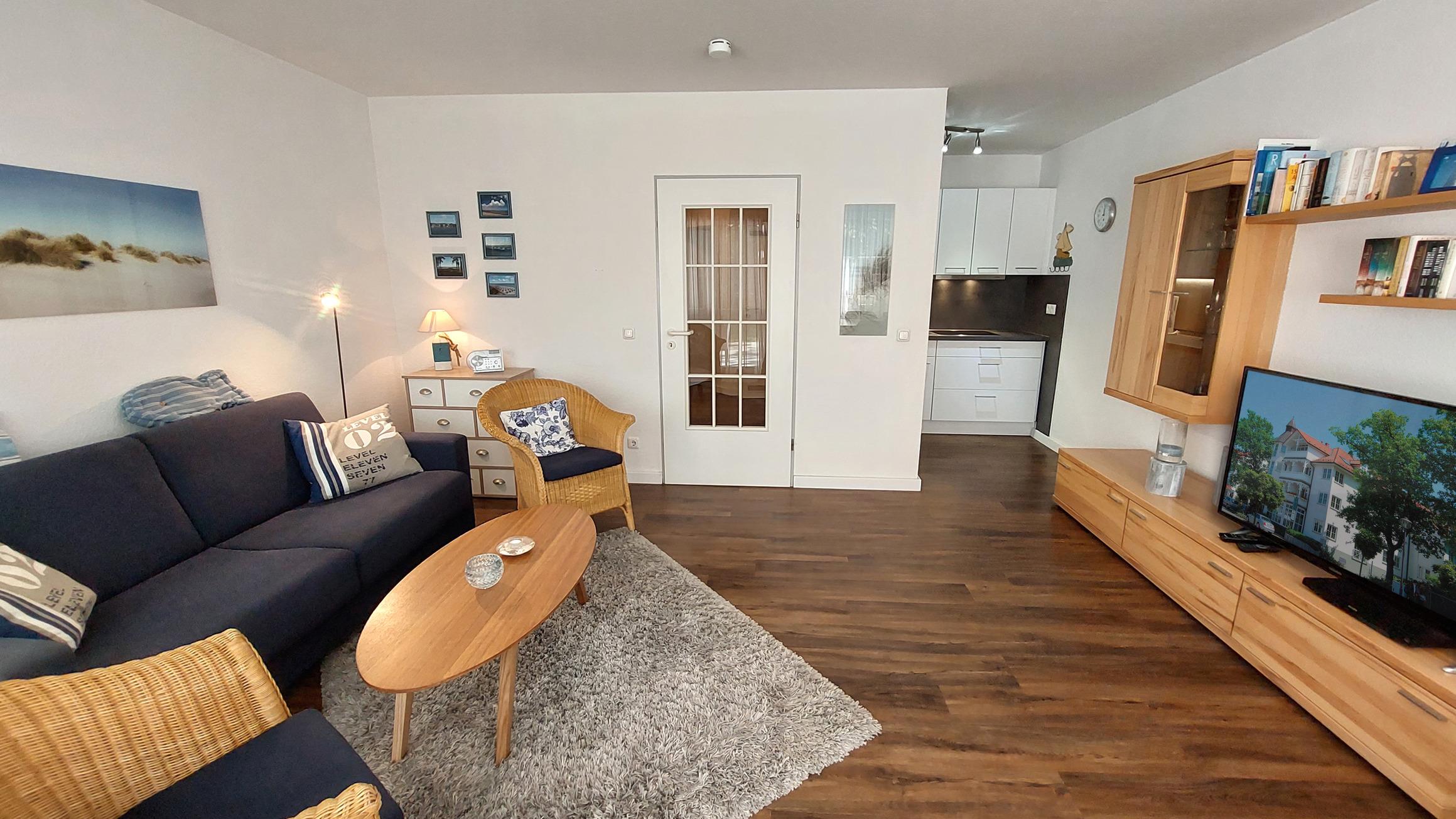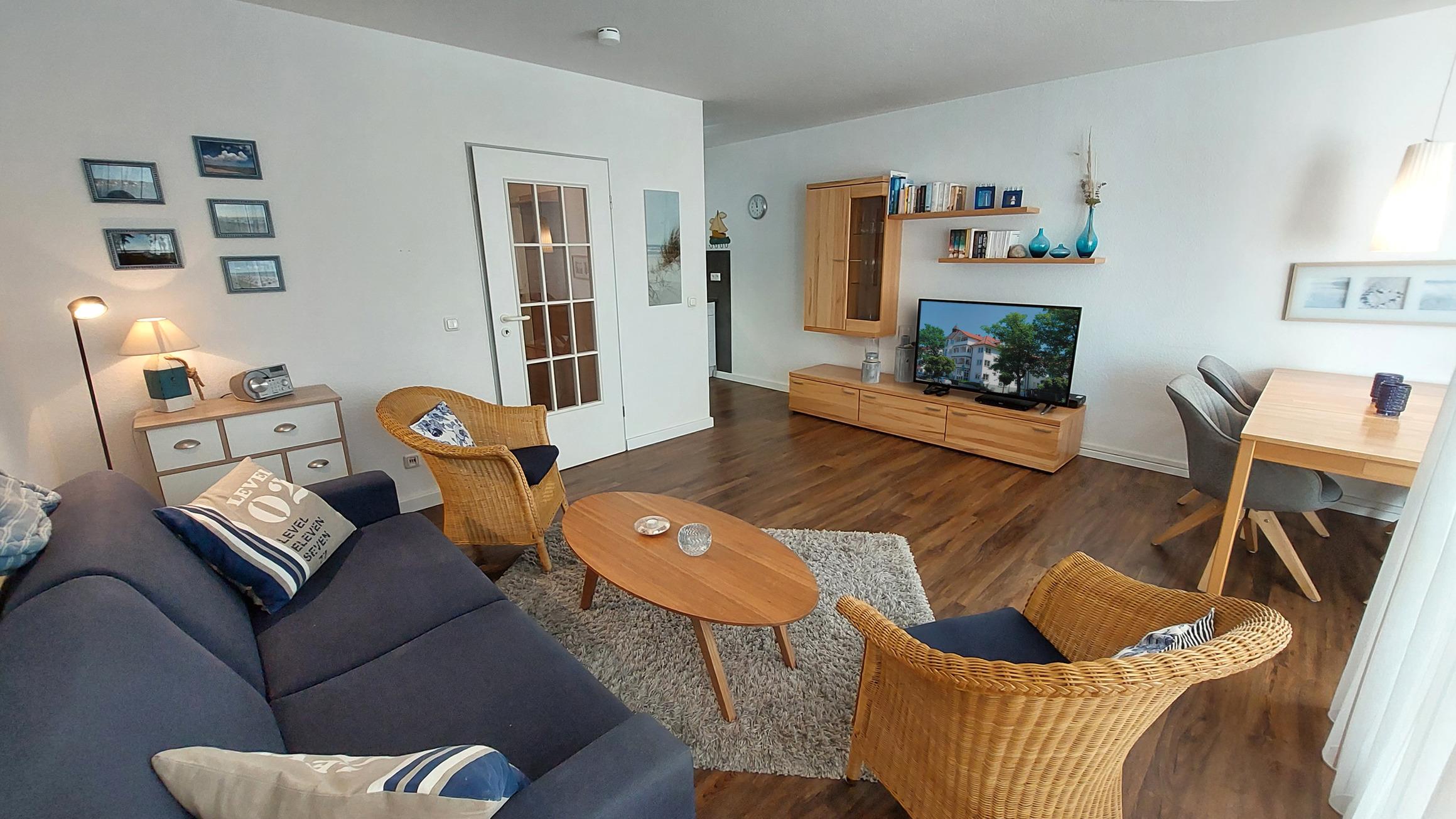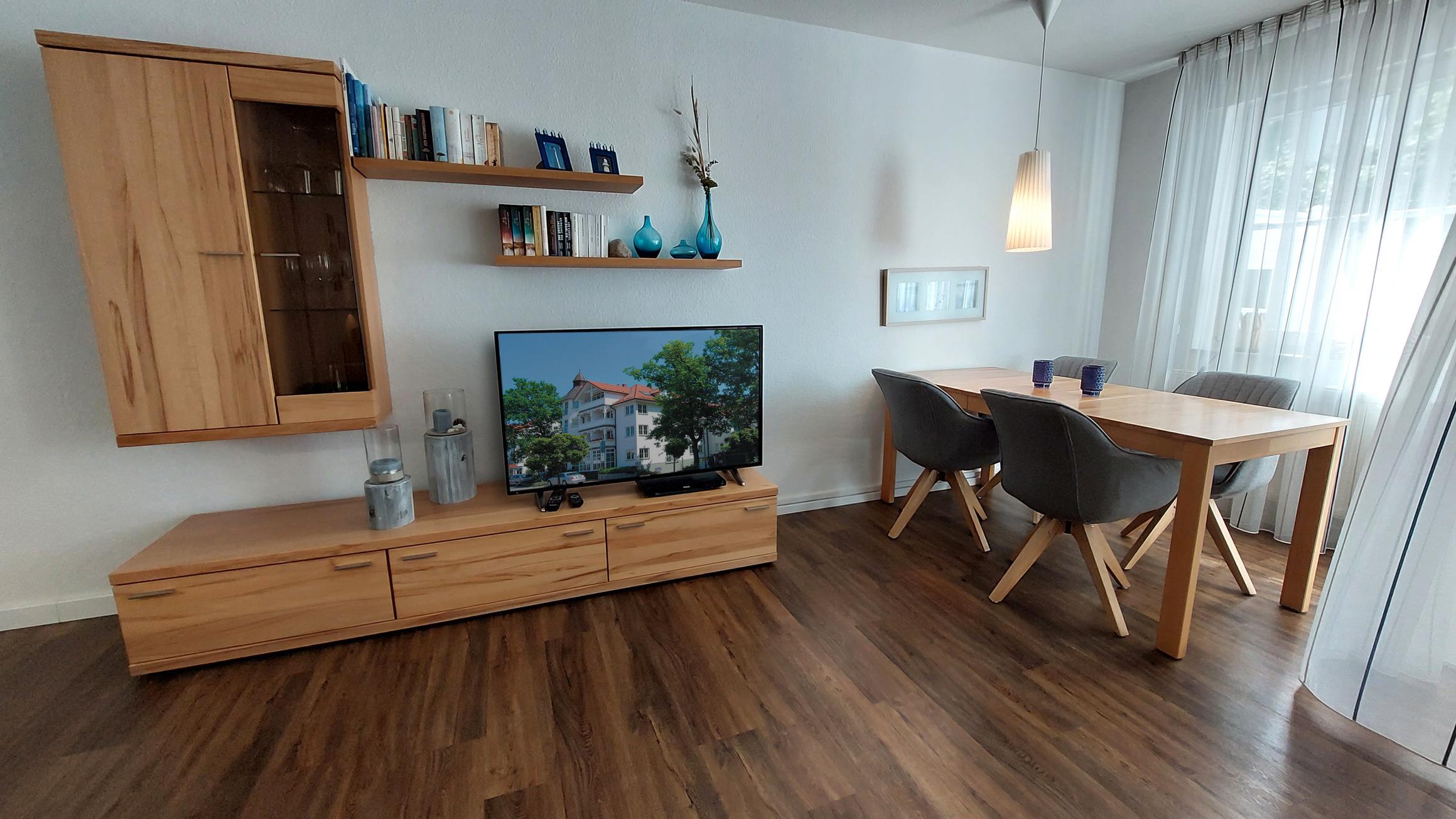 Zur technischen Ausstattung gehört wohnungseigenes WLAN-Netz, ein Smart-TV samt DVD-Player sowie eine kleine Musikanlage.