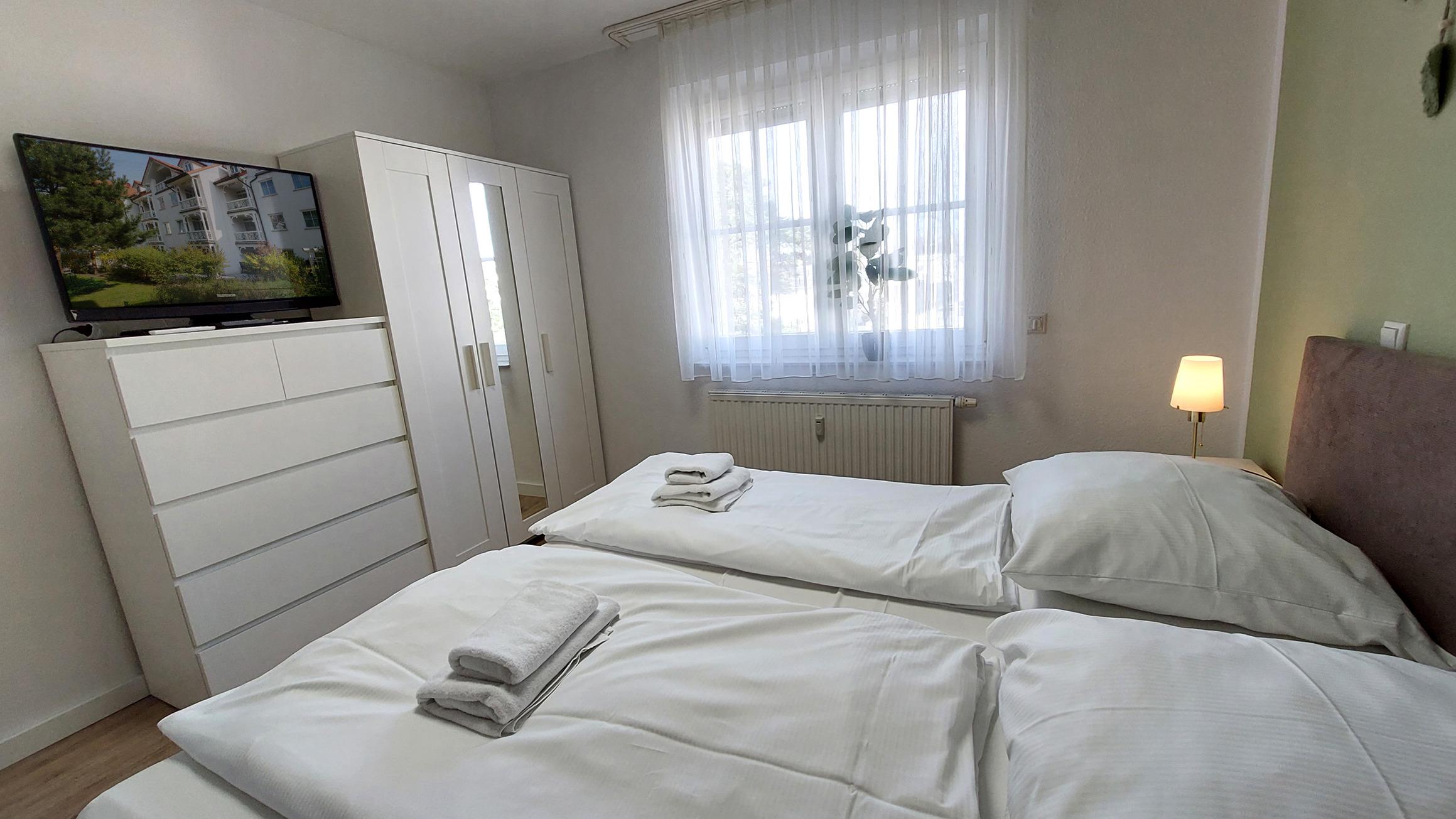 Im Schlafzimmer finden Sie ein gemütliches Boxspringbett, eine Kleiderschrank und einen Flachbild.-TV.
