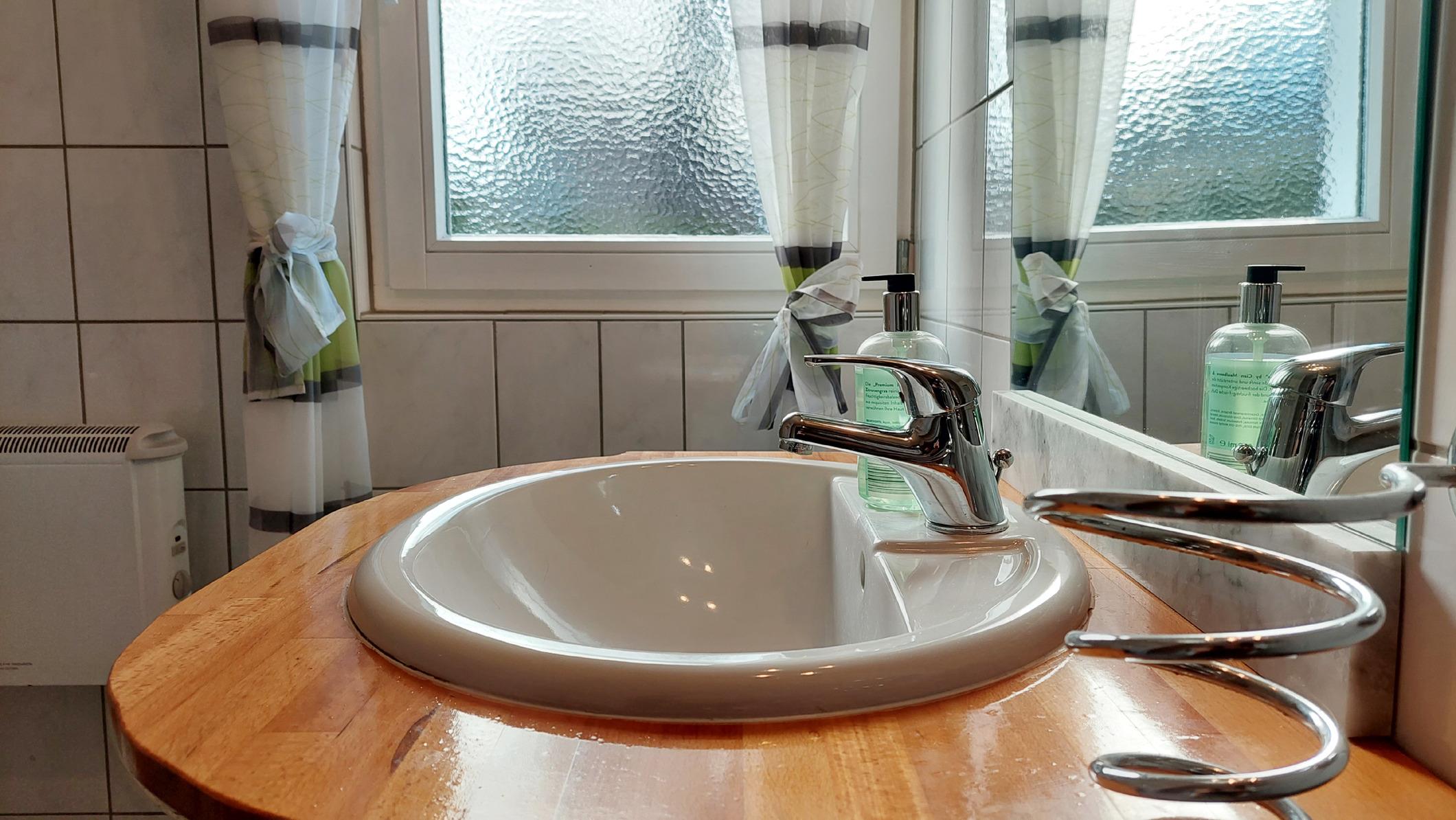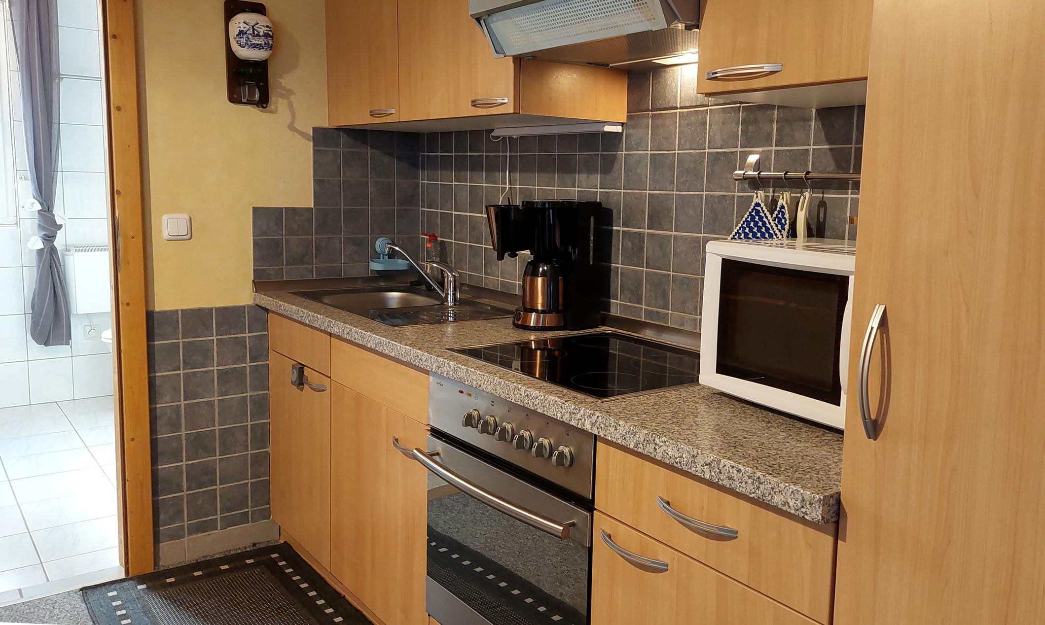 Diese ist ausgestattet mit Backofen, Ceranfeld, Geschirrspüler, Microwelle, Kühlschrank (mit Gefrierfach), Wasserkocher, Toaster, Kaffeemaschine und viele nützliche Küchenutensilien.