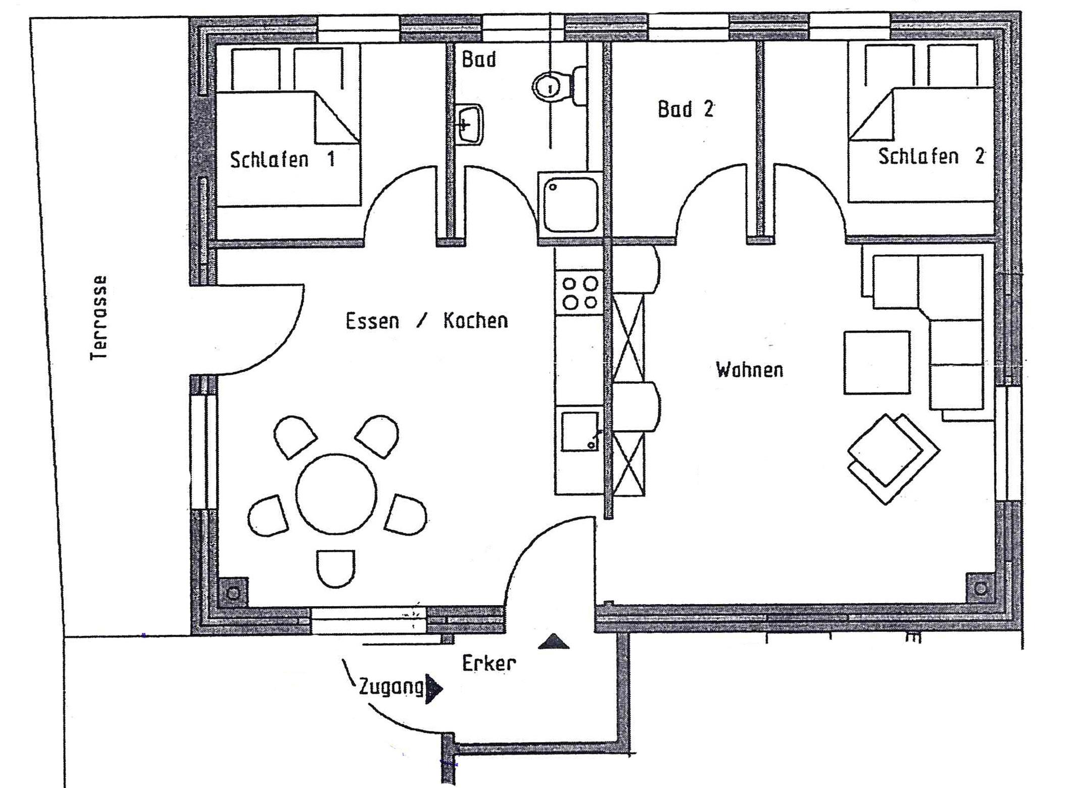 Das erste Schlafzimmer ist mit Doppelbett und Kleiderschrank ausgestattet. Im zweiten Schlafzimmer finden Sie einen Kleiderschrank und zwei Einzelbetten, welche bei Bedarf auch zusammenschiebbar sind.