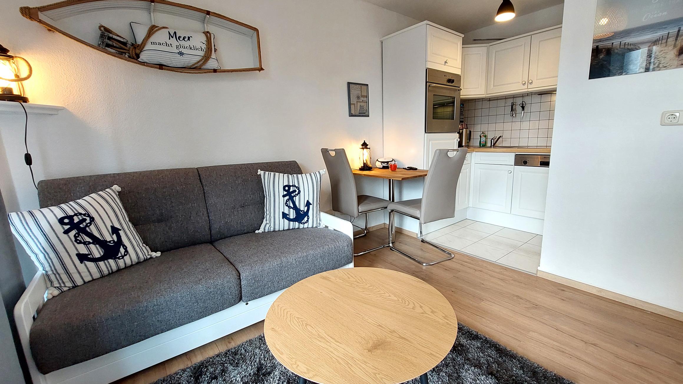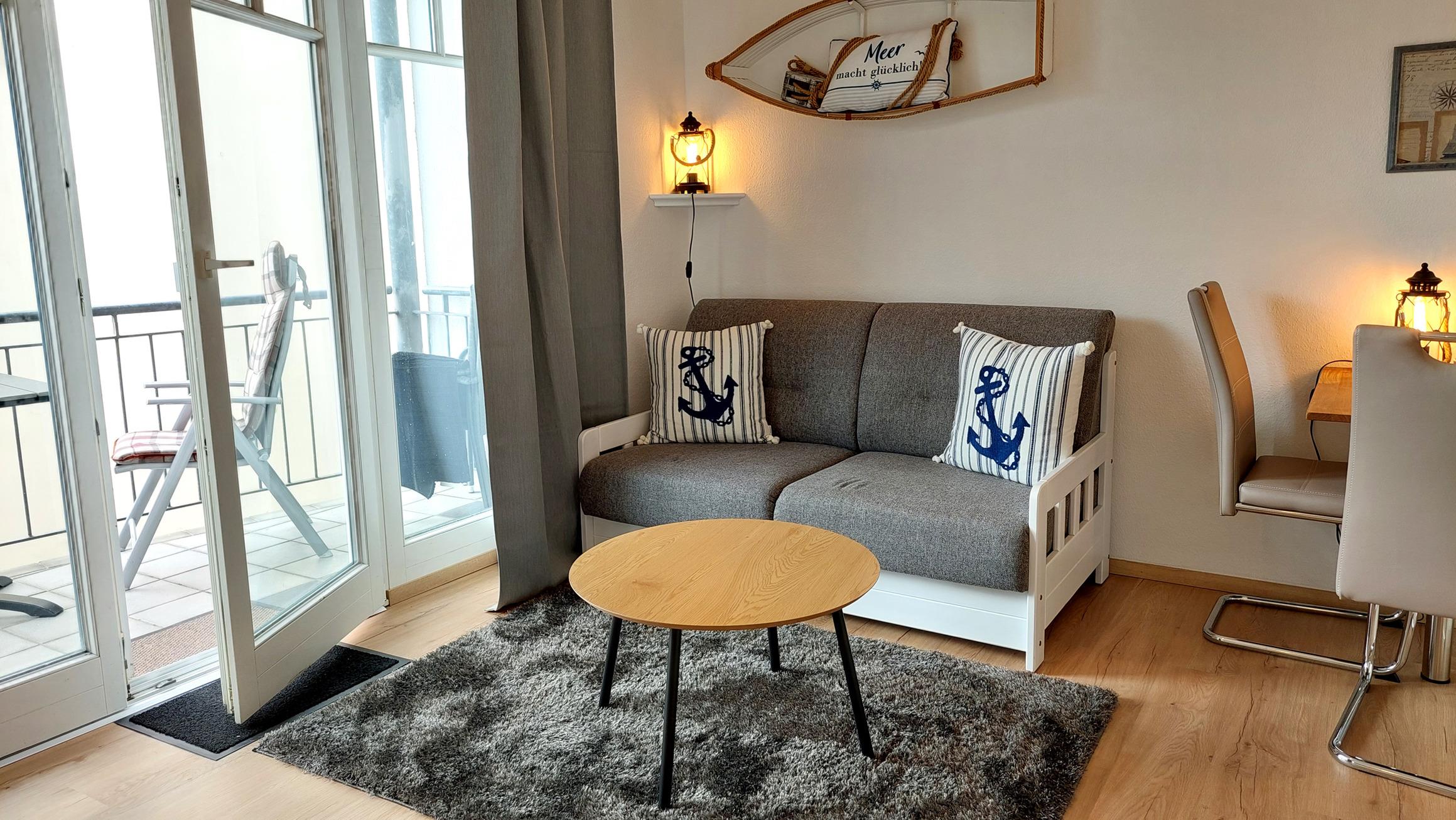 Die Lage des Apartments ist ideal, da der beliebte feine Sandstrand und die Promenade nur 50 m entfernt sind. Auch der Schmachter See ist in nur 350 m zu erreichen und die Hauptstraße mit ihren zahlreichen Restaurants und Geschäften liegt in einem Umkreis von 150-300 m. In unmittelbarer Nähe befinden sich außerdem mehrere Bäcker mit Frühstücksangeboten, ein Fischladen und ein EDEKA Markt. Die meisten Geschäfte haben von Ostern bis Oktober auch sonntags geöffnet.