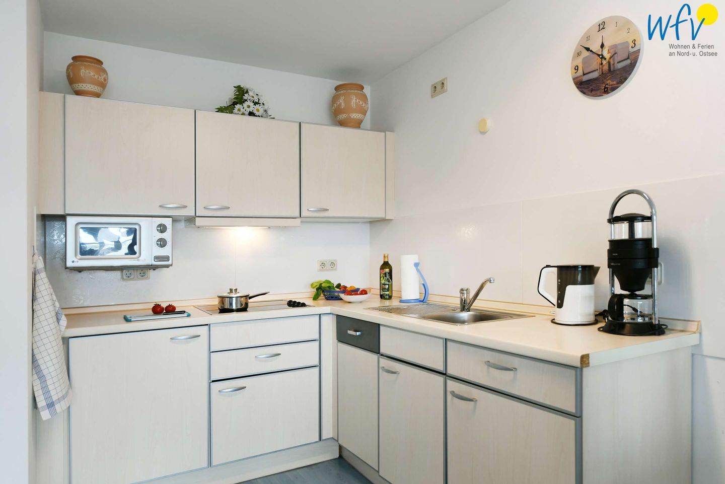 Starten Sie in den Tag mit einem ausgiebigen Ferienfrühstück am Esstisch und tollen Urlaubsplänen! Gekochte Eier oder gebratener Speck lassen sich ganz bequem in der angrenzenden Küchenzeile mit Ceranherd zaubern. Für den Kakao zwischendurch gibt es eine Mikrowelle (zusätzlich mit Grillfunktion, aber ohne Rost). Den Abwasch übernimmt die Spülmaschine und dann geht`s ab zum Strand, ins Örtchen oder in die Wälder der Granitz!