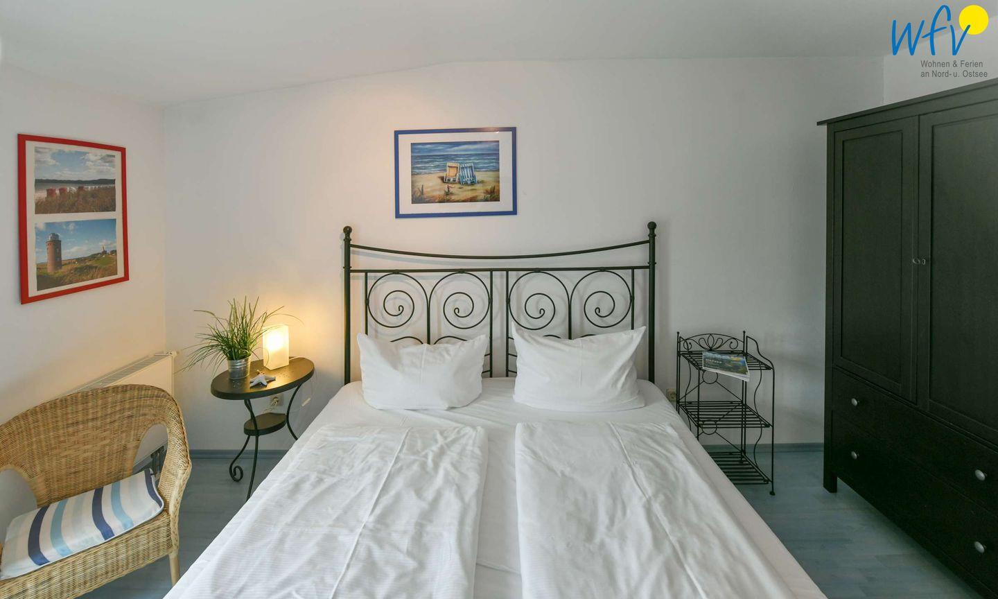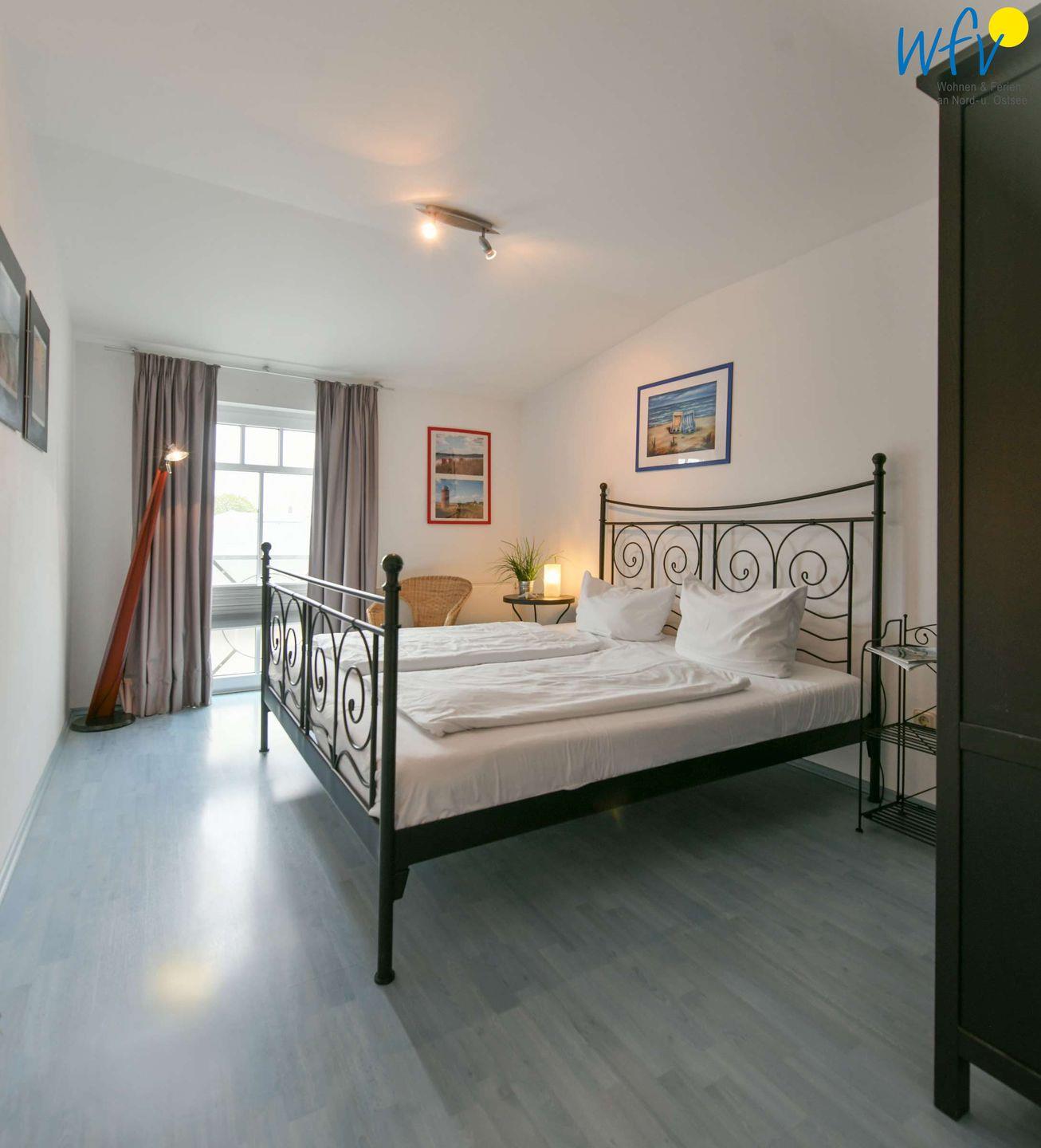Ein separates Schlafzimmer mit Doppelbett und Kleiderschrank bietet bequeme Schlafmöglichkeiten, ebenso wie die Schlafcouch im Wohnzimmer. Auch vom Schlafzimmer aus gelangen Sie auf den Trittbalkon.