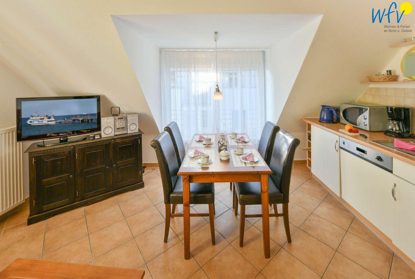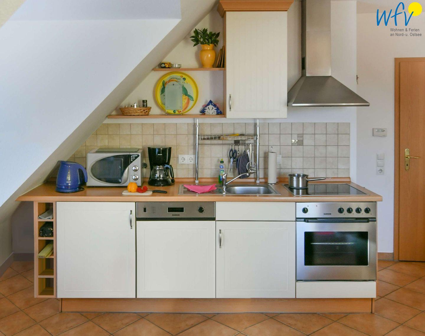 Starten Sie den Tag mit einem ausgiebigen Frühstück an dem schönen Essplatz am Fenster. Hier bekommt man direkt Lust, den Urlaubstag zu planen! Warme Croissants, das Lunchpaket für unterwegs oder das Dinner am Abend können Sie wunderbar in der offenen Küchenzeile mit Ceranherd, Backofen und Mikrowelle zubereiten. Für Kaffeeliebhaber gibt es einen Vollautomaten (mit Bohnen). Den Abwasch erledigt angenehm die Spülmaschine.