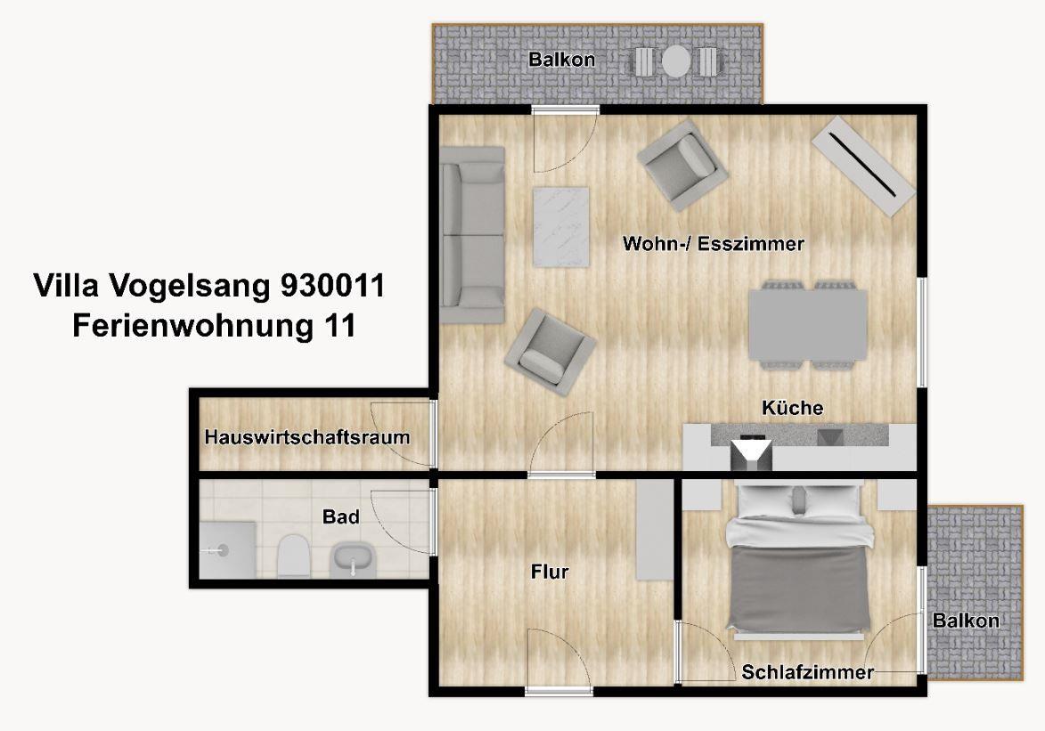 Komfortable Ferienwohnung mit zwei Balkonen und Seeblick in der Villa Vogelsang auf Rügen.