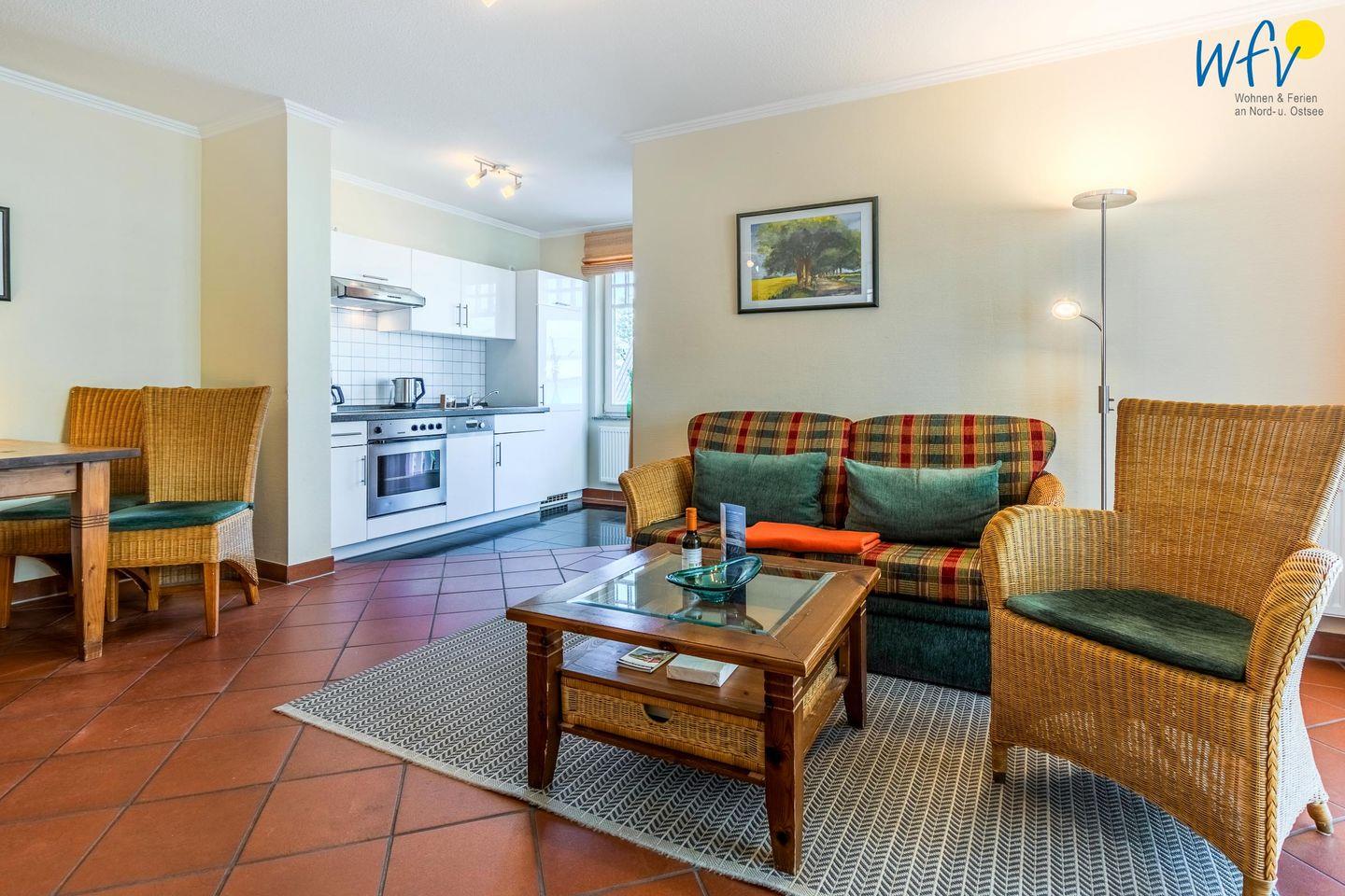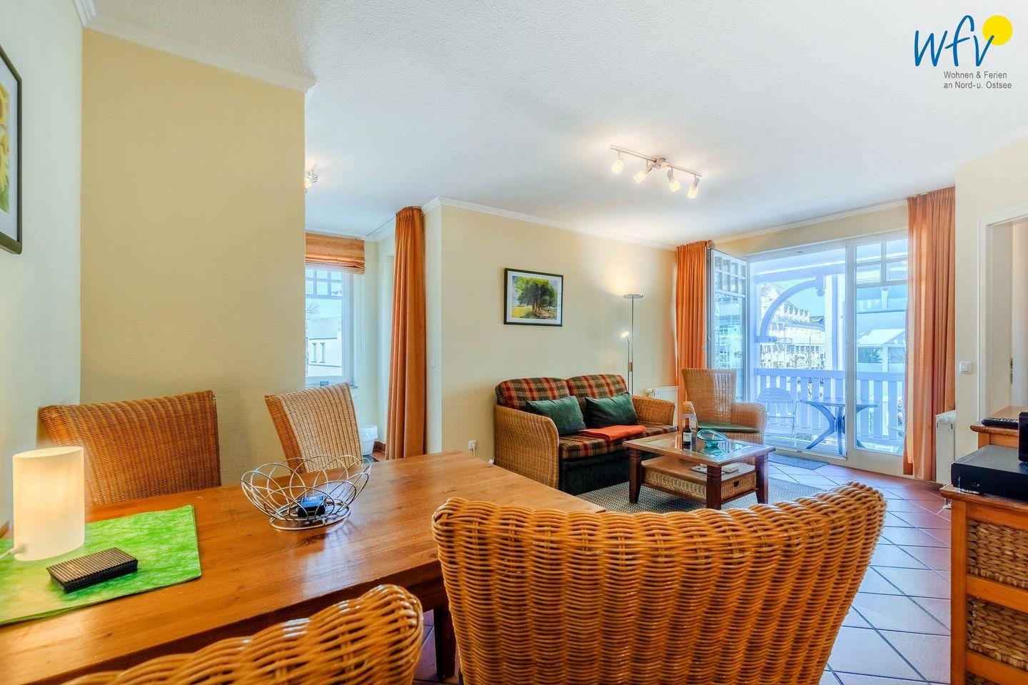 Eine gemütliche Einrichtung mit Rattanmöbeln sowie ein schöner Lichteinfall lassen direkt ein Gefühl der Erholung aufkommen! In der Couchecke mit modernem TV, DVD-Player und kleiner HiFi-Anlage können Sie nach dem Ausflugstag ausgiebig entspannen. Oder Sie genießen auf einem der beiden überdachten Balkone die wohltuende Ostseeluft. Das ist ein wunderbares Urlaubsgefühl!