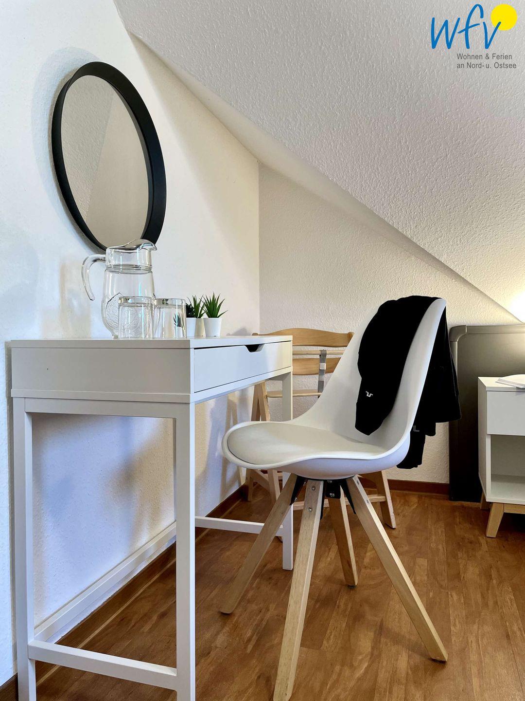Etwas Kinderspielzeug und ein Hochstuhl gehört in dieser familienfreundlichen Ferienwohnung zum festen Inventar. Außerdem gibt es für unsere kleinen Gäste einen kleinen Spielplatz in der Wohnanlage. Gerne können Sie ein Kinderbett hinzubuchen.