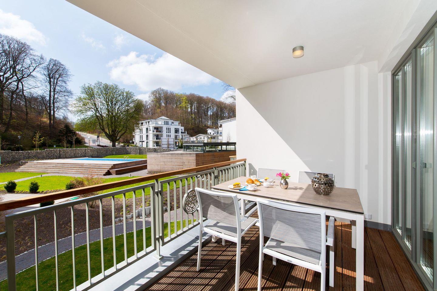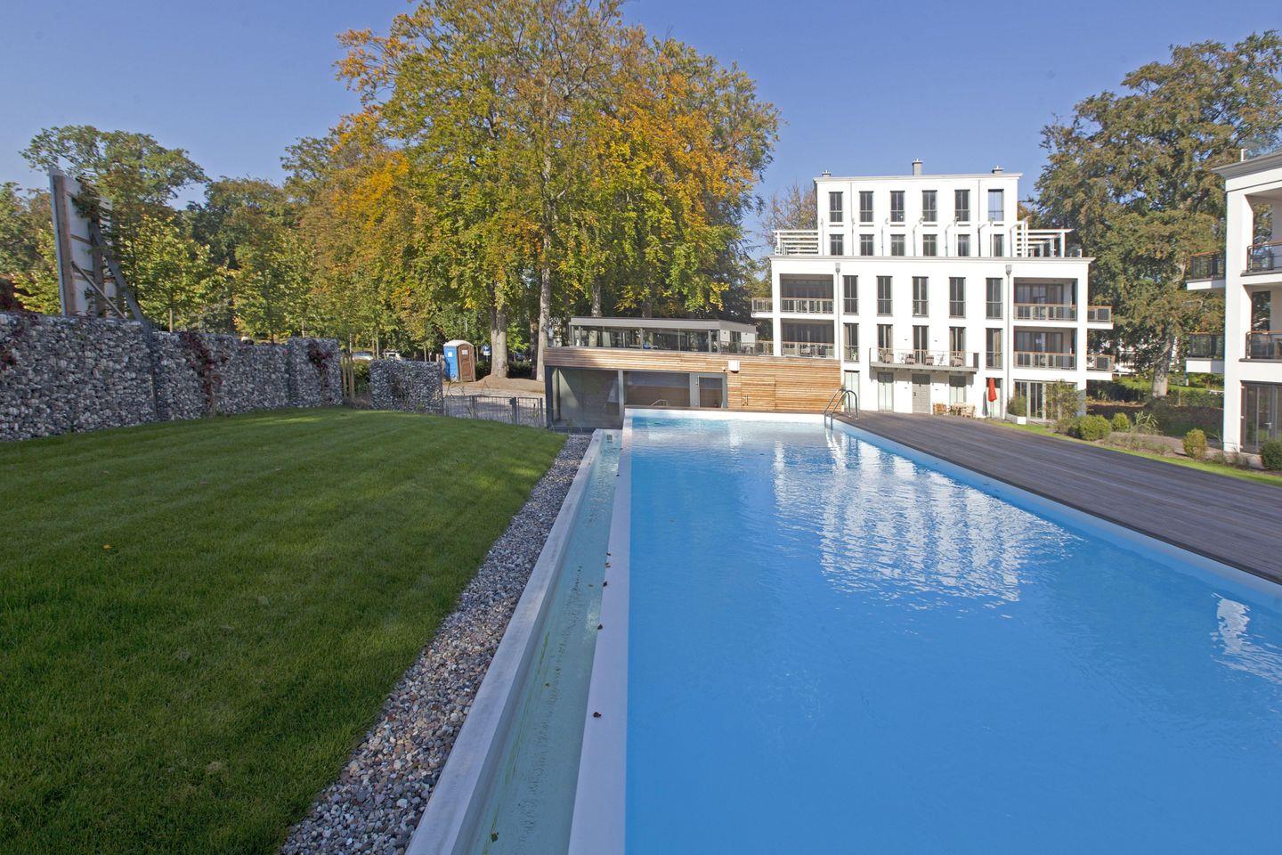 Die Wellness-Ferienwohnung "Meine Auszeit" befindet sich in den neu gebauten Binzer Parkvillen inmitten einer 6000 m² großen Parkanlage nah am Zentrum und der Seebrücke. Die elegante und anmutige Architektur sorgt für reine Urlaubsvorfreude. Der saisonal nutzbare Außenpool ist für unsere Gäste das ganz besondere Highlight während des Sommerurlaubs.