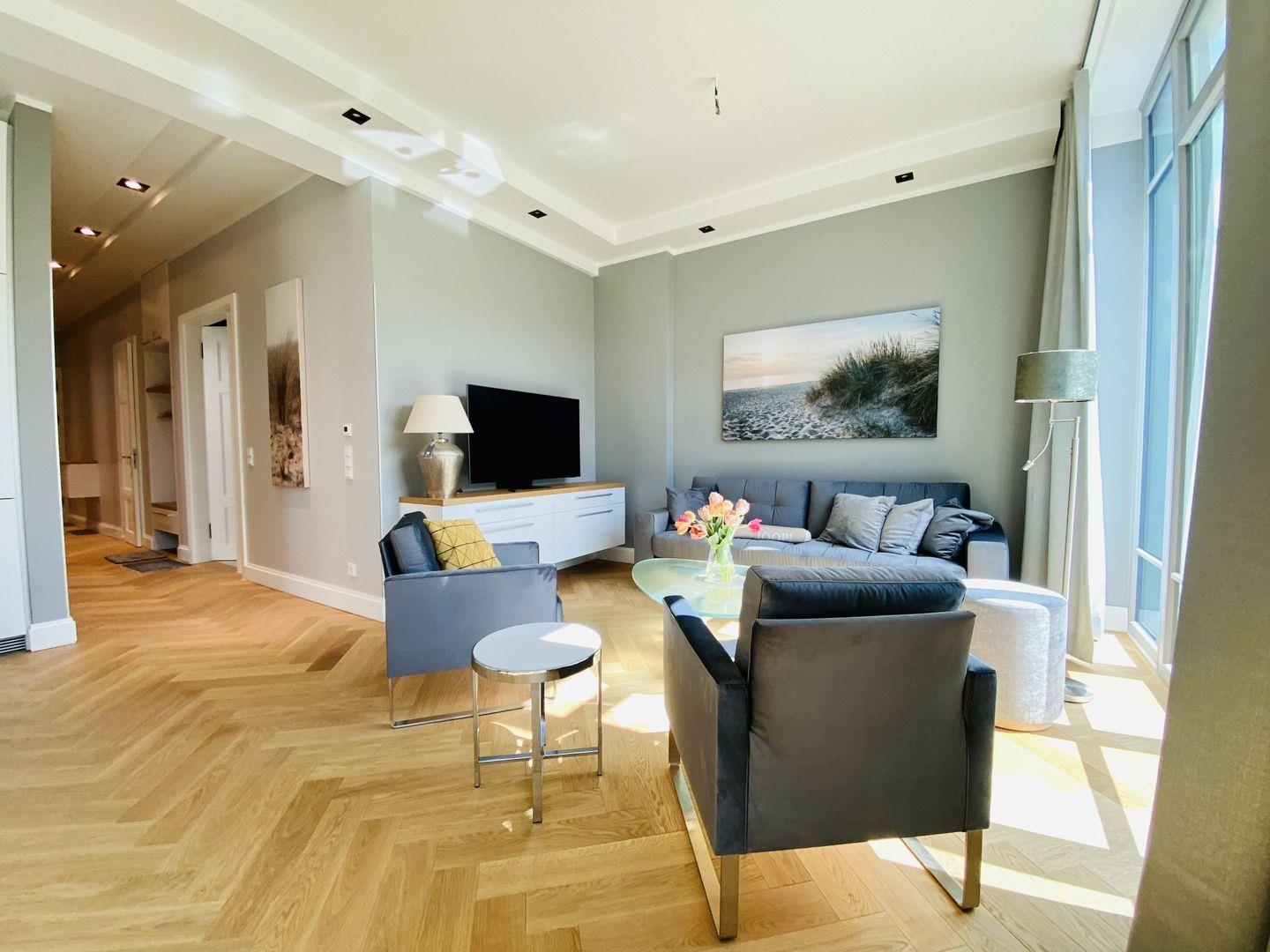 Exklusive und lässige Eleganz – top ausgestattet direkt am Meer! Zentrale Lage, direkt an der Promenade, am Strand und 50 Schritte bis zur Einkaufsstraße bzw. zur Seebrücke.