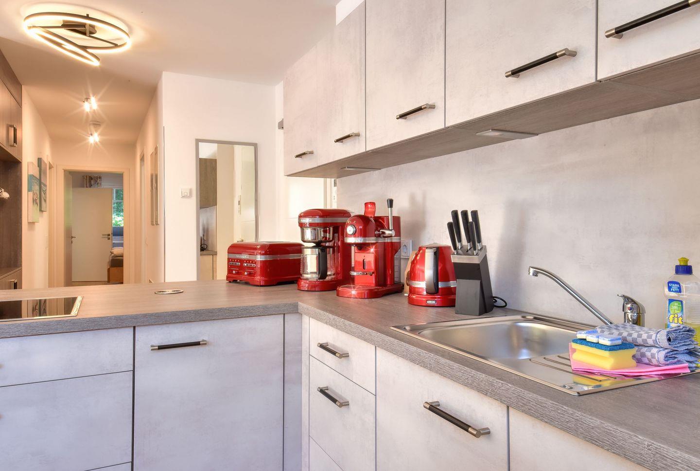 Die Wohnung verfügt über zwei großzügige Schlafzimmer, die mit einer geschmackvollen Einrichtung und hochwertigen Annehmlichkeiten ausgestattet sind, um Ihren Aufenthalt unvergesslich zu machen. Die beiden Bäder, elegant gestaltet und makellos sauber, bieten Ihnen den idealen Raum für Entspannung und Erfrischung nach einem erlebnisreichen Tag am Strand.