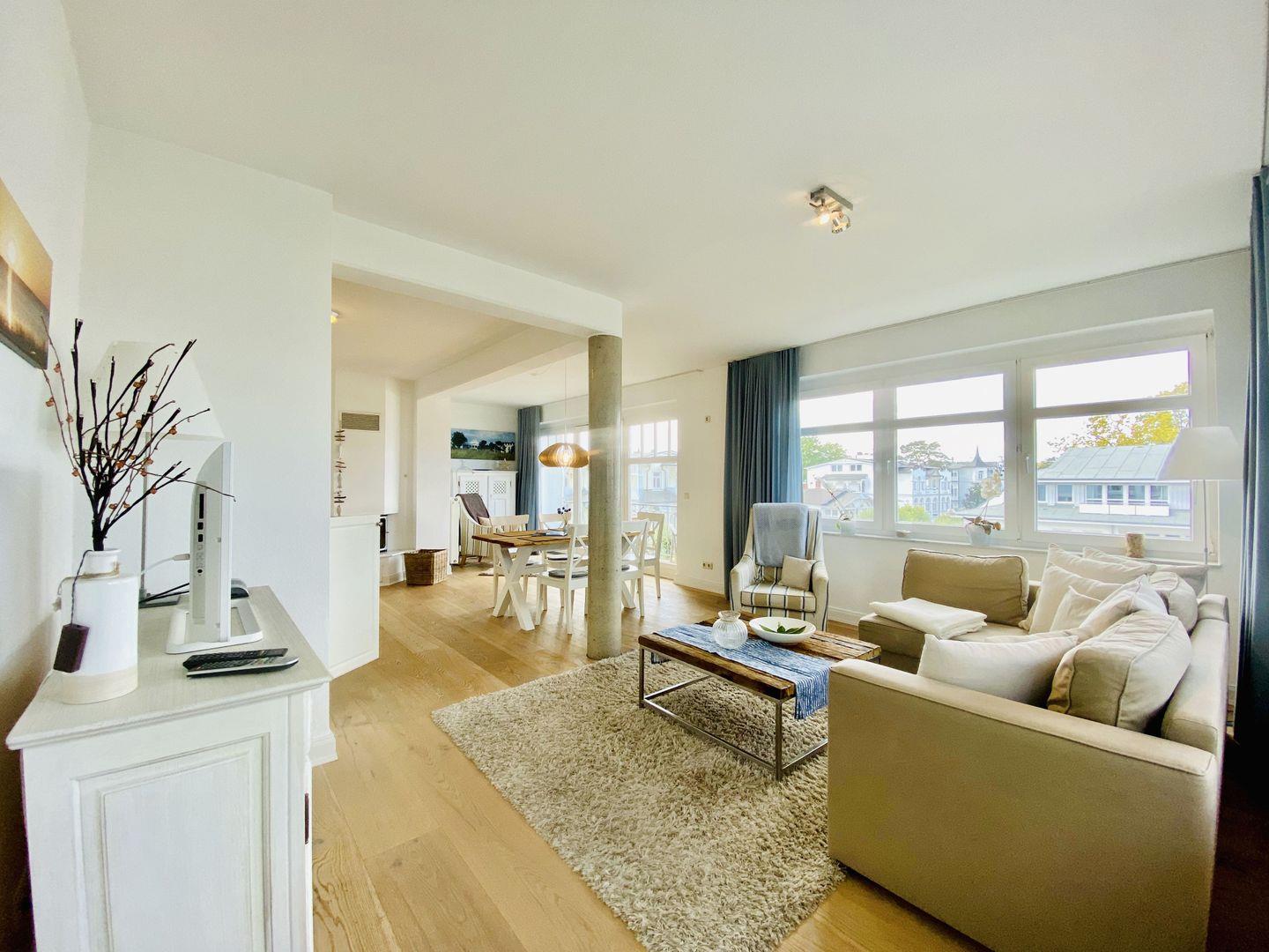 Genießen Sie in der Ferienwohnung Binzer Seeblick im Haus Jahreszeiten in Binz einen traumhaften Ostseeblick und Komfort auf 78 m².