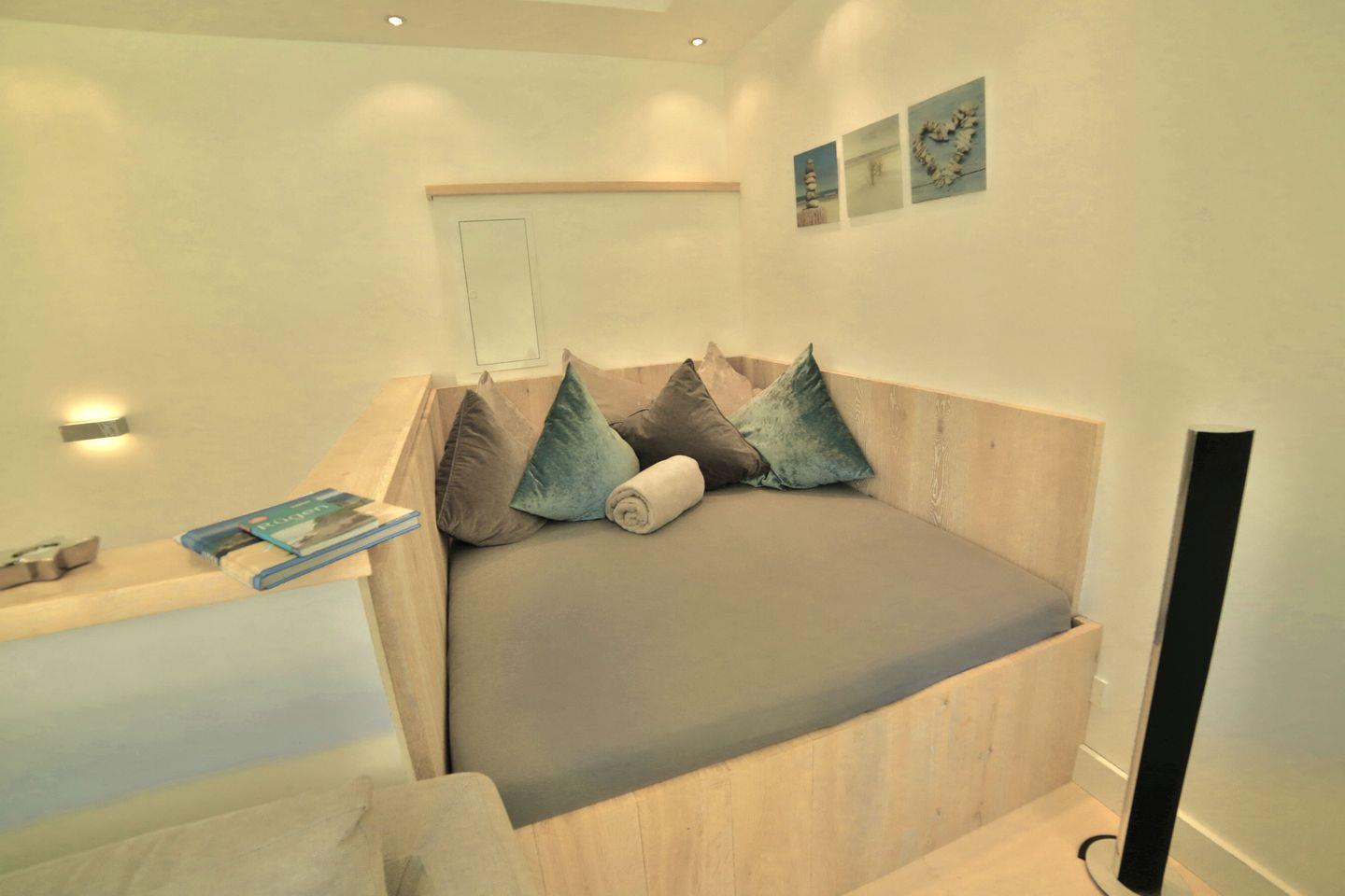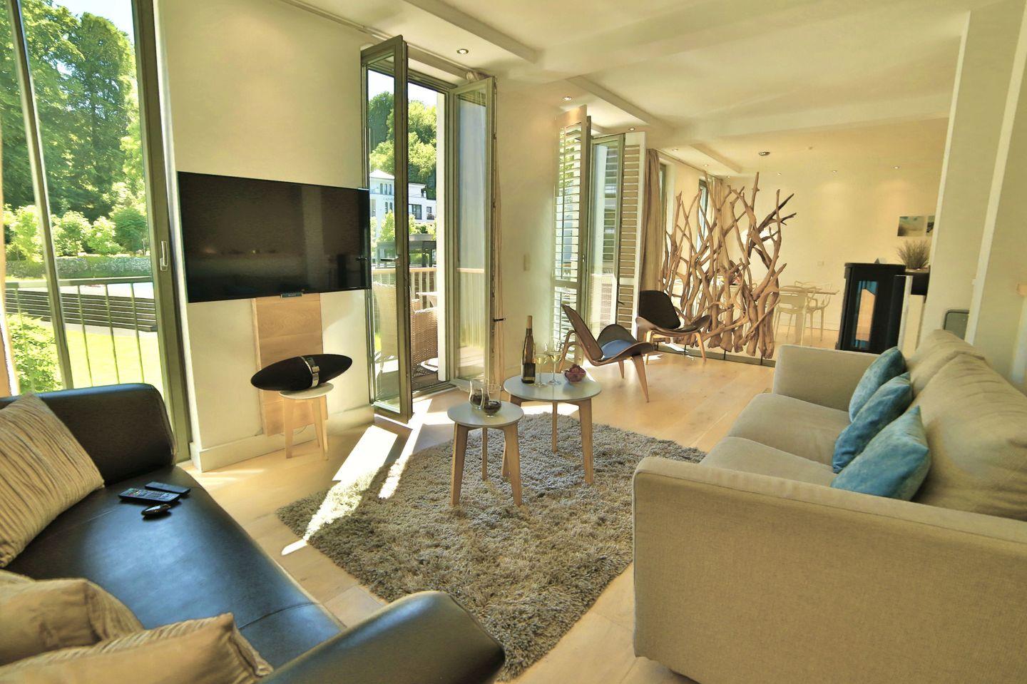 Die Ausstattung der "Strandlounge" lässt keine Wünsche offen. Neben den modernen Medien- und Technikeinrichtungen wie Flachbildfernseher und kostenfreiem WLAN, können Sie sich auch über eine Sonos Soundbar für ein erstklassiges Klangerlebnis freuen.