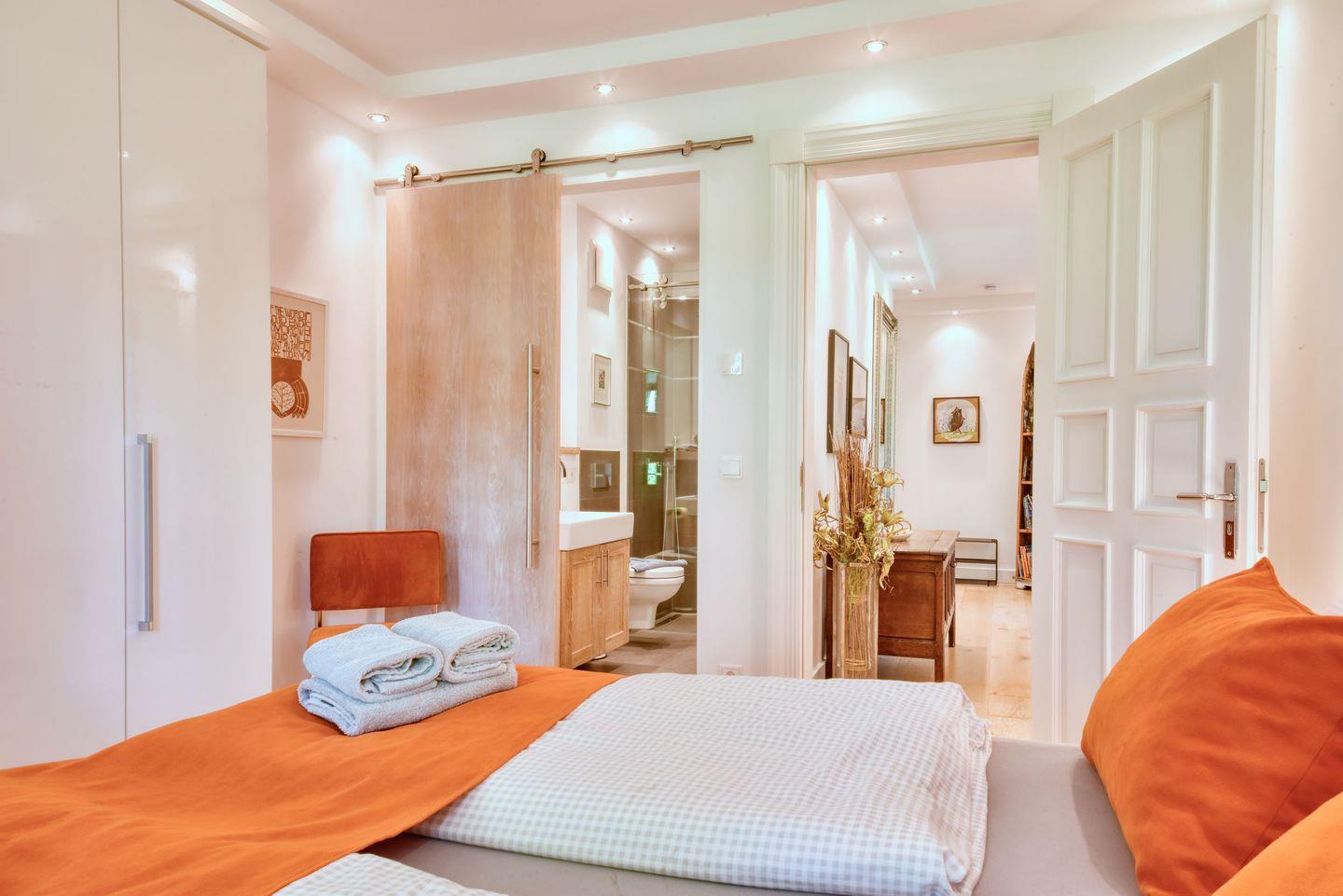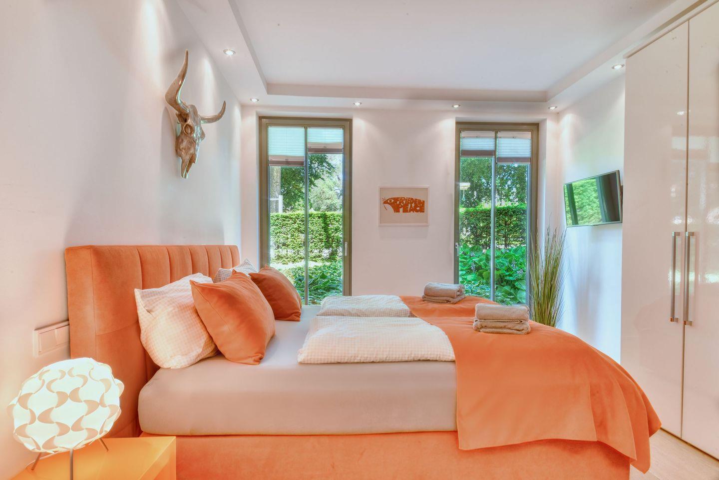 Für zusätzlichen Komfort und Bequemlichkeit bietet die Wohnung alle Annehmlichkeiten, die man sich für einen erstklassigen Aufenthalt wünscht. Alle Fenster sind mit Plissees ausgestattet, um bei Bedarf als Sichtschutz zu dienen, während kostenfreies WLAN den Gästen eine ständige Verbindung ermöglicht. Darüber hinaus stehen den Gästen 2 Trekking Fahrräder zur Verfügung, um die Umgebung zu erkunden.