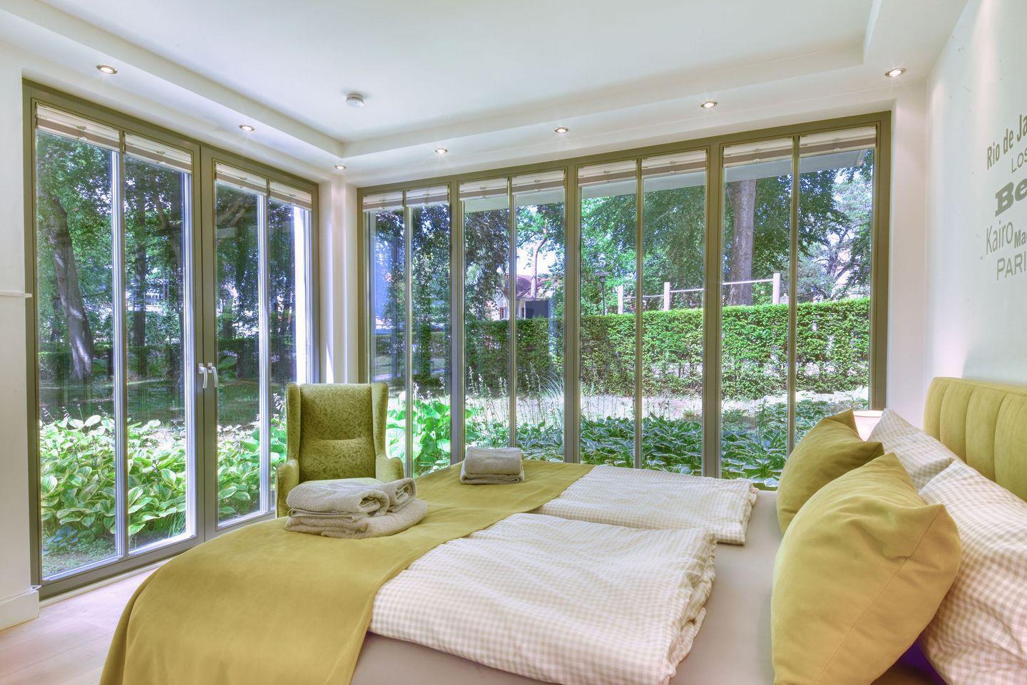 Luxuriöse Ferienwohnung Baltic Lounge in Binz mit Park, Pool und Strandkorb, ideal für Erholung an der Ostsee.