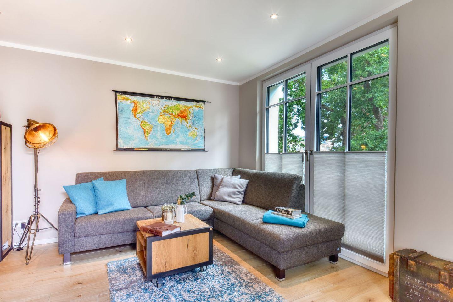 Elegantes Ferienappartement "Lotsenbude" in der Villa Sofie Binz, nur wenige Minuten vom Strand entfernt mit Balkon und Sauna.