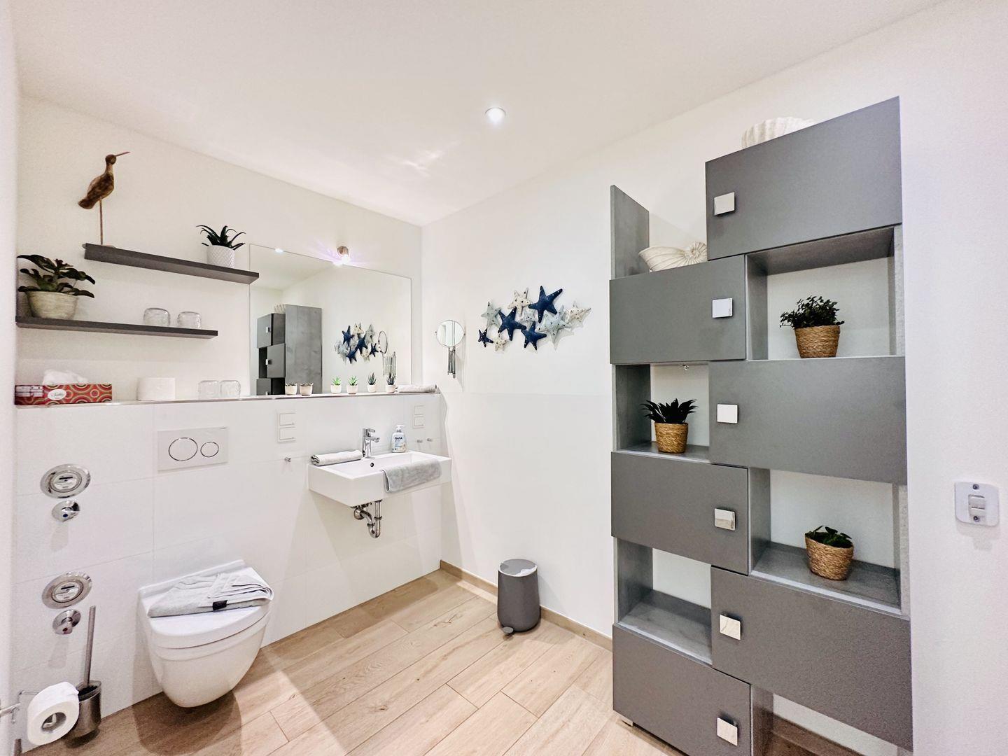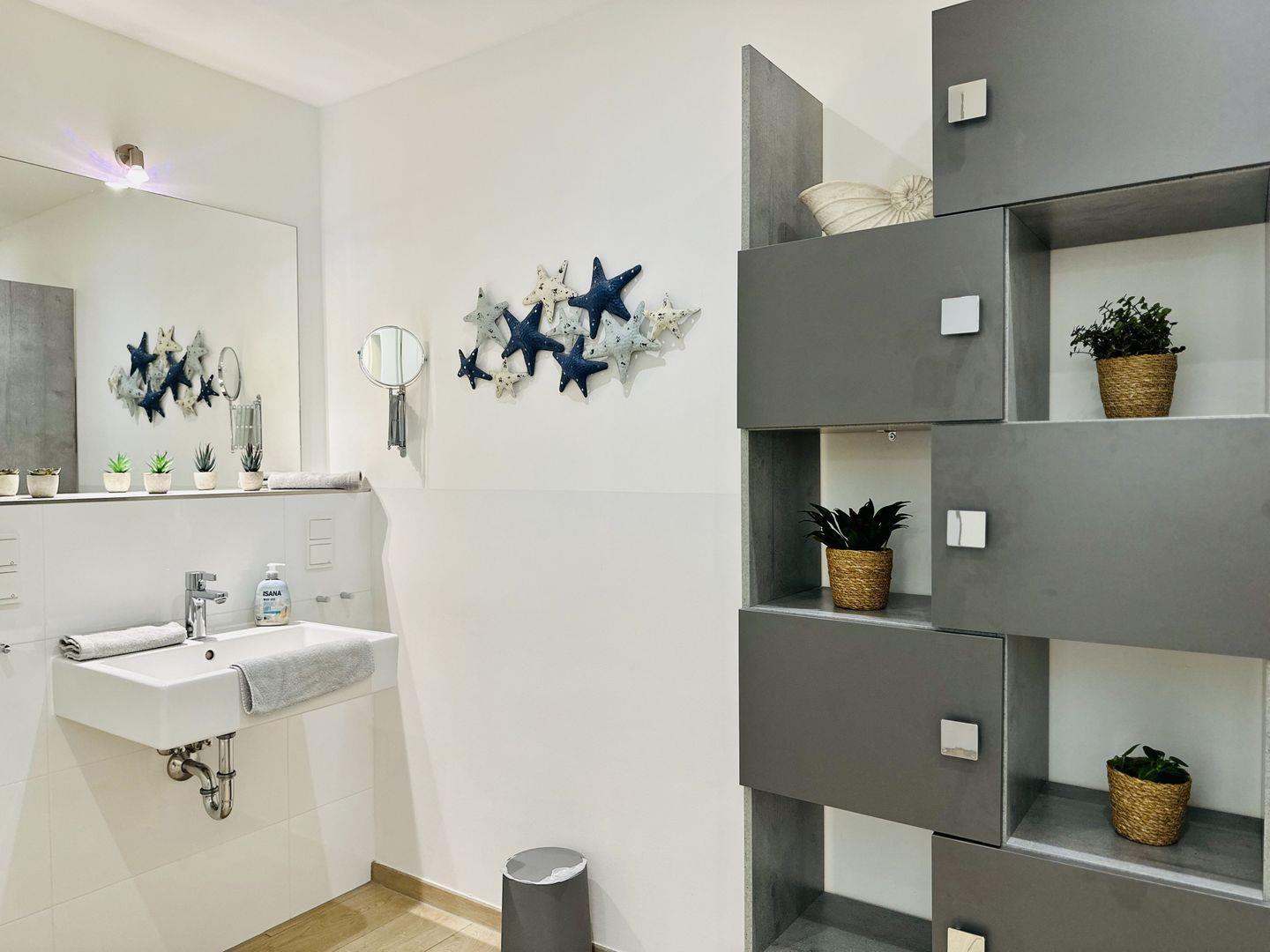 Ein besonders gemütliches Urlaubsdomizil erwartet Ostsee-Liebhaber im 2. Obergeschoss der Villa Sofie Binz im Appartement Nr. 13 „Strandmöwe“. Via Fahrstuhl geht es von der hauseigenen Tiefgarage hinein ins Urlaubsglück. In diesem 70 m² großen Ferienappartement finden bis zu vier Personen Platz. Kommen Sie erst einmal an und holen Sie tief Luft - denn Sandstrand und Ostseewellen sind nur wenige Gehminuten entfernt. Zum Ausspannen lädt die 12 m² große Dachterrasse mit rustikalen Gartenmöbeln ein. Ob beim Frühstück unter freiem Himmel, beim Entspannen auf der wohnungseigenen Dachterrasse – hier fängt die Erholung bereits direkt nach Anreise an. Das helle Wohnzimmer bietet reichlich Platz zum Entspannen auf dem Leder-Ecksofa oder zum Essen am Esstisch. Die Wohnung ist im eleganten Design eingerichtet. Ein großer Flat-TV mit Smart-Funktion sorgt für abendliche Unterhaltung. Kostenfreies WLAN steht zur Verfügung. Die offene Wohnküche ist mit hochwertigen Küchengeräten voll ausgestattet. Das Schlafzimmer lädt mit bequemen Doppelbett zum Träumen ein. Hier gibt es Nachttischschränkchen mit Leselampen, einen Flachbild-TV, einen Sessel und einen Kleiderschrank mit genügend Ablagefläche. Das zweite Schlafzimmer hat ebenfalls ein bequemes Doppelbett und eine Kommode. Das moderne Bad verfügt über Dusche, WC, Handtuchheizung und Waschtisch. Im Haus gibt es eine finnische Holzsauna, eine Waschmaschine und einen Trockner (alles Münzgeräte) zur gemeinschaftlichen Nutzung. Bei der Anreise sind die Betten bereits bezogen und Handtücher und Badetücher liegen bereit. Ein eigener Stellplatz in der Tiefgarage ist für Sie reserviert.