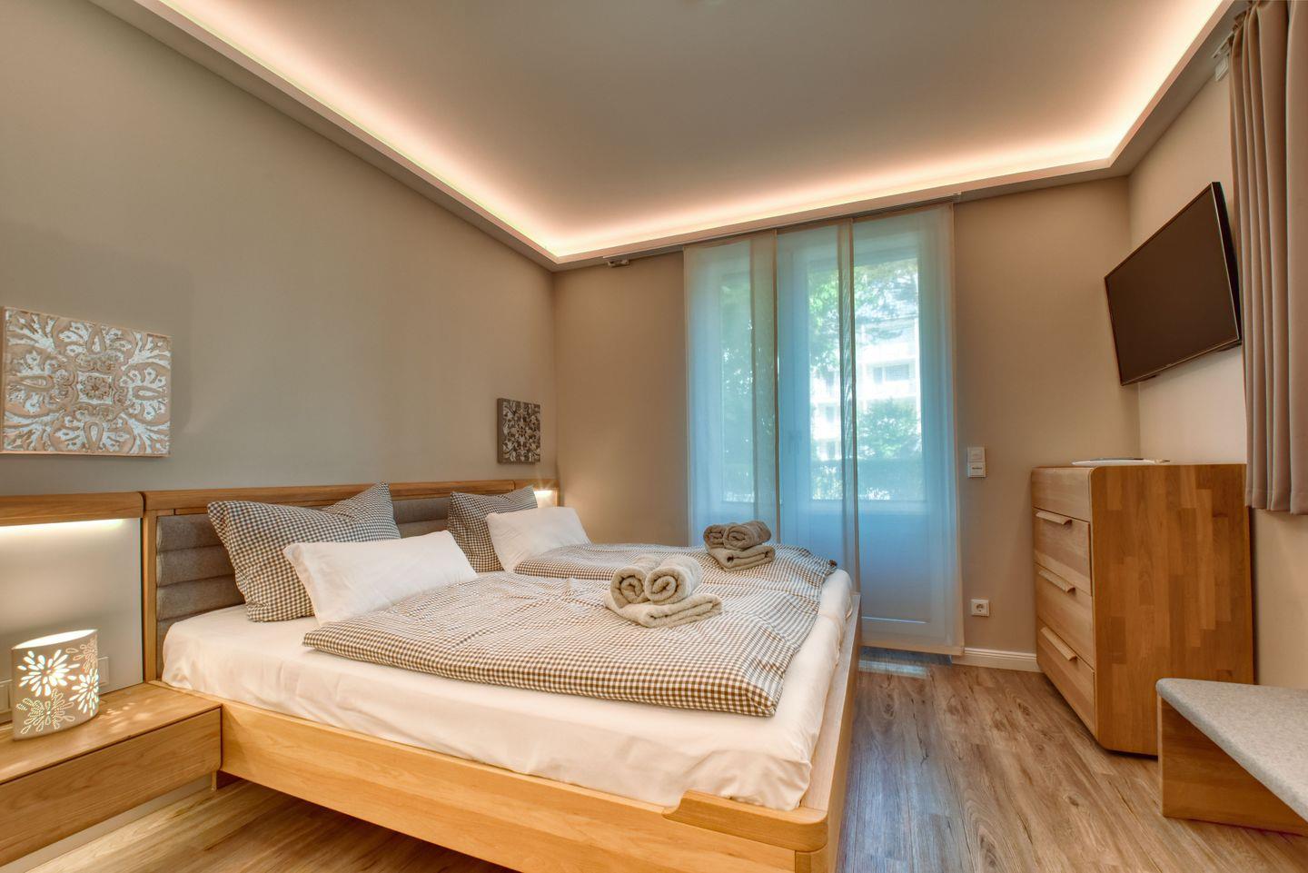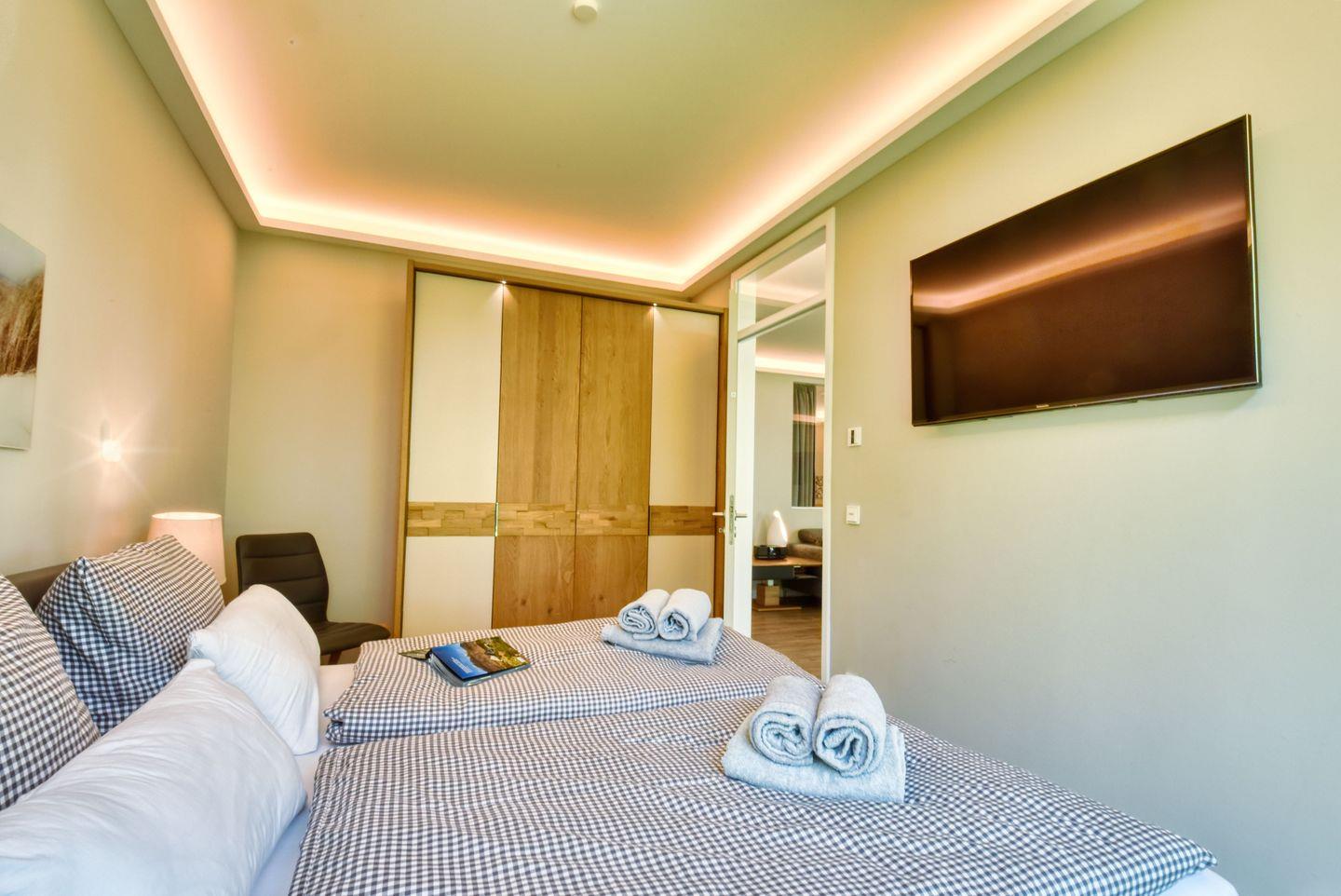 Die Ferienwohnung verfügt über zwei geschmackvoll eingerichtete Schlafzimmer, die Ihnen erholsame Nächte garantieren. Die Schlafzimmer sind mit einem komfortablen Boxspringbett und einem geräumigen Kleiderschrank ausgestattet. Beide Schlafzimmer bieten einen herrlichen Meerblick, der Sie schon beim Aufwachen verzaubert.