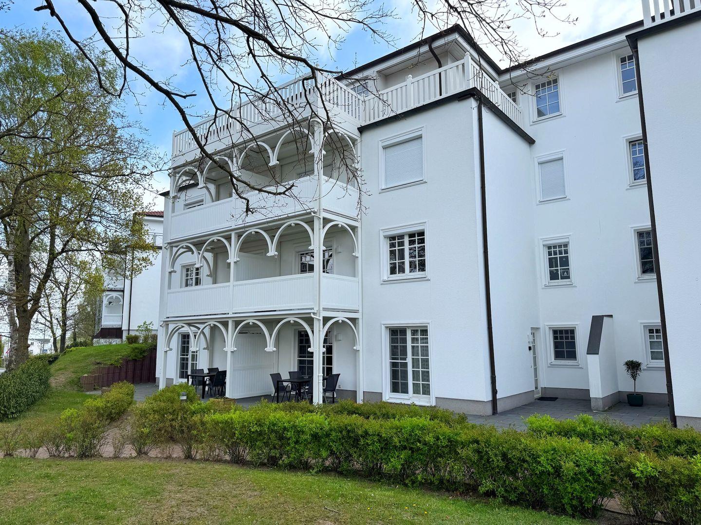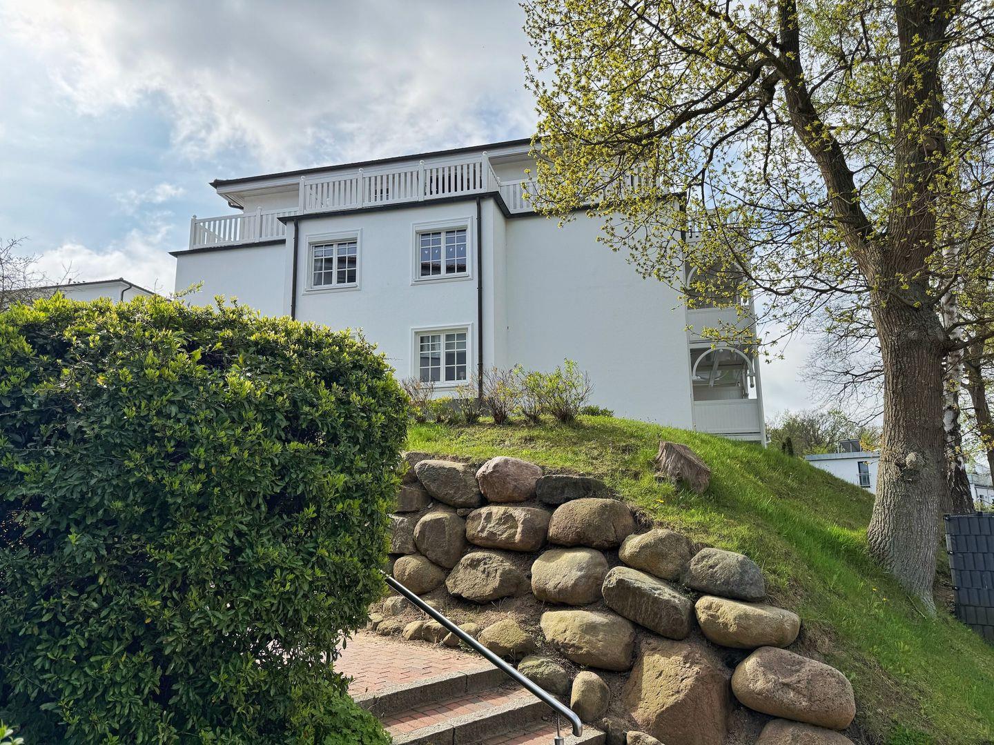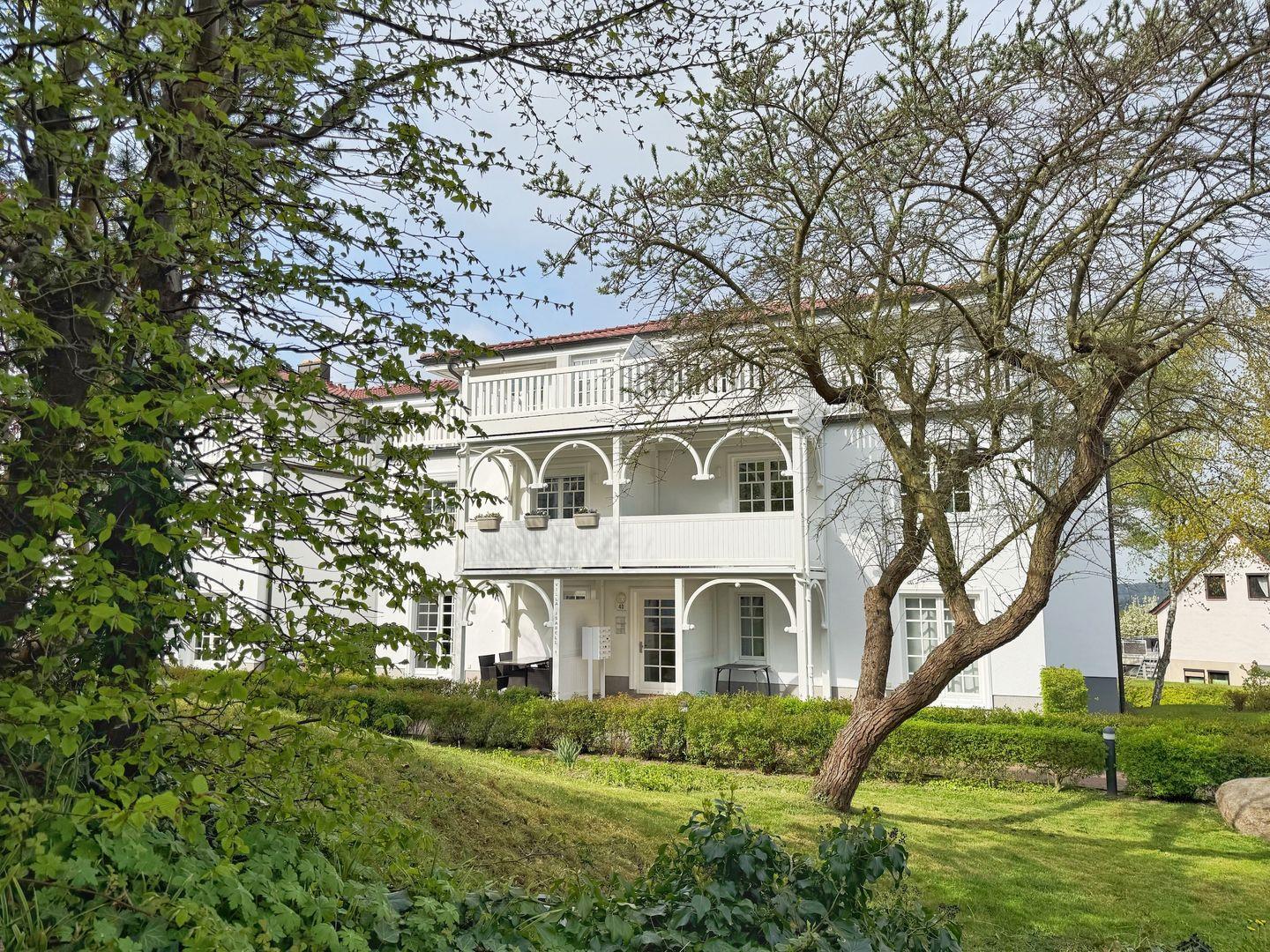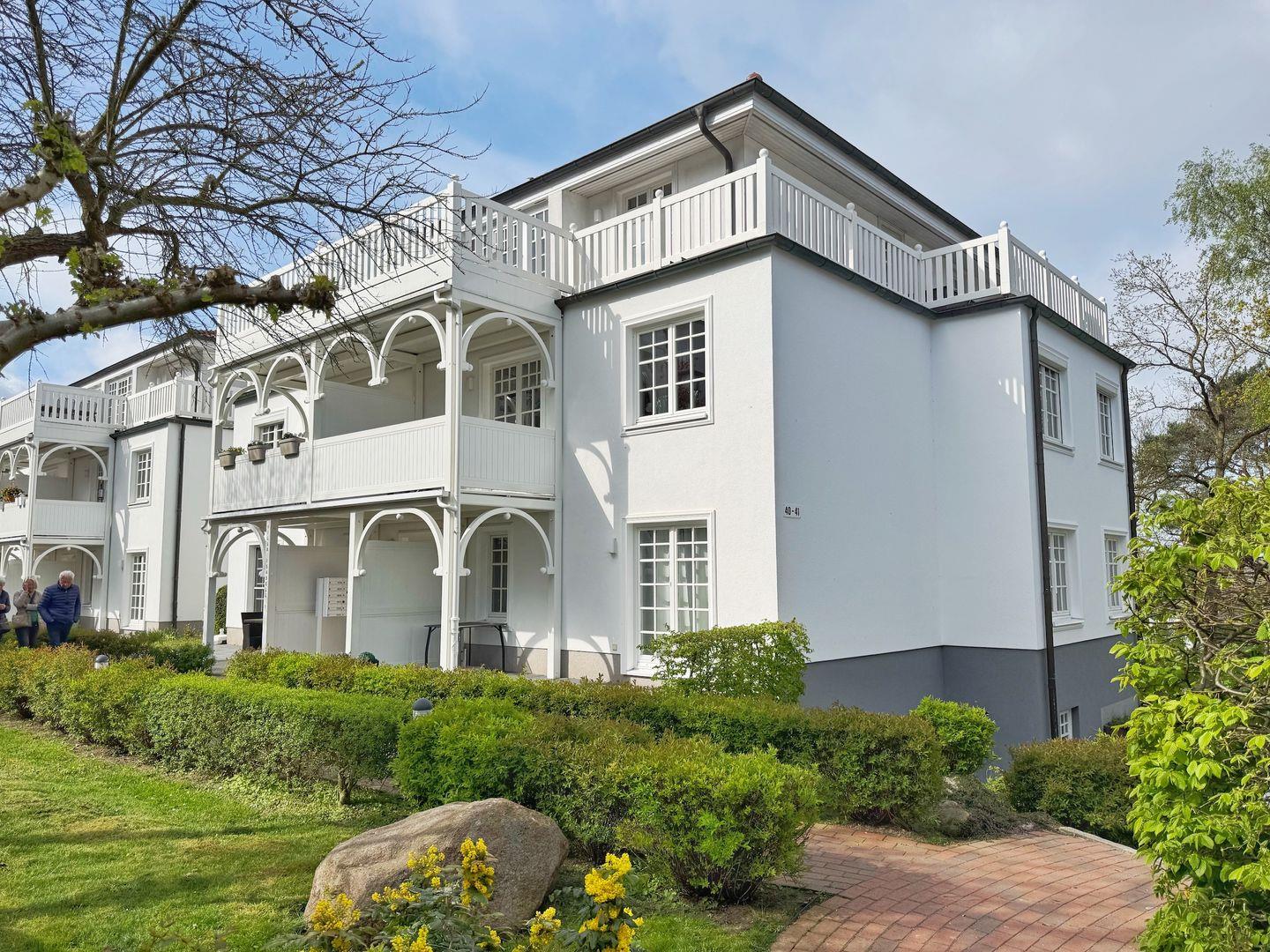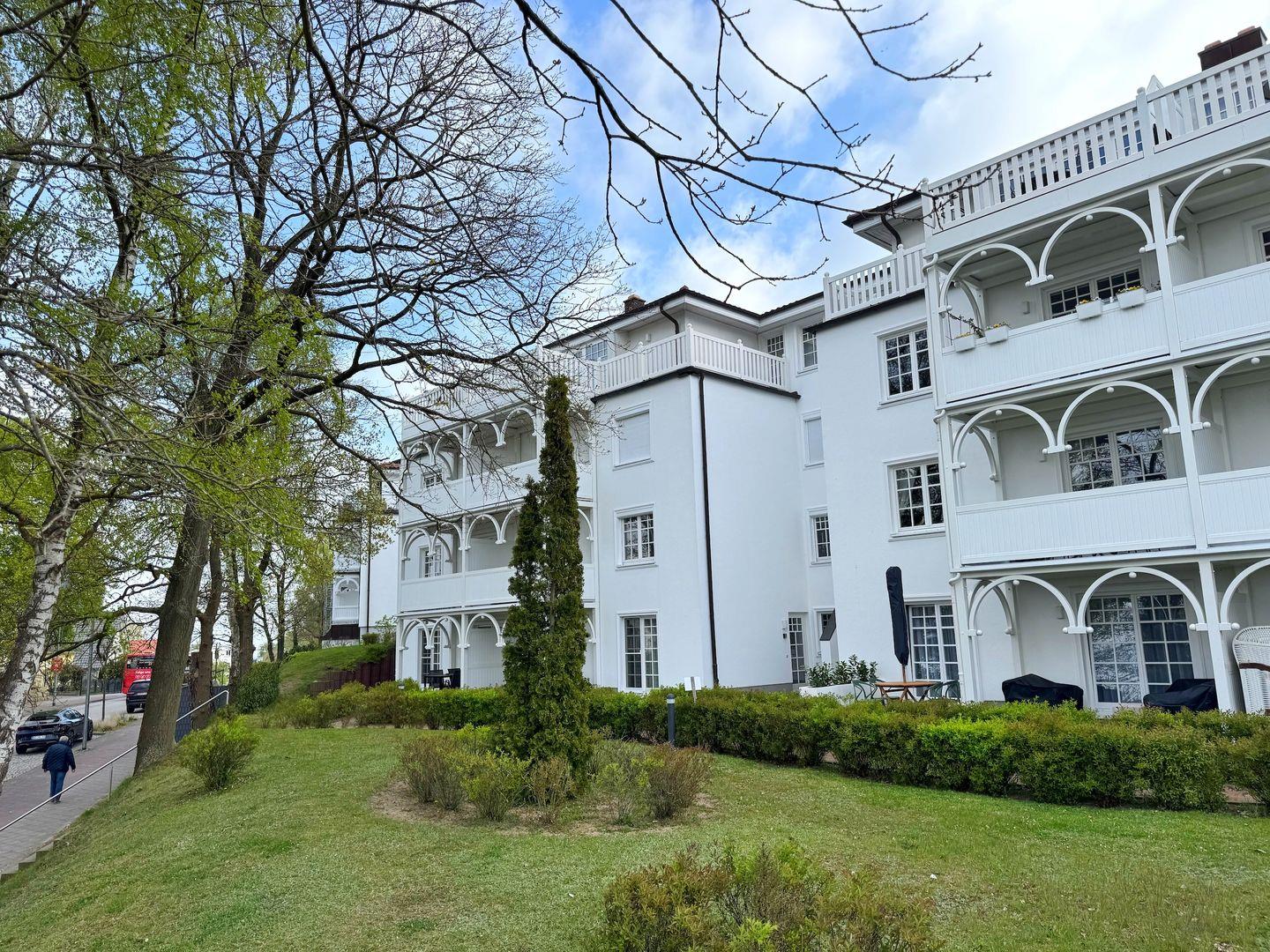 Die Ferienwohnung "KLÜND8" befindet sich im Haus Isabell I in einer gepflegten und schönen Wohnanlage im Stil der Bäderarchitektur am Klünderberg im Ostseebad Binz. Die Residenz besteht aus mehreren 3-geschossigen, weißen Villen mit gestalteten Gartenflächen zwischen den Häusern und einer Tiefgarage unter der Anlage. Die Wohnanlage befindet sich zwischen Ostseestrand und dem Schmachter See und in unmittelbarer Nähe zum Wald, der Granitz. Zum feinsandigen Ostseestrand sind es ca. 400m. Ebenfalls in der Nähe und fußläufig gut erreichbar sind die Strandpromenade, der Kleinbahnhof, Bushaltestelle, Supermärkte und Restaurants.