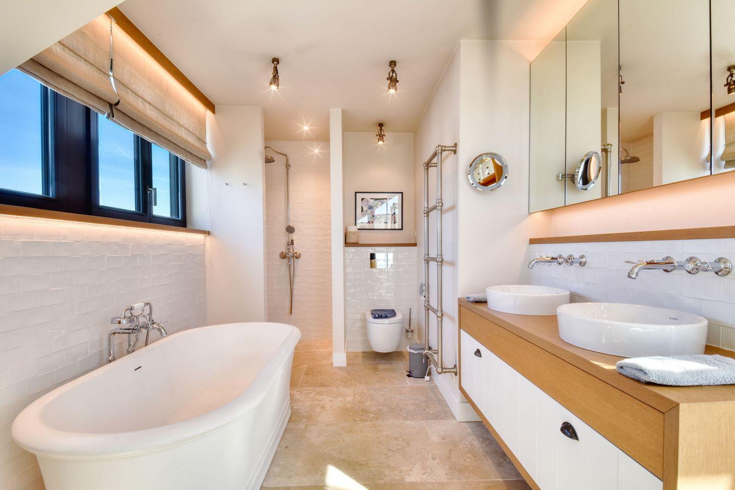 Insgesamt stehen Ihnen zwei geschmackvoll eingerichtete Schlafzimmer mit Platz für bis zu vier Personen zur Verfügung. Diese sind mit hochwertigen Betten ausgestattet, die für eine erholsame Nachtruhe sorgen. Das moderne Badezimmer bietet nicht nur eine bodengleiche Dusche, sondern auch eine Badewanne, in der Sie nach einem erlebnisreichen Tag entspannen können. Für zusätzlichen Komfort sorgen Annehmlichkeiten wie ein Haartrockner, Kosmetikspiegel sowie Toilettenartikel.