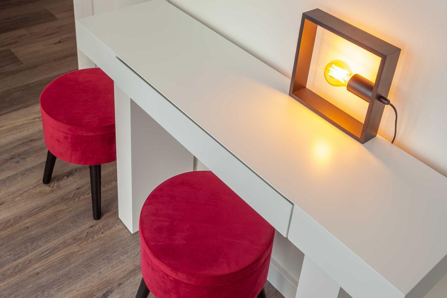 Es können bis zu 4 Personen übernachten. Es gibt ein Schlafzimmer mit Doppelbett und im Wohnraum ein Schlafsofa für 2 Personen.