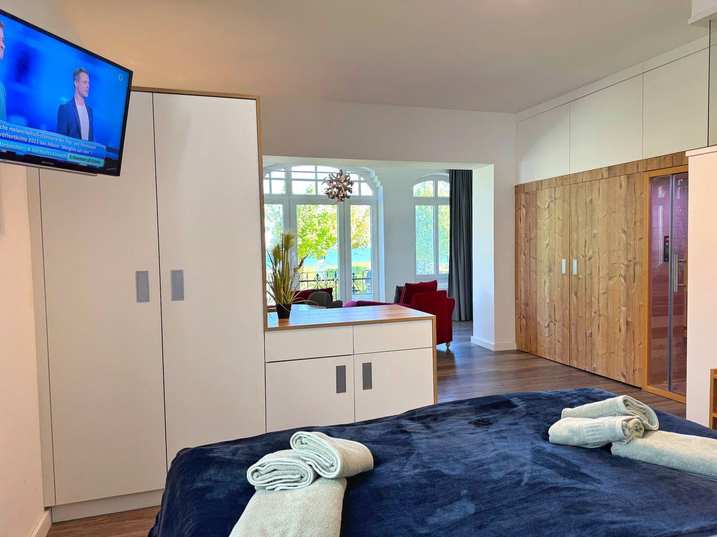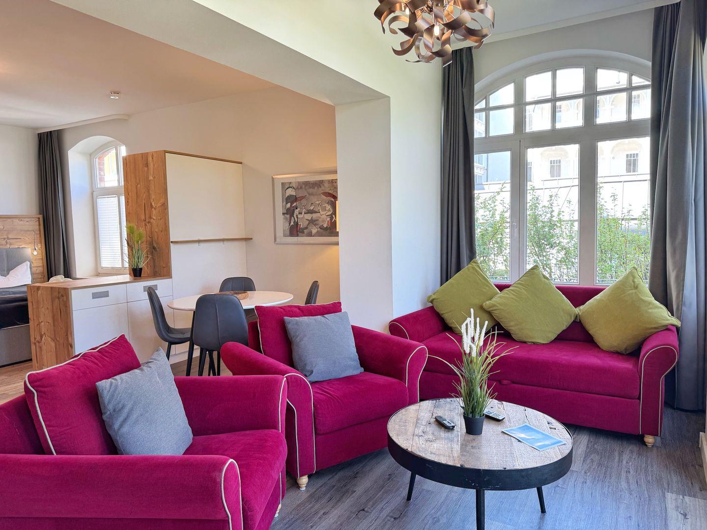 Hochwertiges 1-Raum-Komfort-Appartement in bester Lage des Ostseebades Binz mit unverbautem Meerblick! Direkt an der Strandpromenade mit eigenem Strandzugang und Ostseeblick.