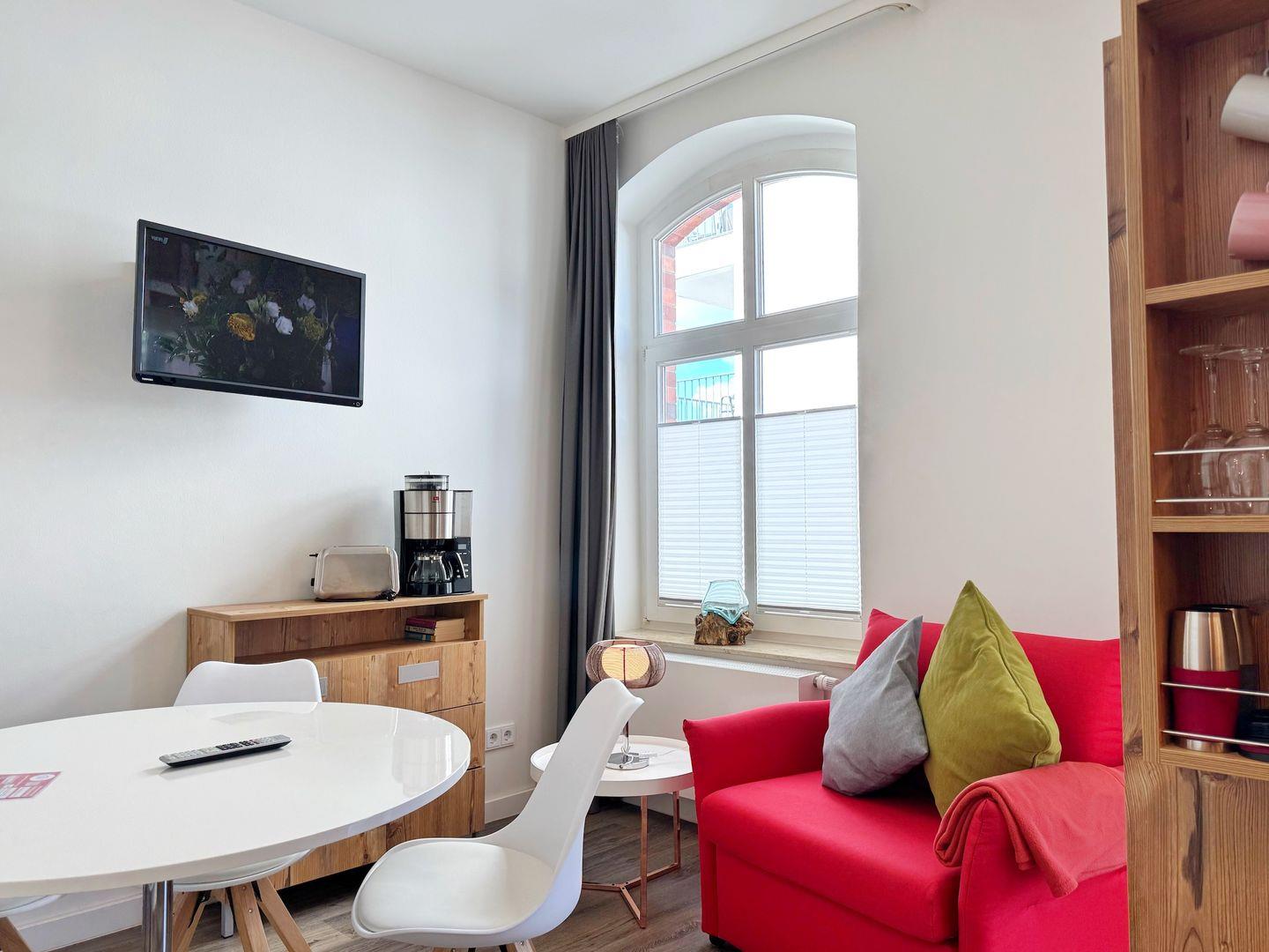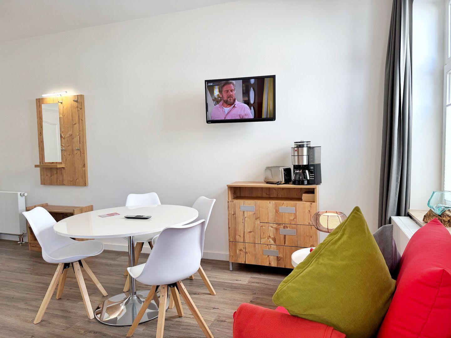 Freuen Sie sich auf ein 2 Raum-Appartement mit seitlichem Balkon zur Meerseite ausgerichtet, Sauna im Haus (kostenpflichtig), Fahrräder, Elektro-Kamin, Parkplatz und WLAN inklusive, abschließbarer Fahrrad-Abstellraum.