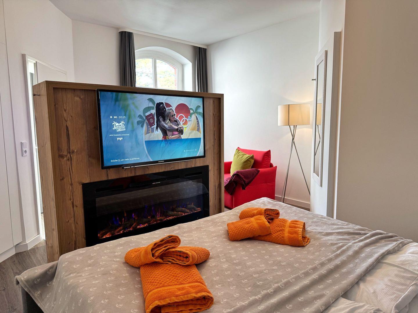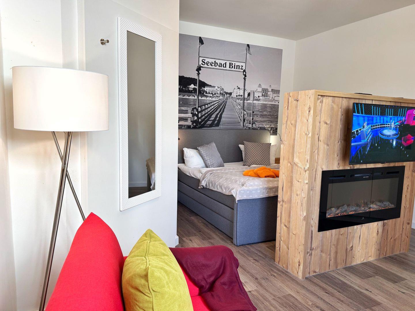 Charmantes Komfort-Appartement Wabi Sabi in Binz mit Meerblick, Kamin, Sauna und direktem Strandzugang.
