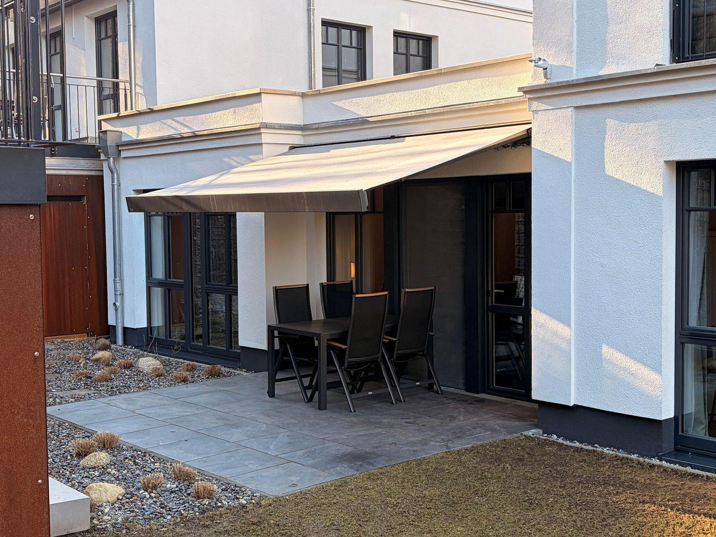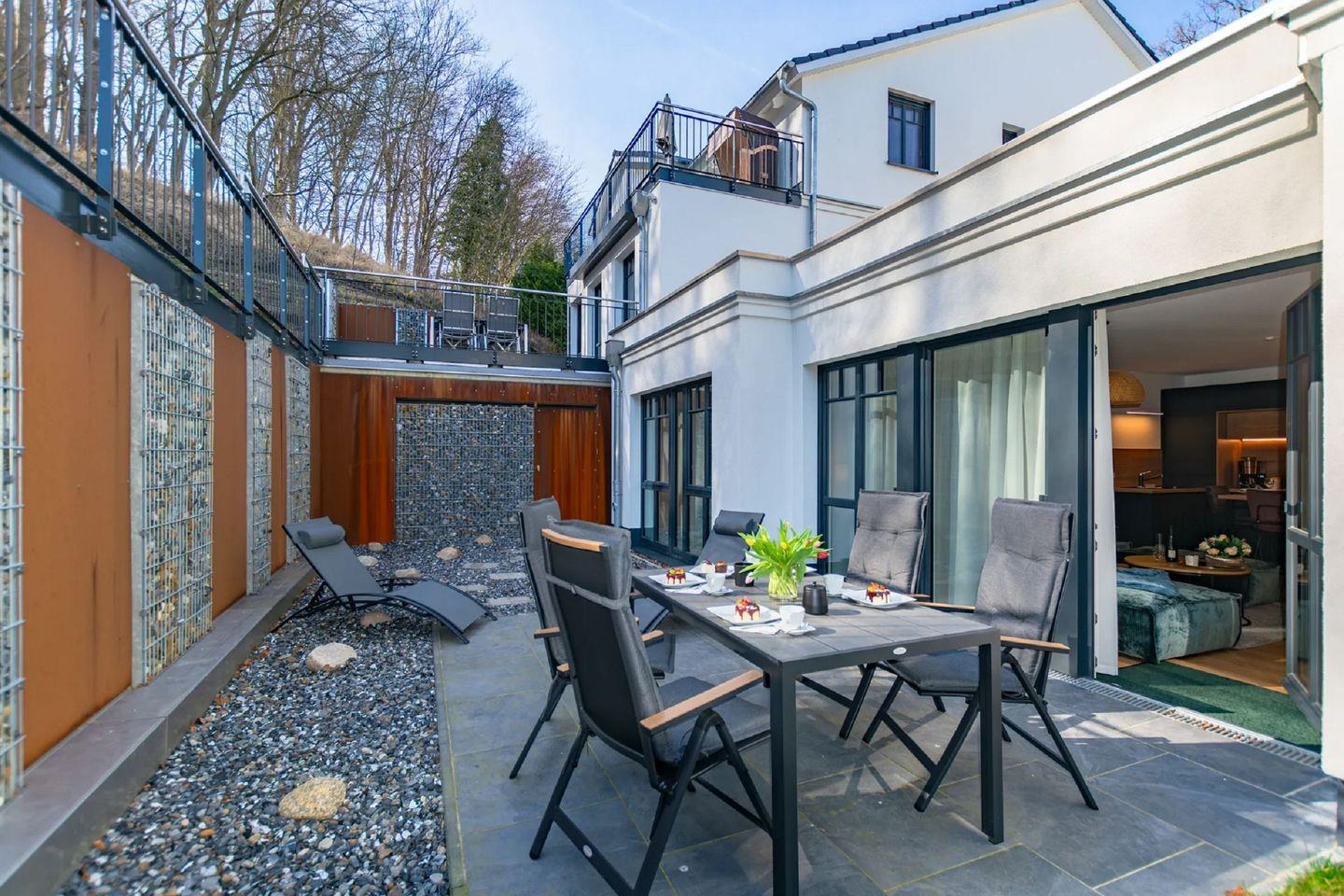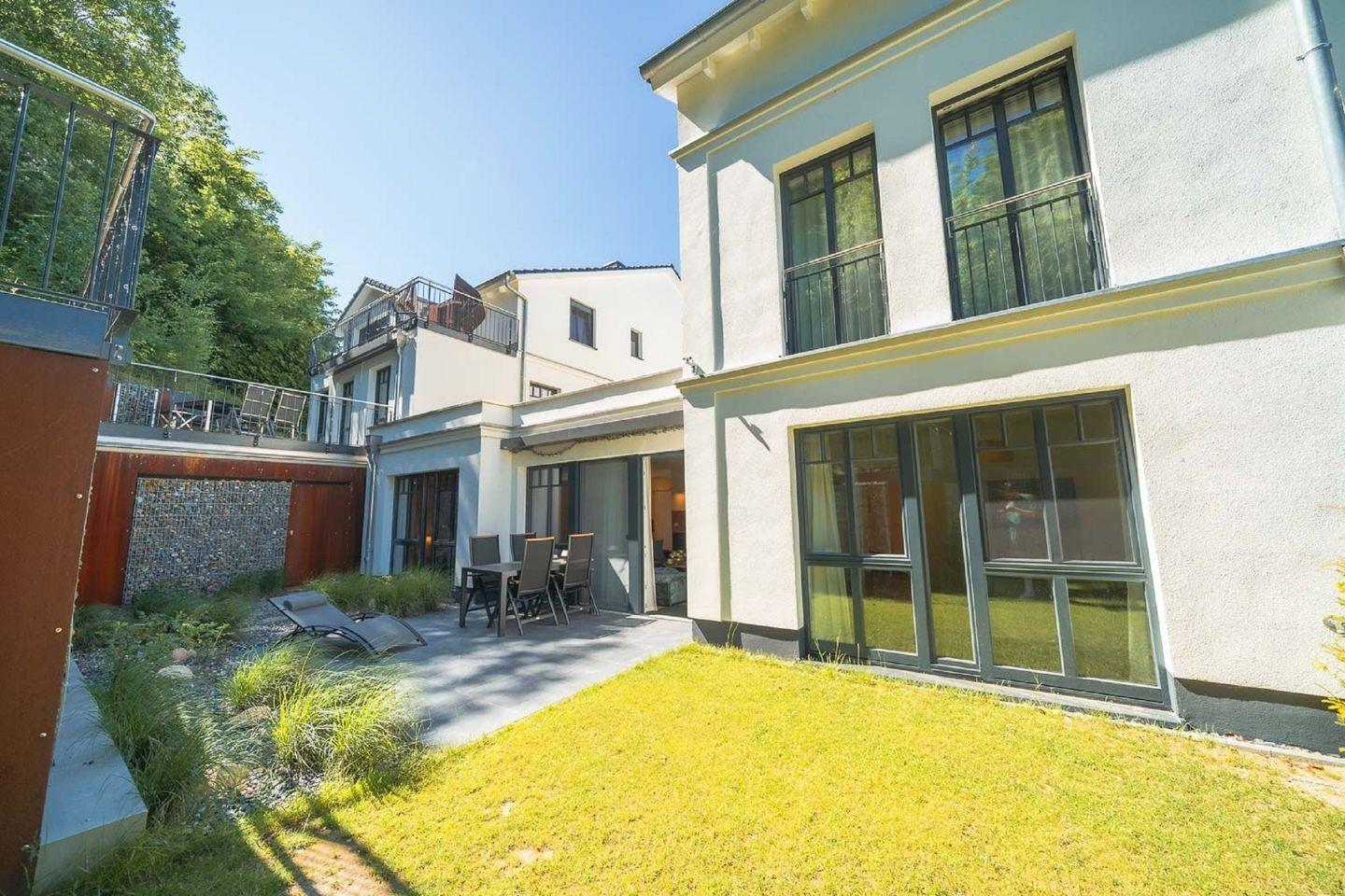 Luxuriöse Ferienwohnung Strandmuschel in Binz, 150m vom Strand, mit Terrasse, Sauna und moderner Ausstattung für erholsame Ostseeferien.