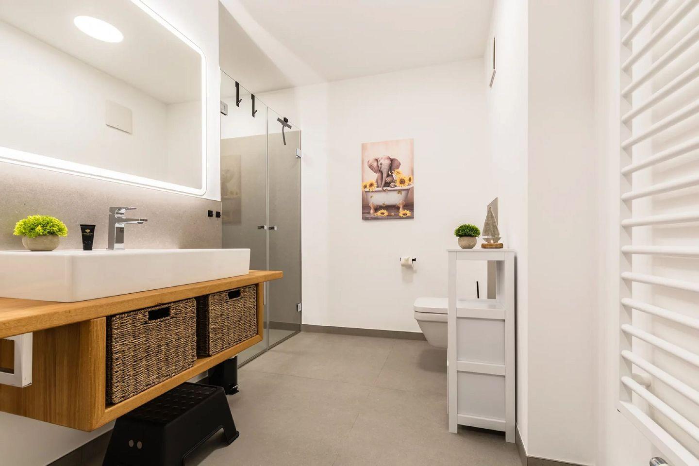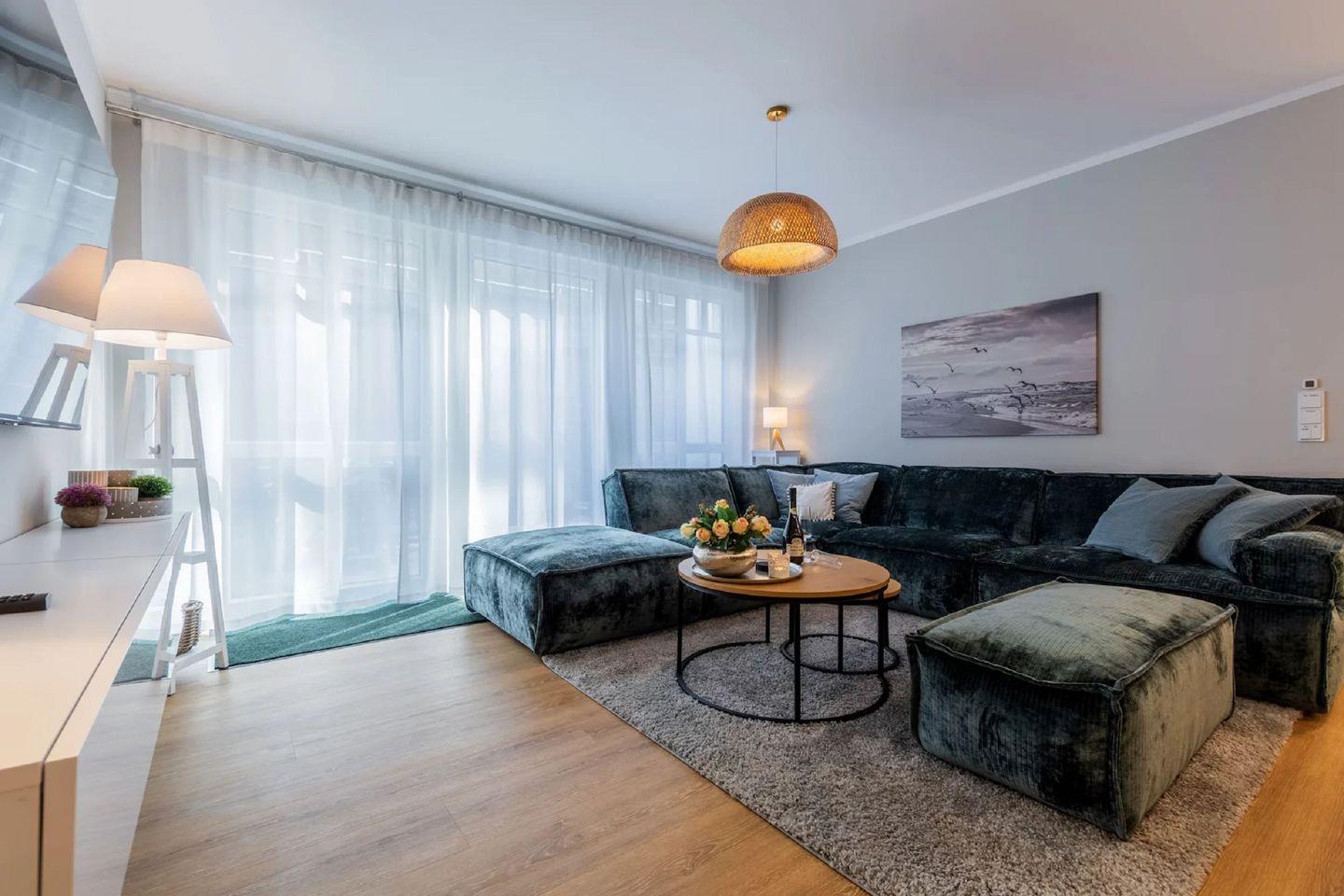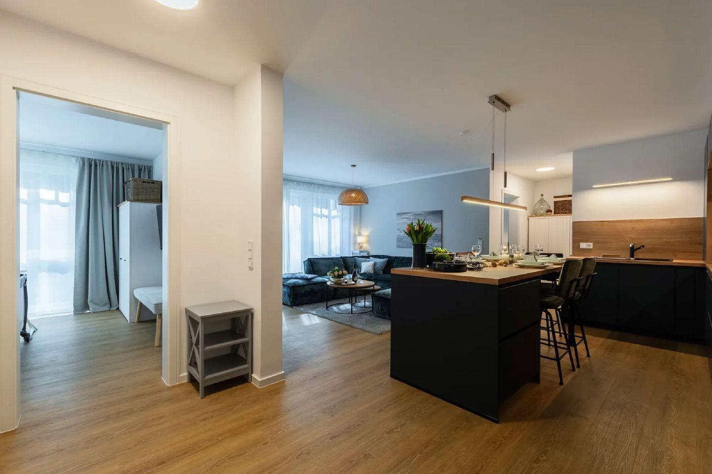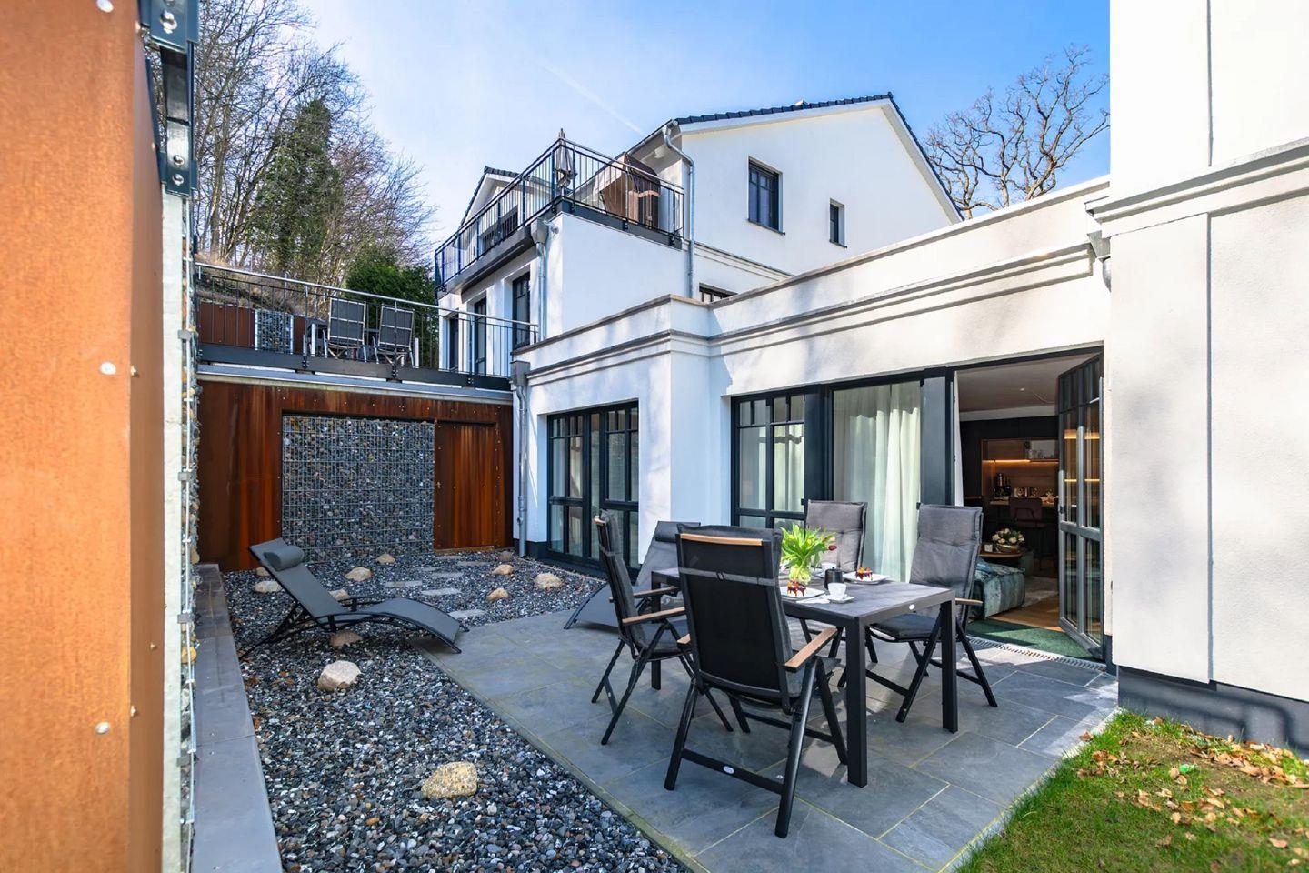 Luxuriöse Ferienwohnung Strandmuschel in Binz, 150m vom Strand, mit Terrasse, Sauna und moderner Ausstattung für erholsame Ostseeferien.