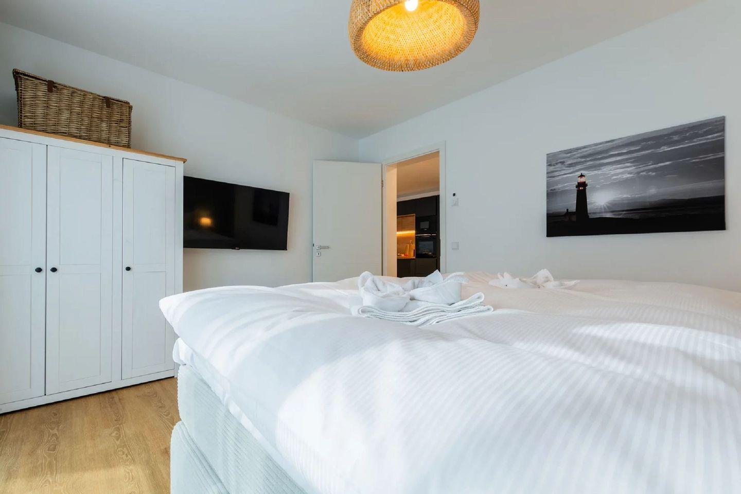 Zwei separate Schlafzimmer mit hochwertigen Boxspringbetten, Kleiderschränken und je einem eigenen Flachbild-TV sorgen für erholsamen Schlaf.