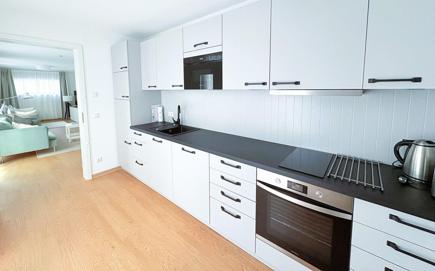 In der gut ausgestatteten Küche finden Sie neben einem Kühlschrank auch eine Mikrowelle und eine Kaffeemaschine, um sich selbst zu versorgen. Sollte Sie mit dem Auto anreisen, profitieren Sie von einem eigenen PKW-Stellplatz direkt vor der Tür.