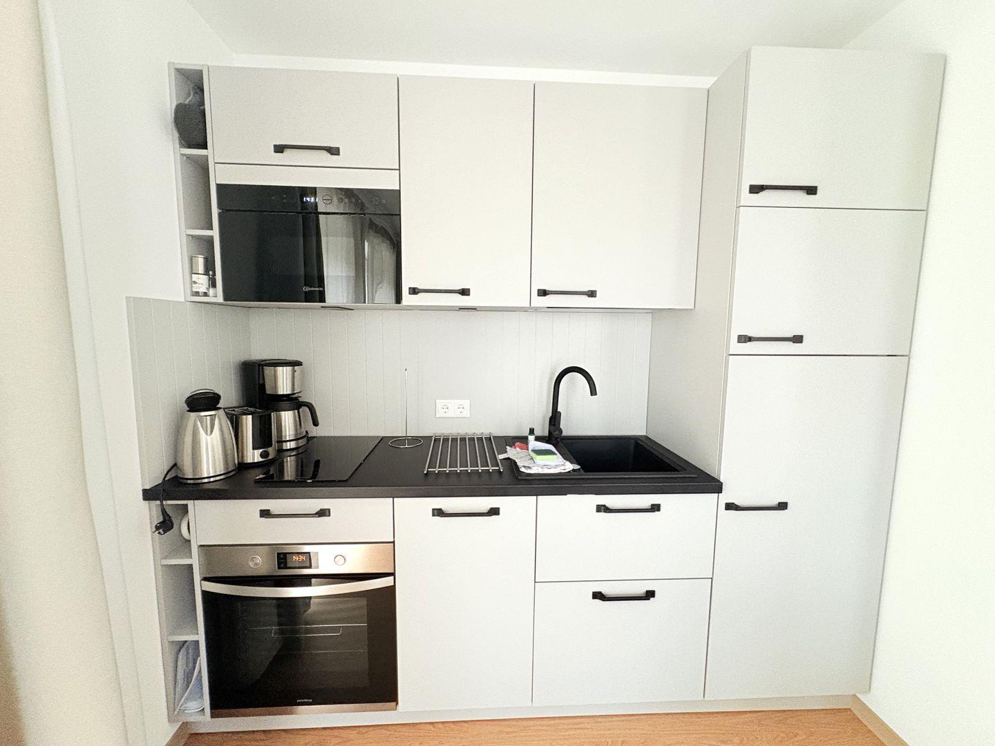 Die Küchenzeile ist mit einem Kühlschrank, einer Mikrowelle und einer Kaffeemaschine ausgestattet – ideal für Ihre Selbstverpflegung.