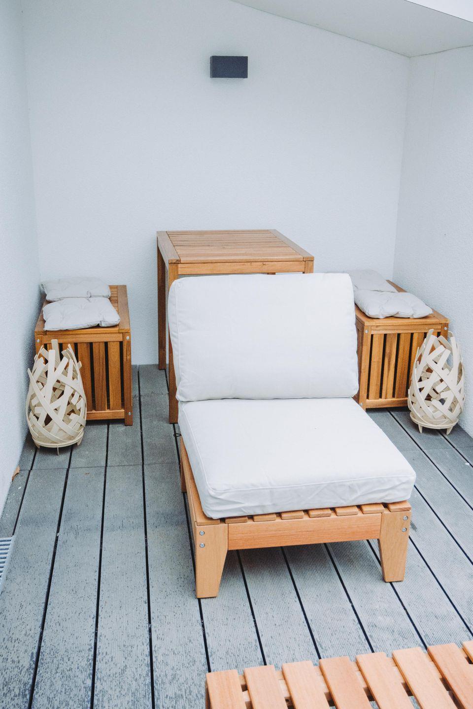 Die gemütliche Dachterrasse lädt zum Entspannen ein – sei es beim Frühstück in der Sonne oder mit einem guten Buch am Nachmittag.