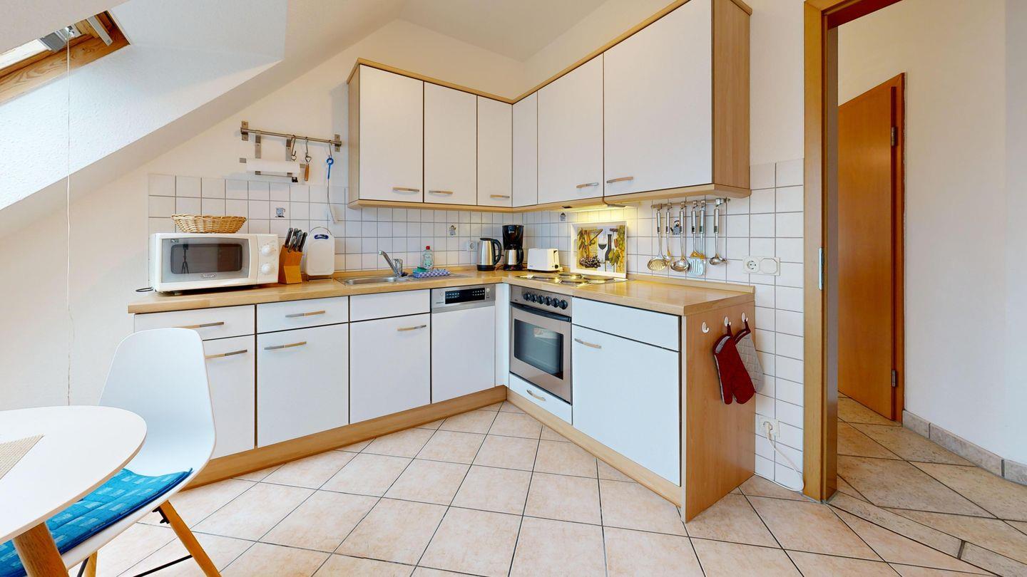 * Küche: Moderne Küchenzeile E-Herd mit Backofen, Spülmaschine, Mikrowelle, Wasserkocher, Kaffeemaschine, Toaster