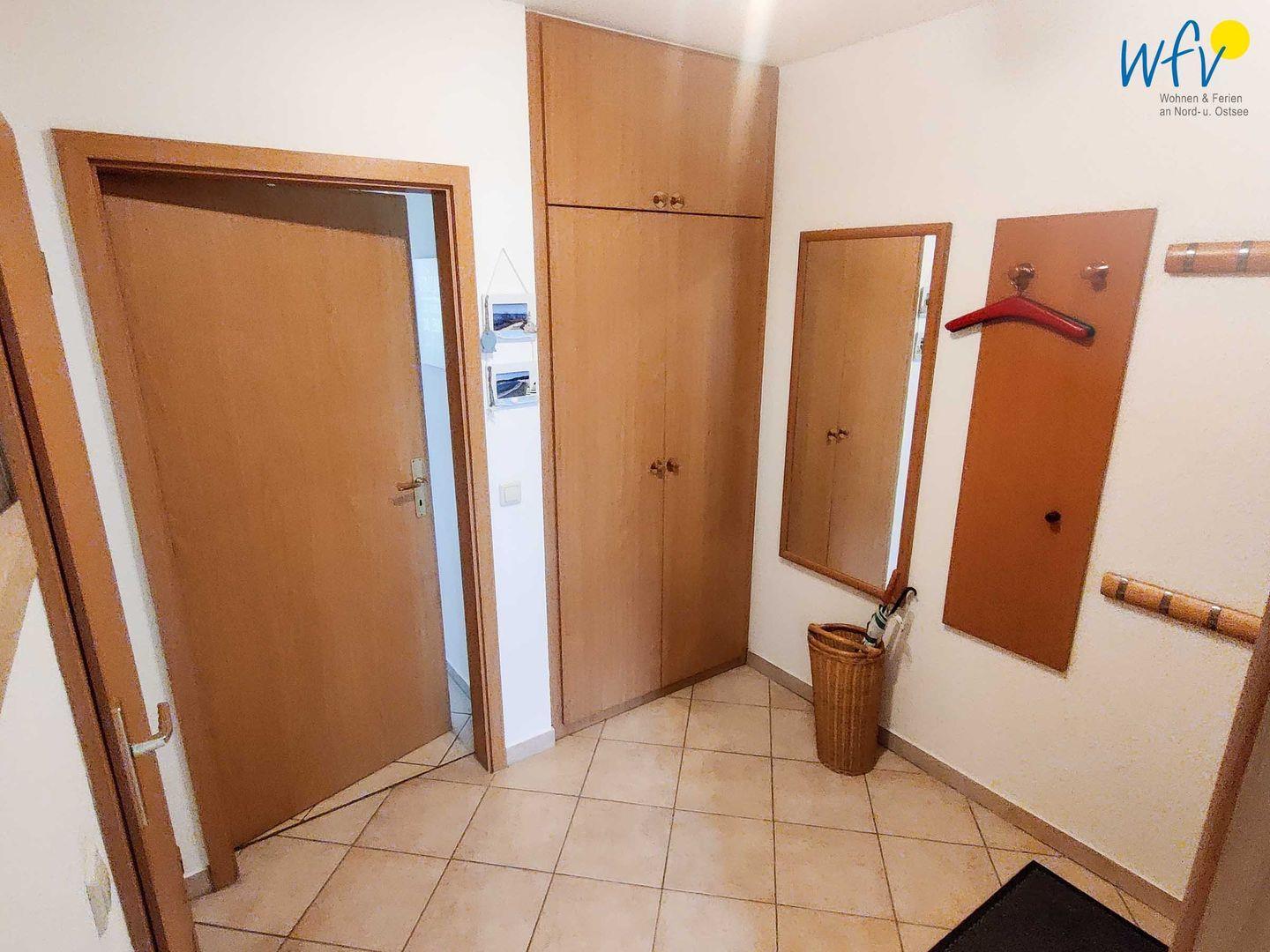 Die Ferienwohnung besitzt eine gute Raumaufteilung - alle Räume gehen zentral vom Flur ab, sodass es kein Durchgangszimmer gibt. Die Böden sind mit pflegeleichten Fliesen verlegt.