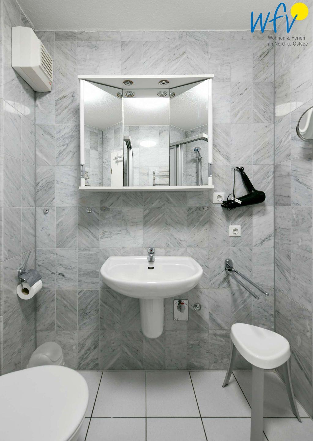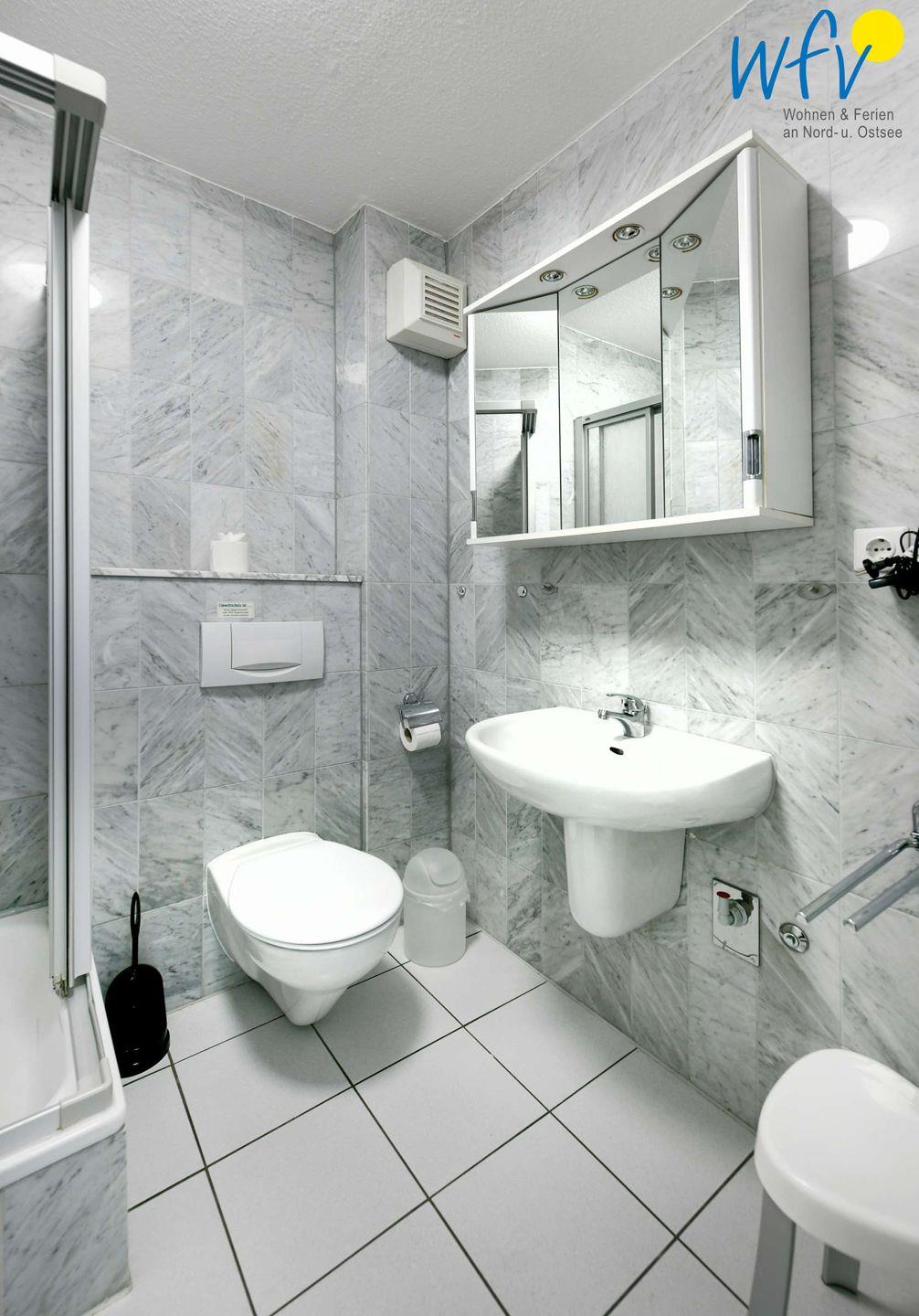 Weiteren Wohnkomfort bietet Ihnen das mit Marmor geflieste Badezimmer.