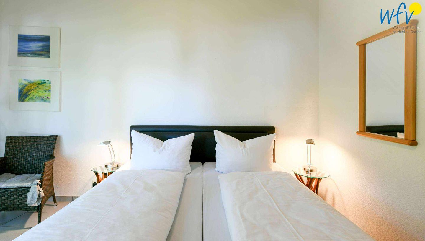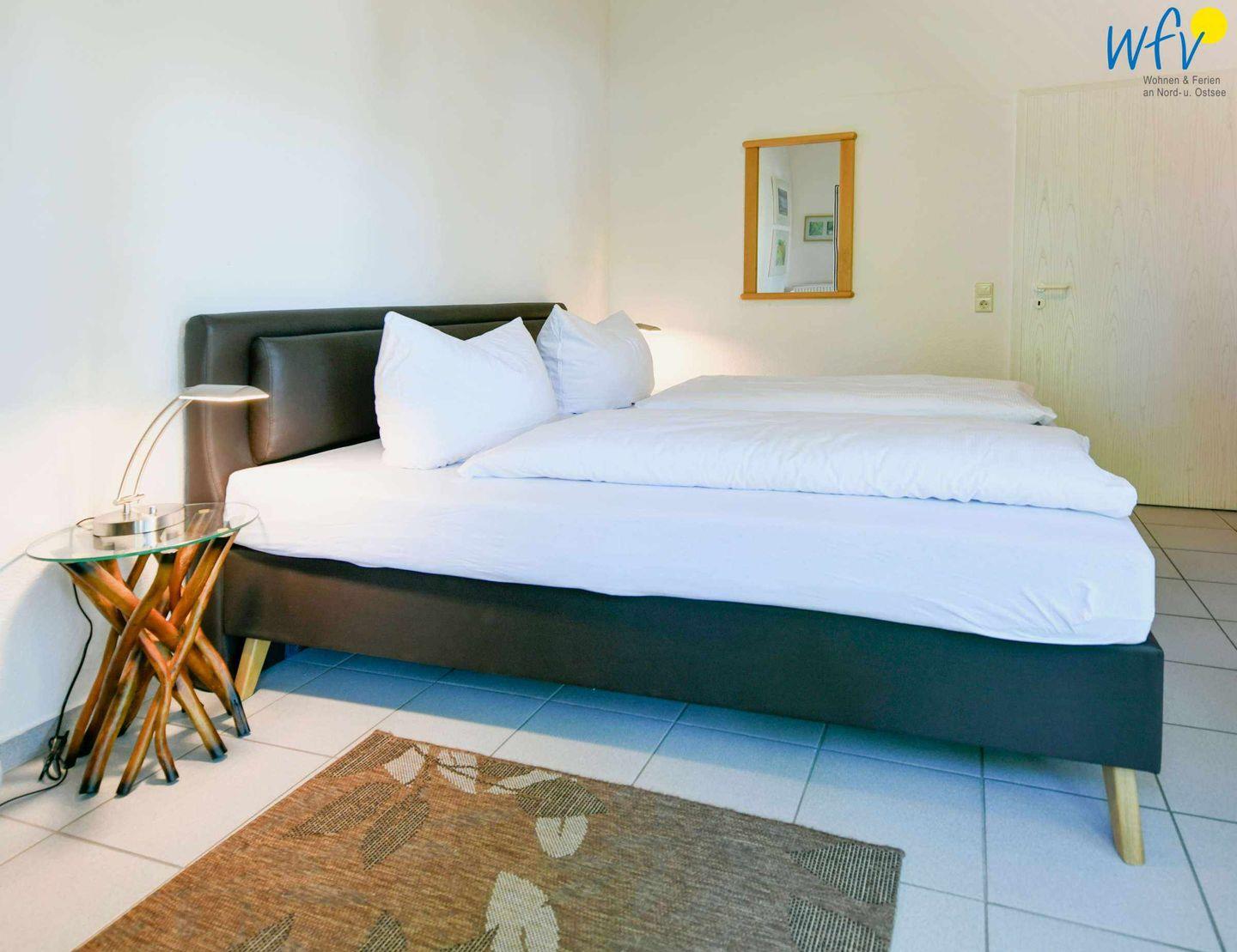 Das separate Schlafzimmer ist mit einem bequemen Doppelbett ausgestattet (1,80 m x 2 m). Zwei weitere Personen können auf der Schlafcouch im Wohnzimmer übernachten (1,40 m breite Liegefläche).
