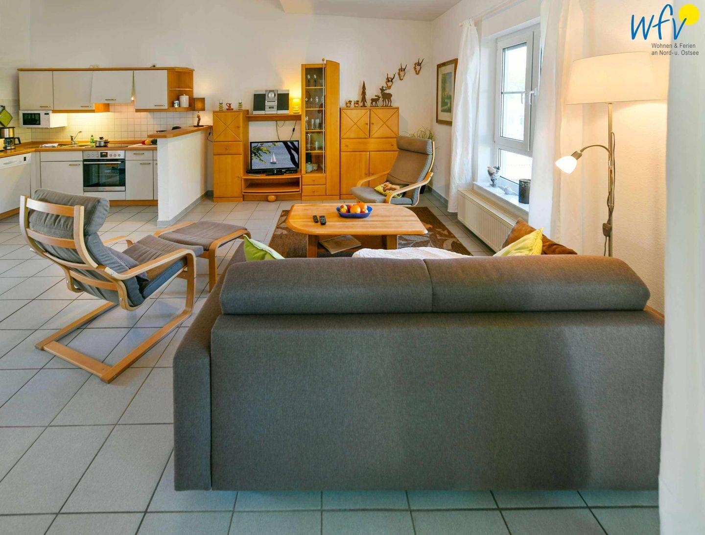 Freuen Sie sich auf herrlich entspannte Stunden in Ihrem Urlaub auf Rügen! Im Wohnraum mit Couchecke, TV (Kabelfernsehen), DVD-(Blu-ray)-Player, Stereoanlage und kostenlosem Internet lässt es sich wunderbar relaxen!