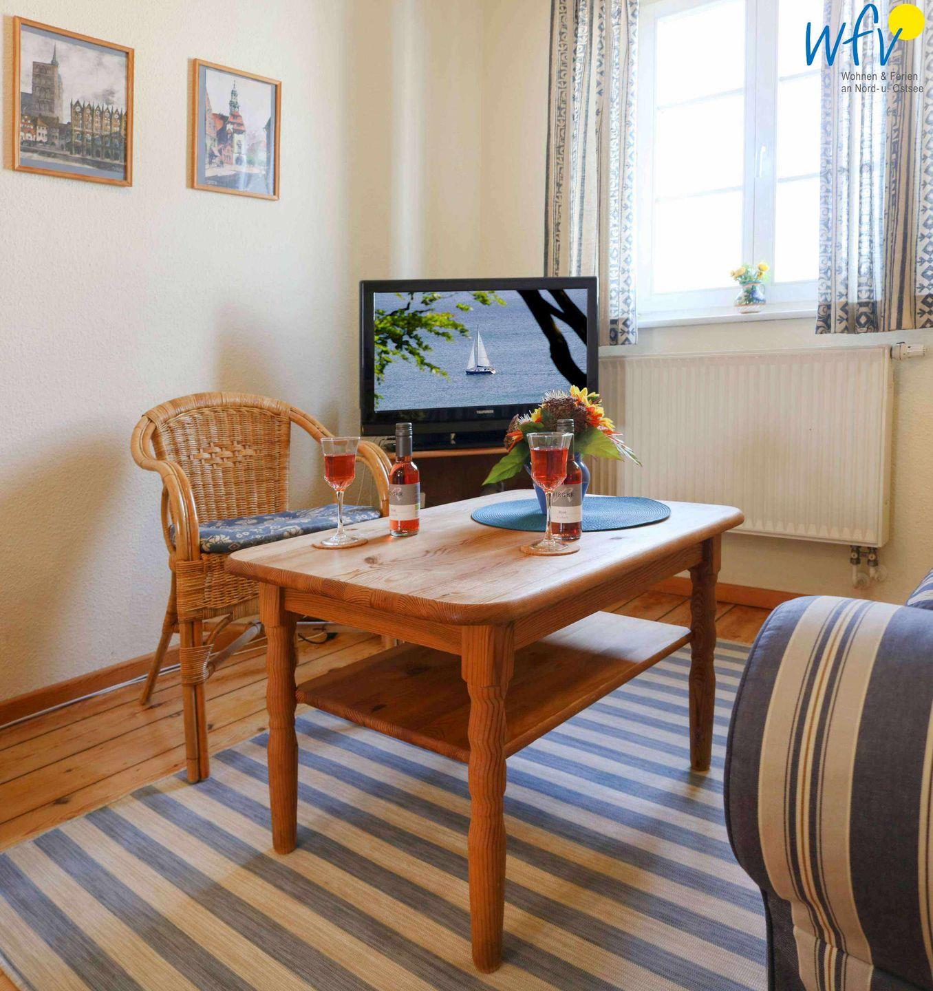 Der helle Wohnraum mit bequemer Couchecke, TV und Radio lädt zum Filme schauen, Musik hören und gemütlichem Beisammensein ein. Zum Surfen vom Smartphone aus empfangen Sie kostenlos freies WLAN.