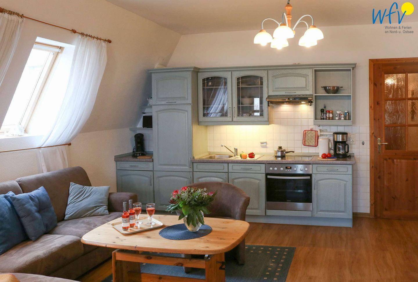 Für gemeinsame Abende mit der gesamten Familie besitzt die Ferienwohnung "Wellenreiter" einen geräumigen Wohnraum mit gemütlicher Sitzecke, TV und kostenlosem WLAN. In der daran angrenzenden sonnigen Loggia können Sie wunderbar zusammen frühstücken und Ihren Ferientag auf Rügen planen oder abends zusammensitzen - essen, spielen und die freie Zeit genießen!
