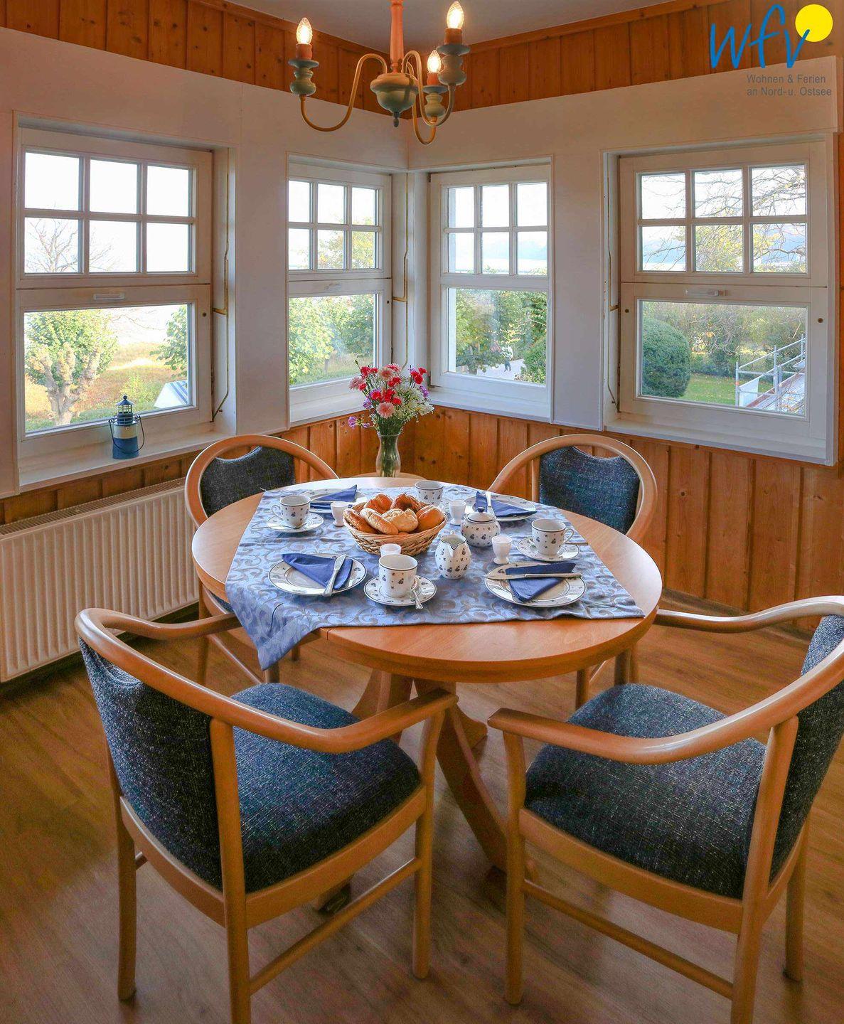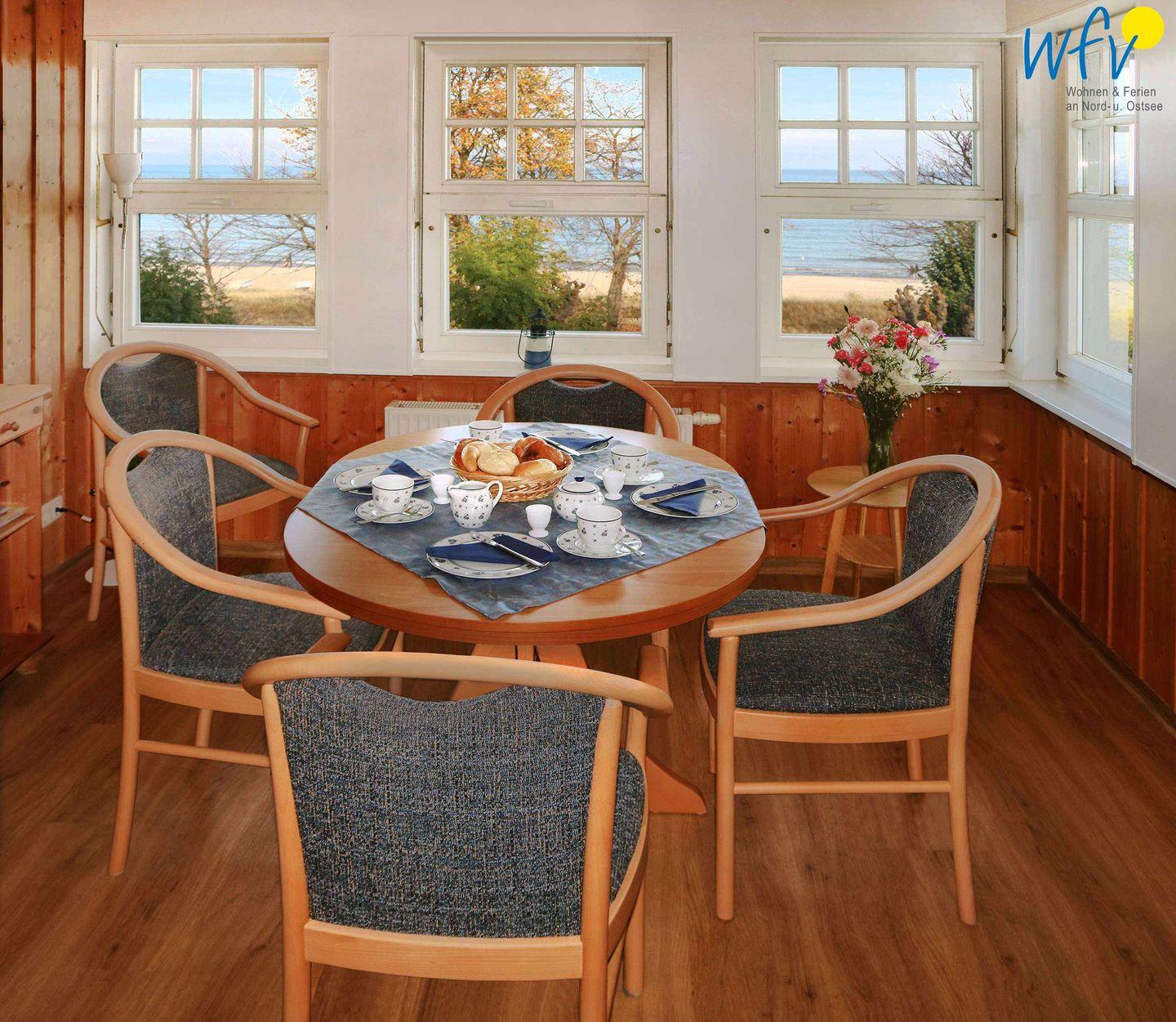 Für Stunden an der wohltuenden Ostseeluft befindet sich im Garten ein Tisch mit Stühlen zur gemeinschaftlichen Nutzung.